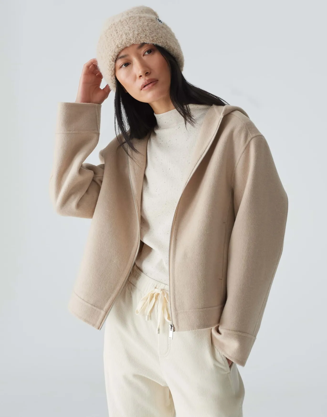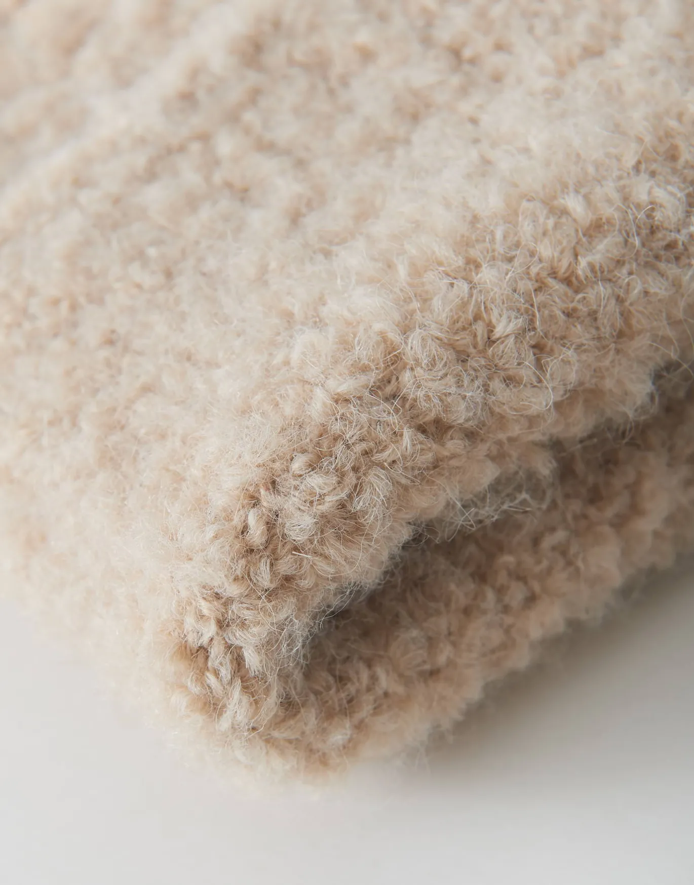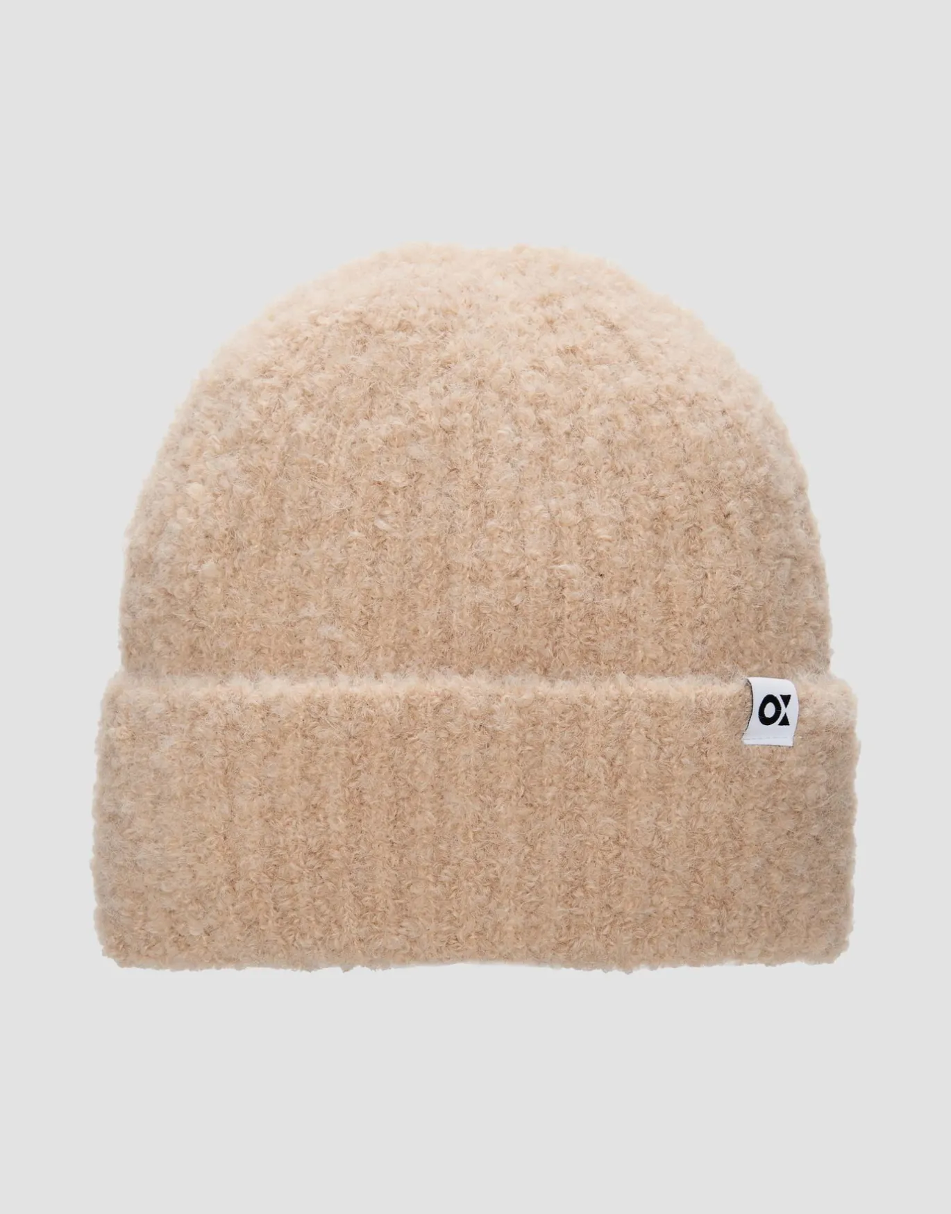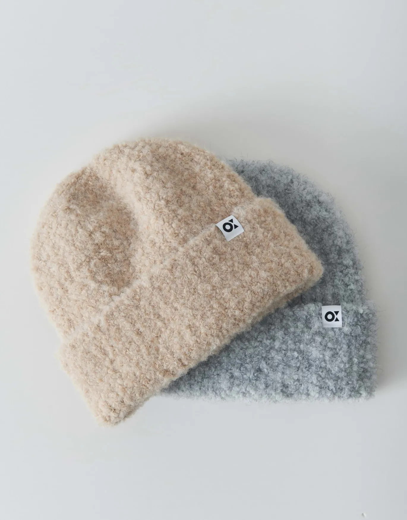 Die Strickmütze aus Bouclé-Strick ist durch die flauschige und voluminöse Haptik besonders wärmend und komfortabel zu tragen.