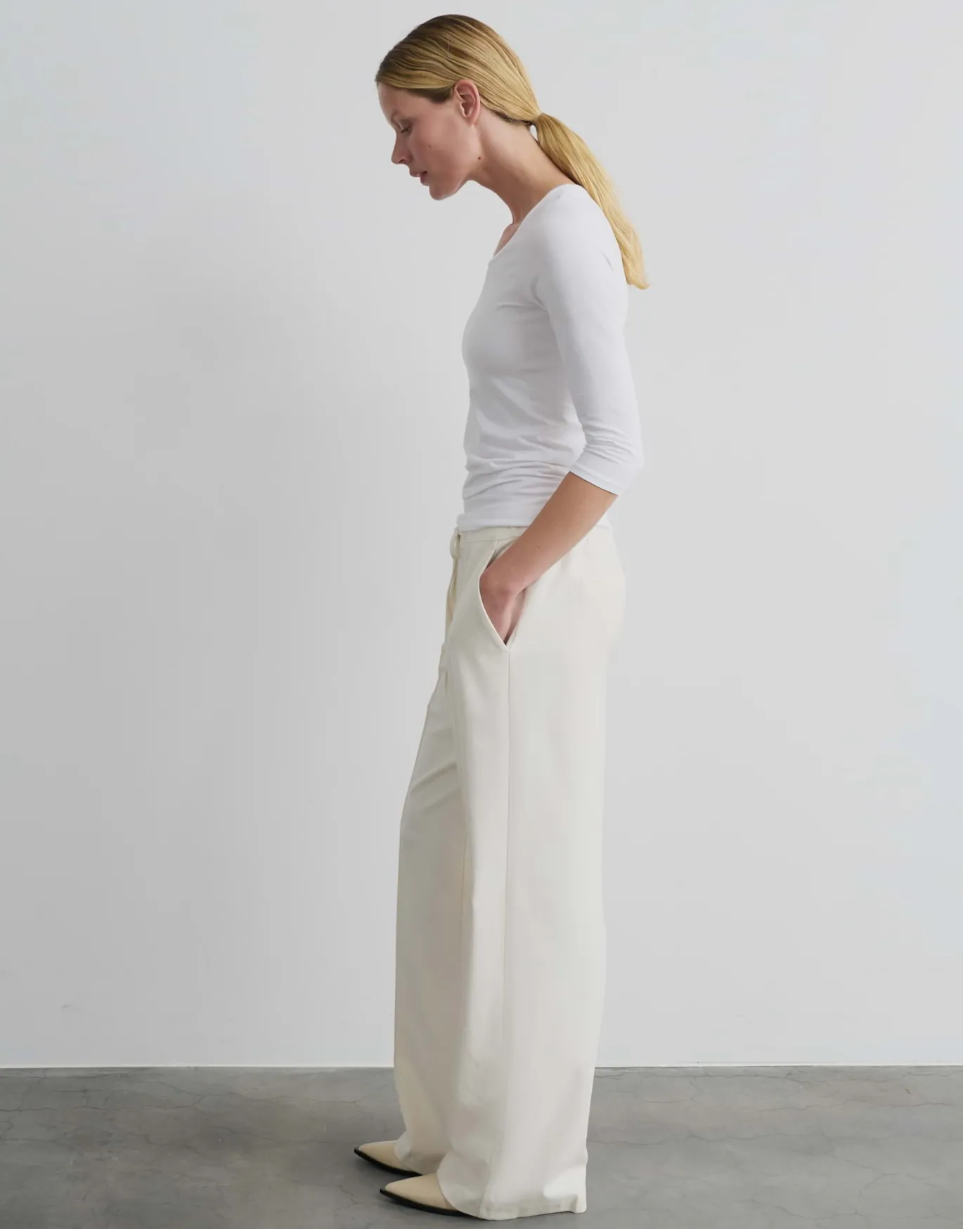 Ein vielfältiges Muss: das schlichte T-Shirt dient als praktische Grundlage für einen modischen und entspannten Look.
