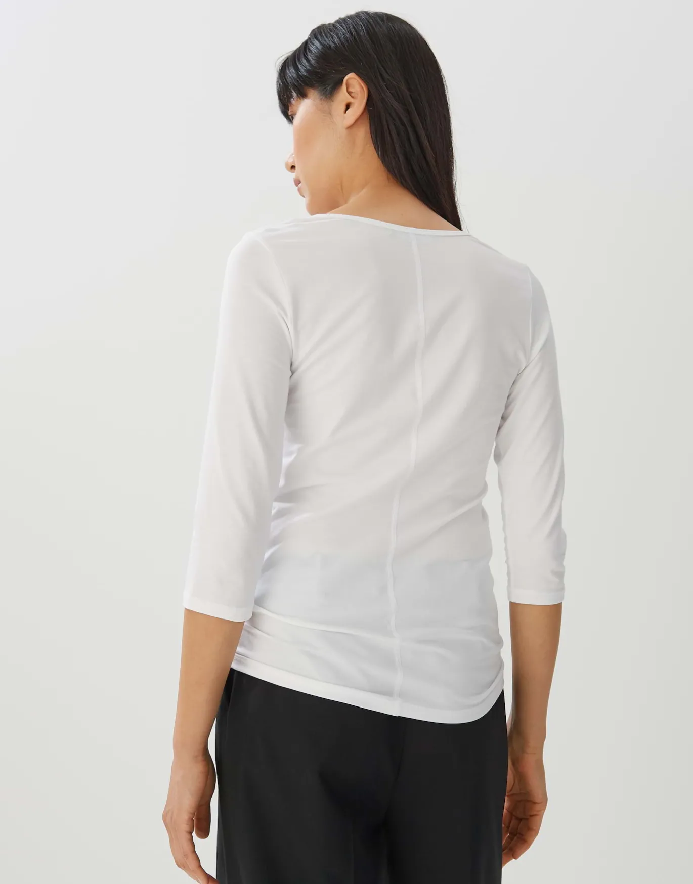 Ein vielfältiges Muss: das schlichte T-Shirt dient als praktische Grundlage für einen modischen und entspannten Look.