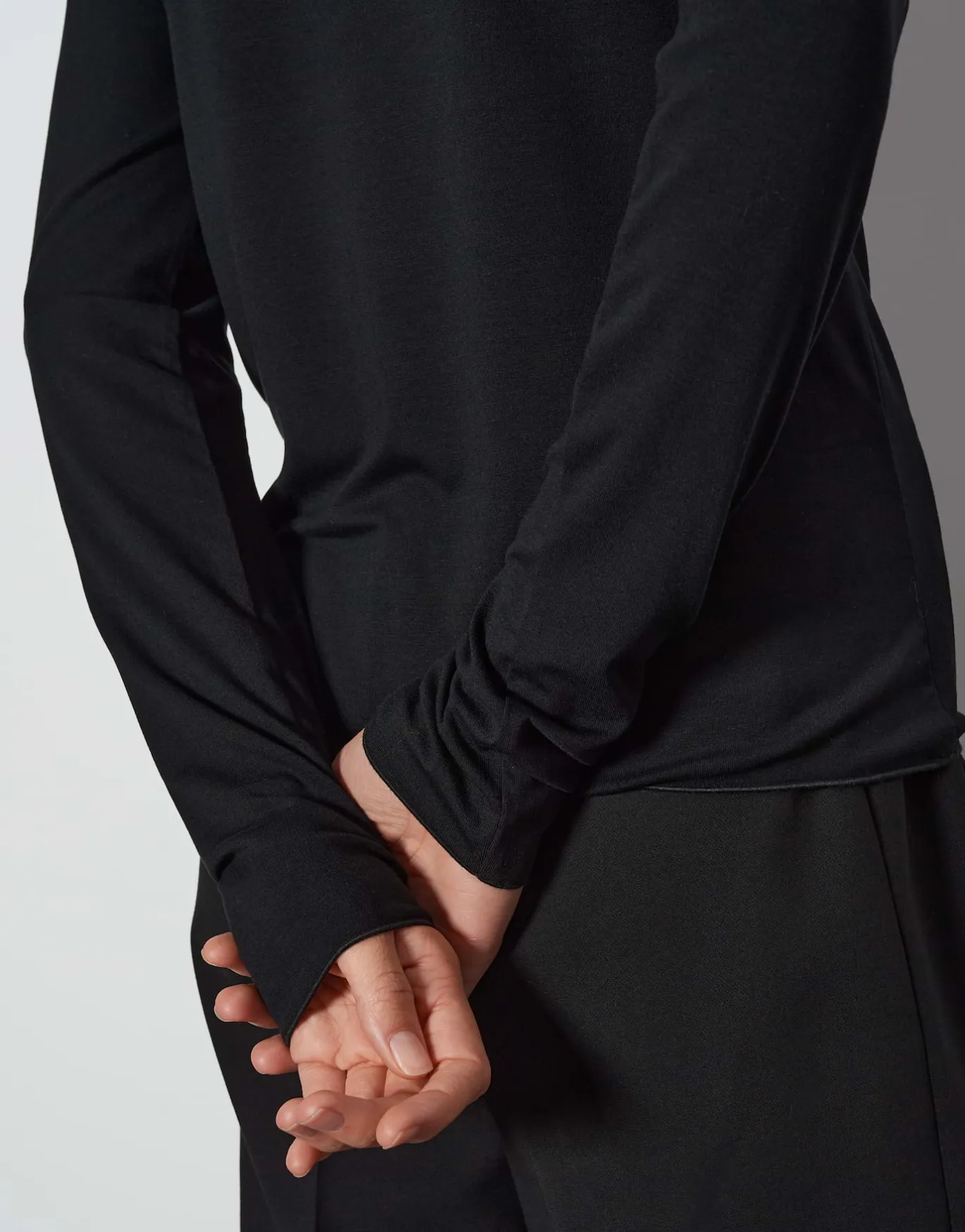 Das Jerseyshirt ist mit der schmalen Passform und dem eleganten Stehkragen der perfekte Unterzieher auch über die festliche Saison hinweg.