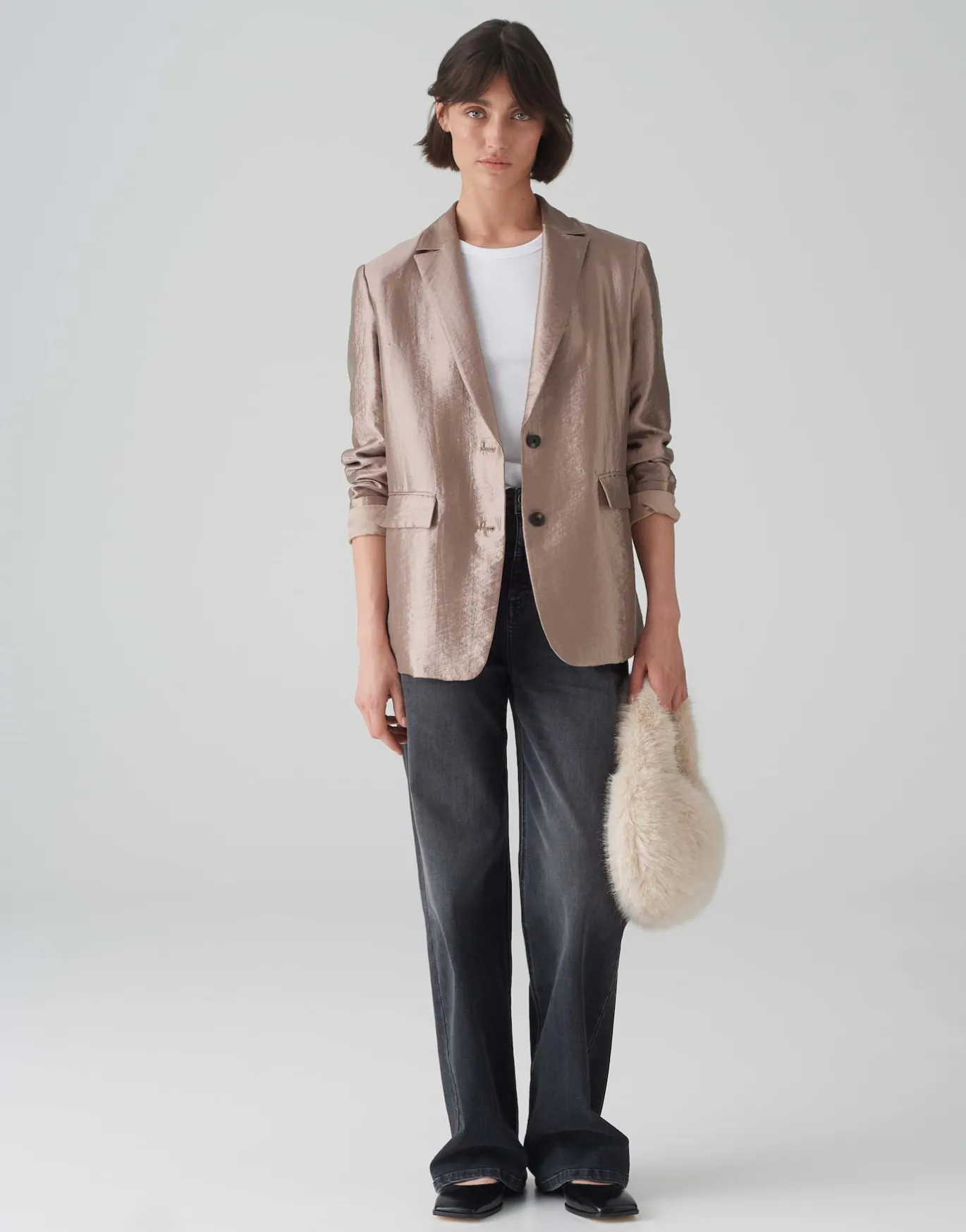 Der elegante Blazer im Metallic Look ist der perfekte Begleiter für die Weihnachtszeit und kreiert mit der passenden Hose einen besonders festlichen Allover Look.
