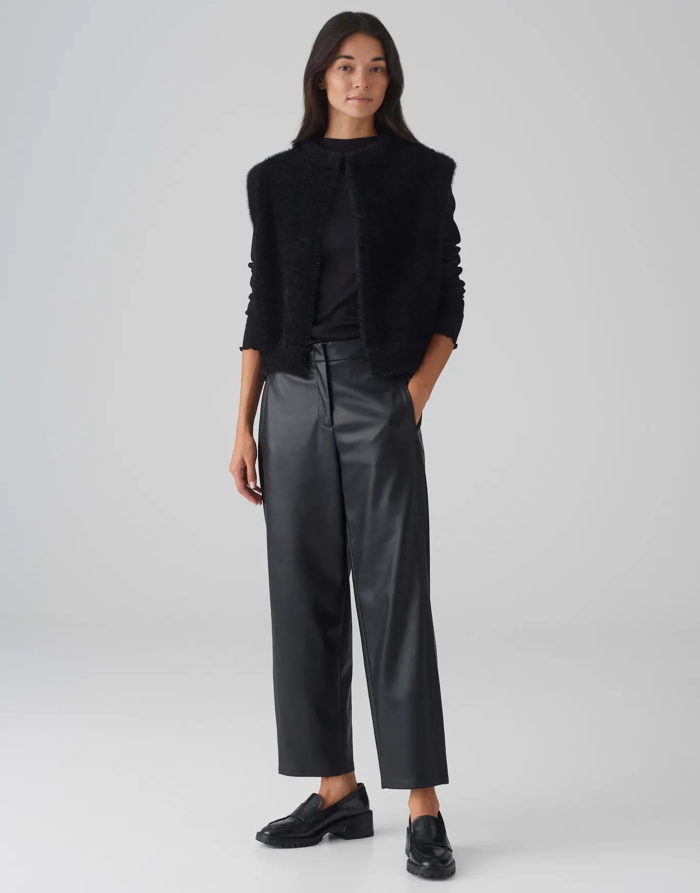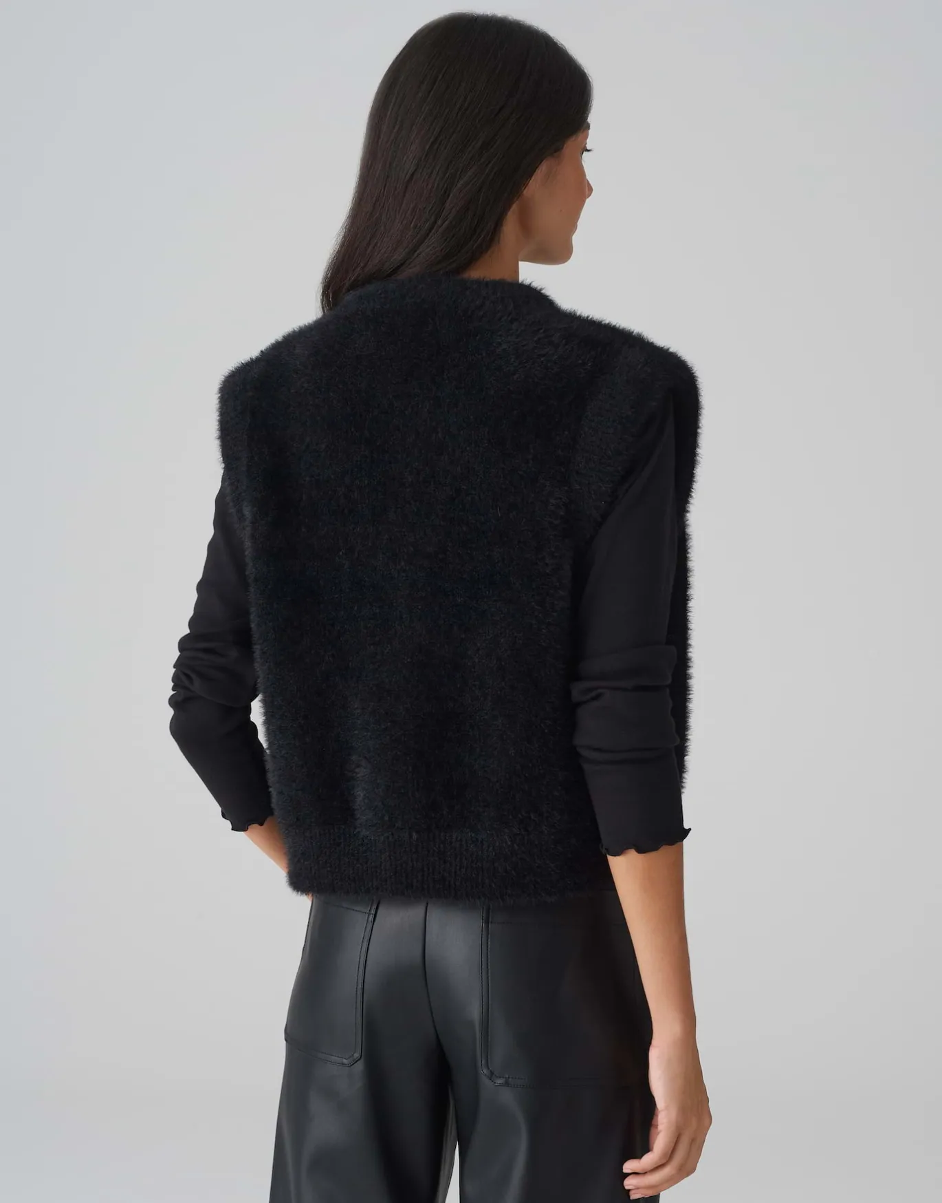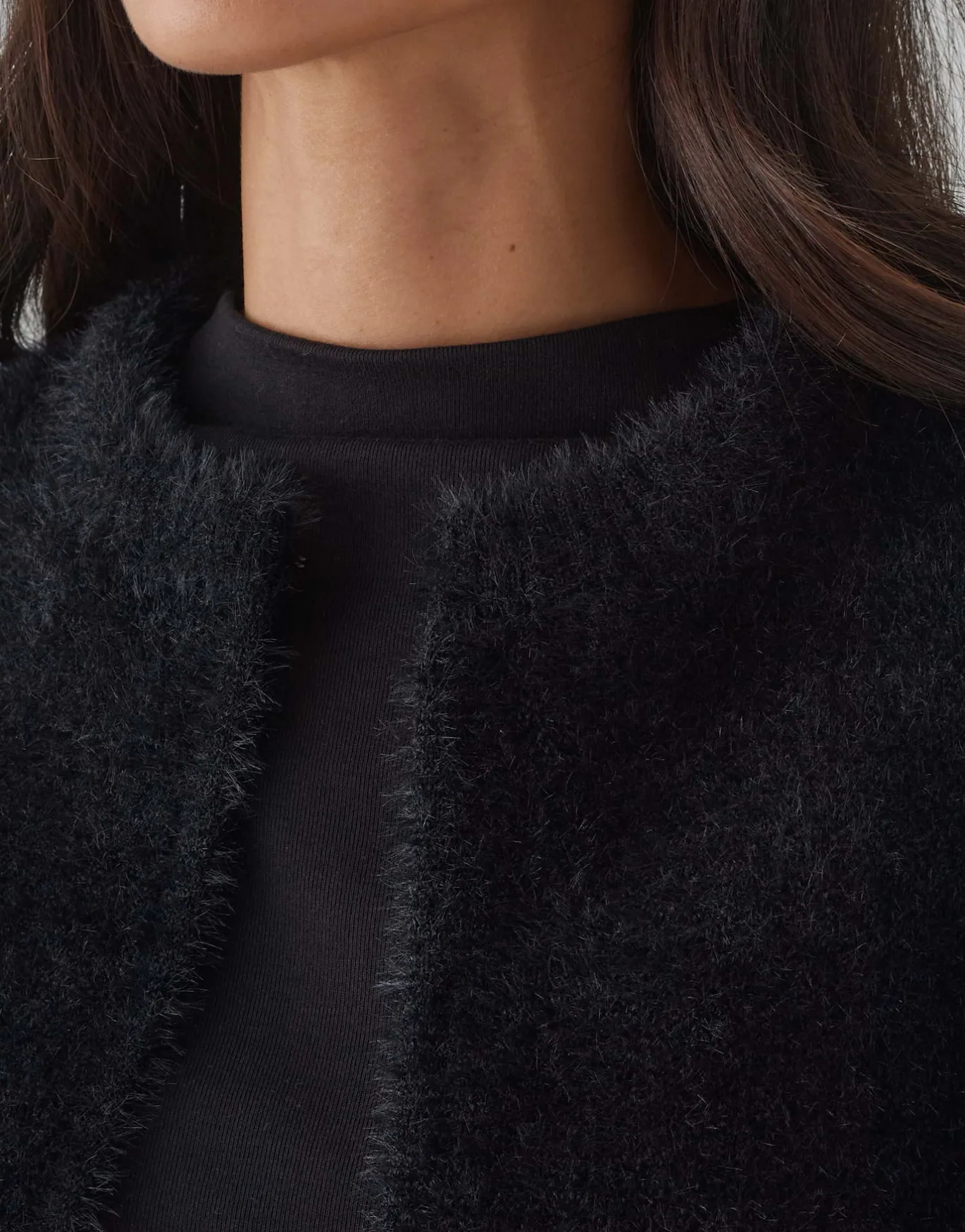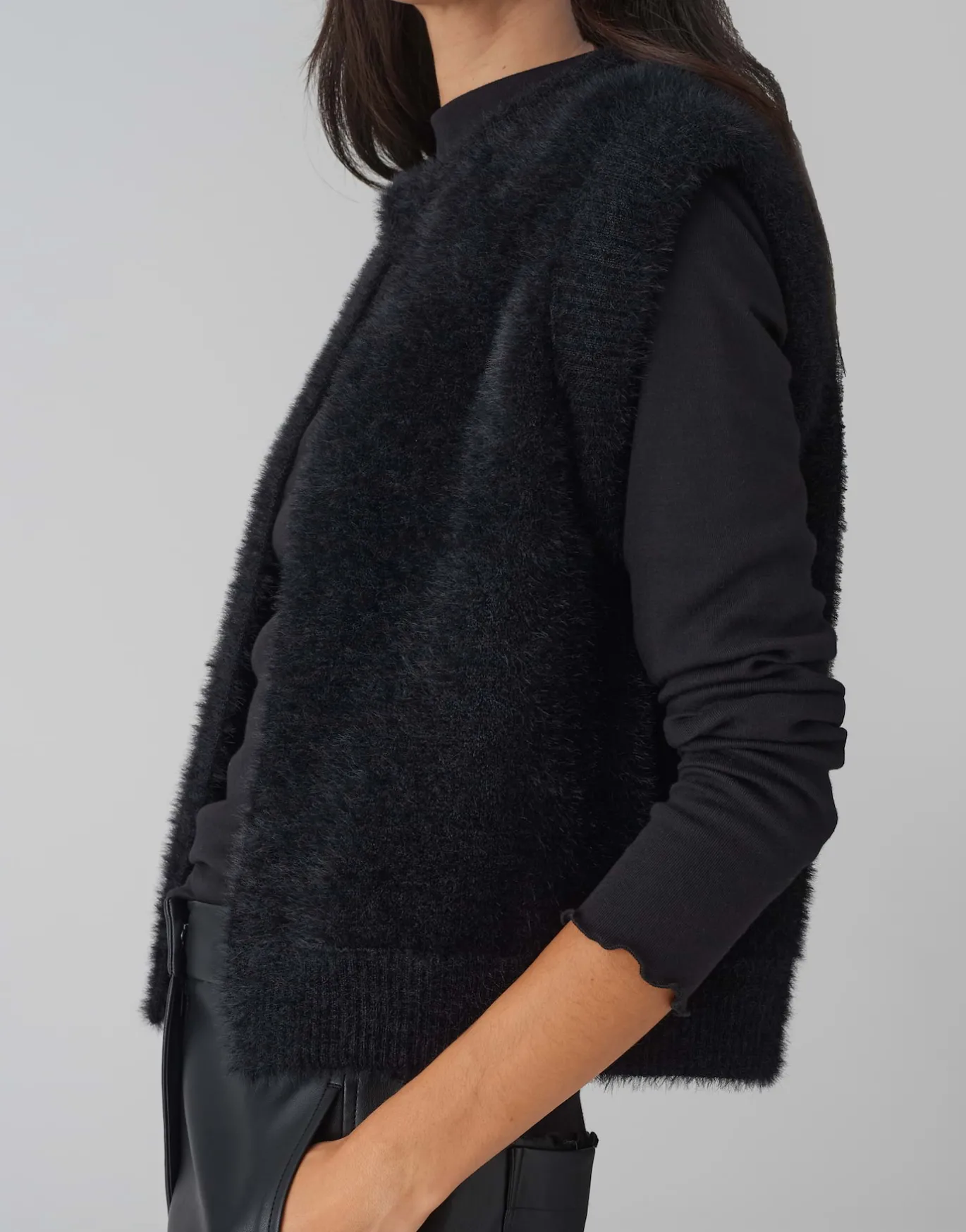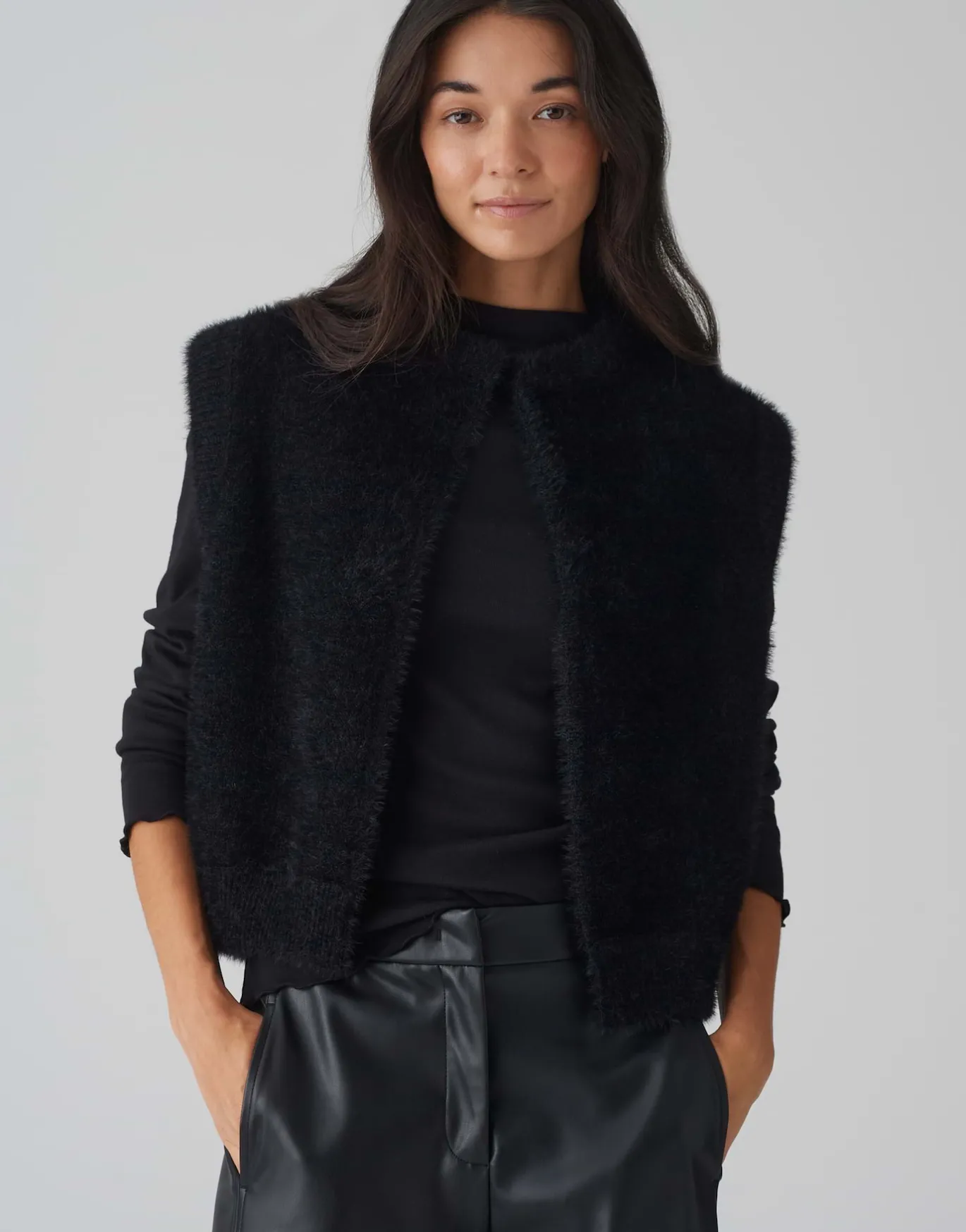 Die Weste ist durch die flauschige Oberfläche ein modisches Layering Piece für die kommende Saison und setzt aufregende Akzente in jedem Look.