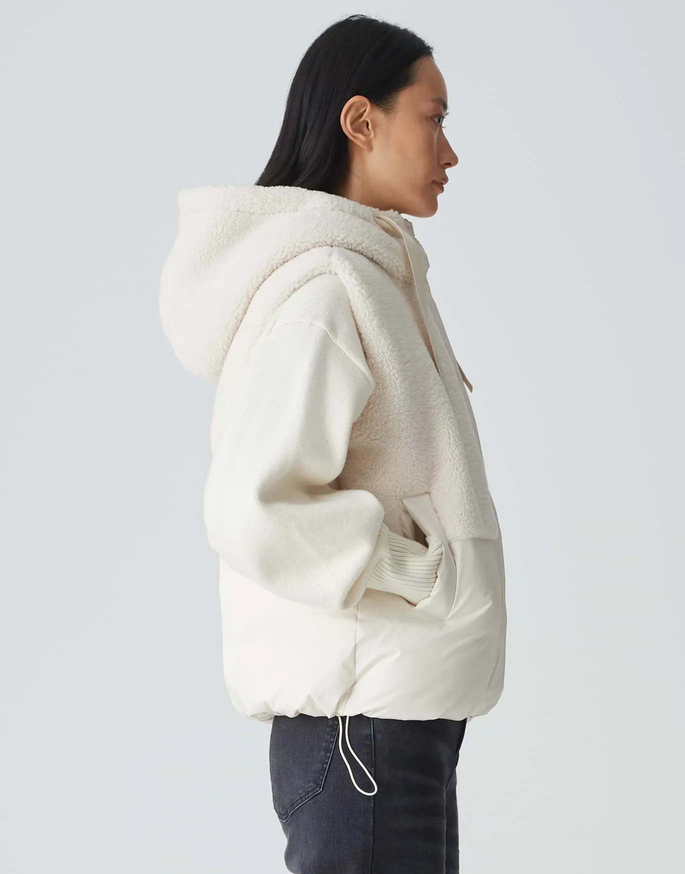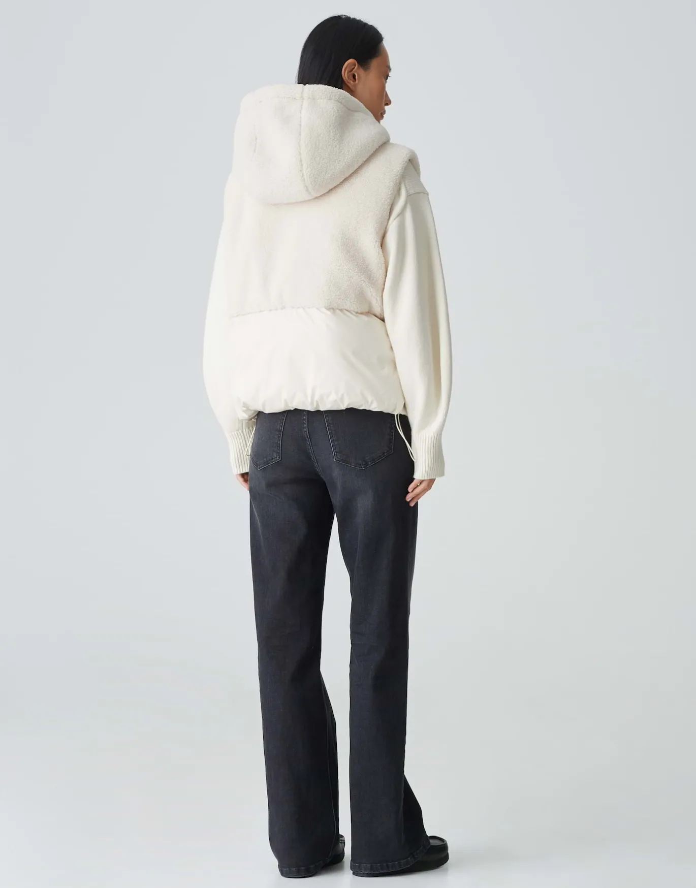 Die Weste begeistert mit einem harmonischen Material Mix und kann durch die Oversize Passform perfekt im Lagenlook getragen werden.