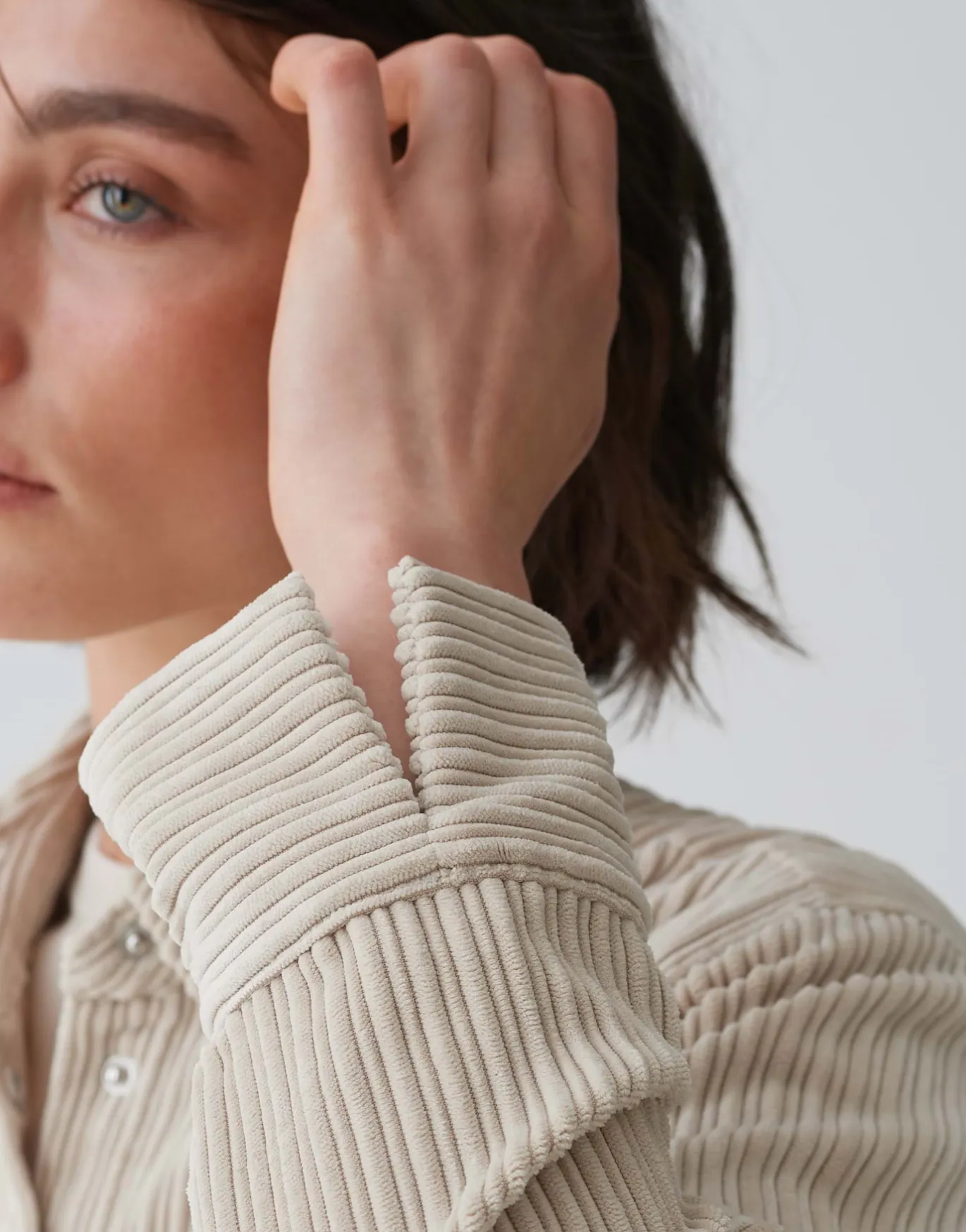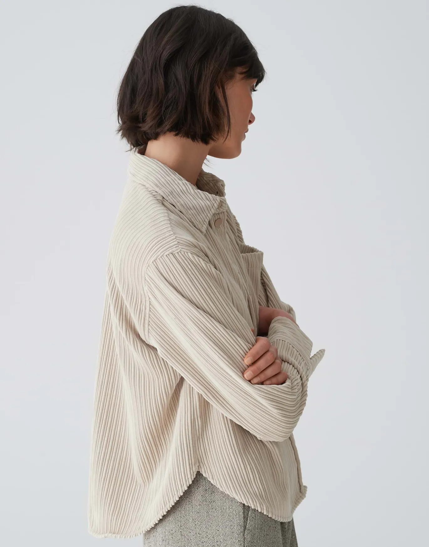 Das moderne Overshirt aus super softem Cord mit einem wohligen Griff spielt eine unregelmäßig breite Rippstruktur in der Oberfläche und bringt Spannung in die Looks.