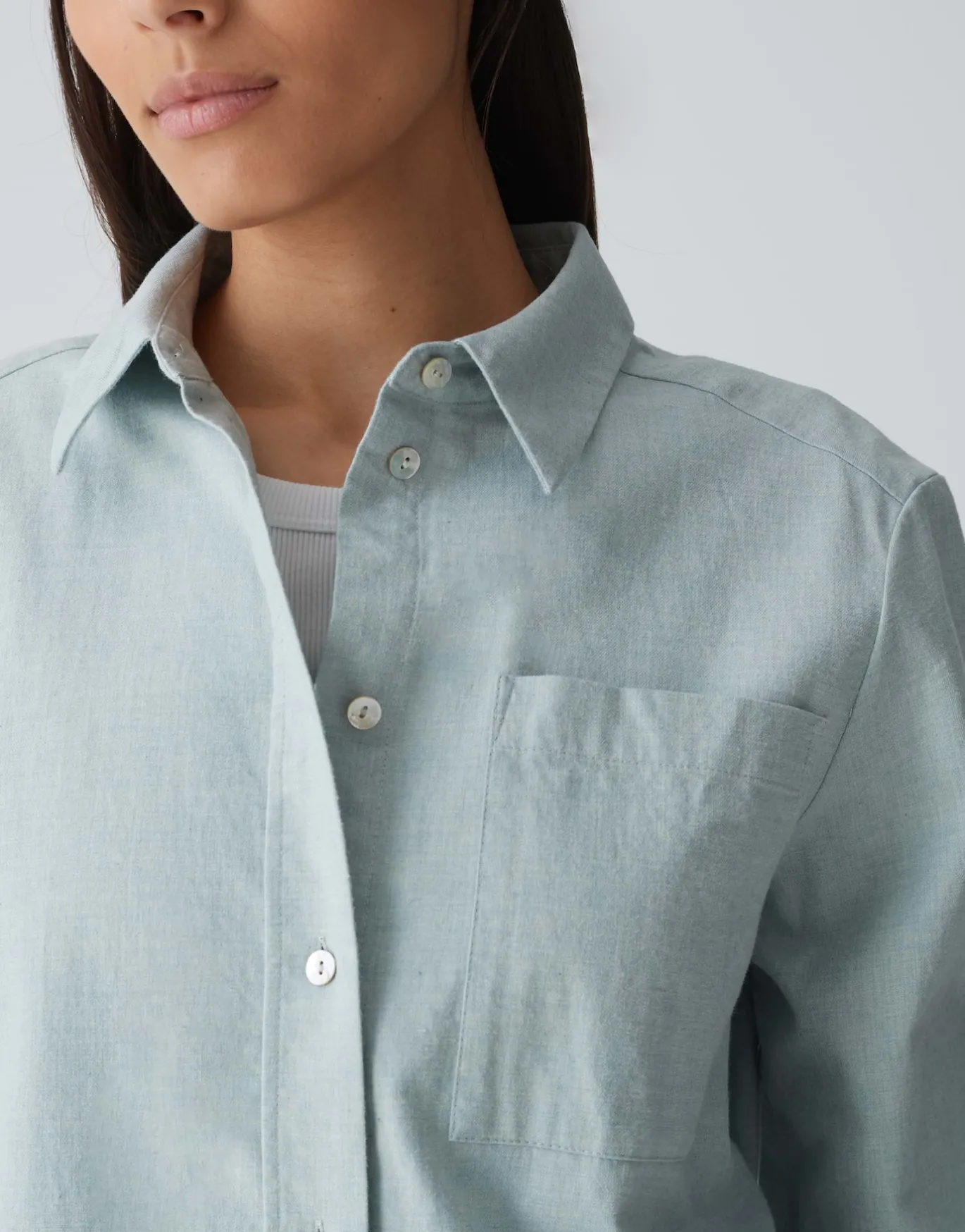 Die Flanellbluse begleitet uns auch in dieser Saison und zeichnet sich durch das weiche Hand-Feel und dem rusikalen Charakter aus – für einen coolen Casual Look.