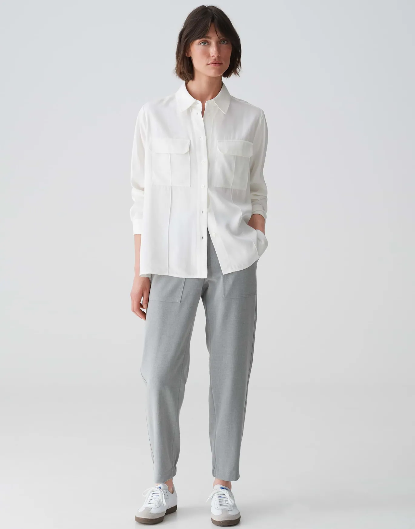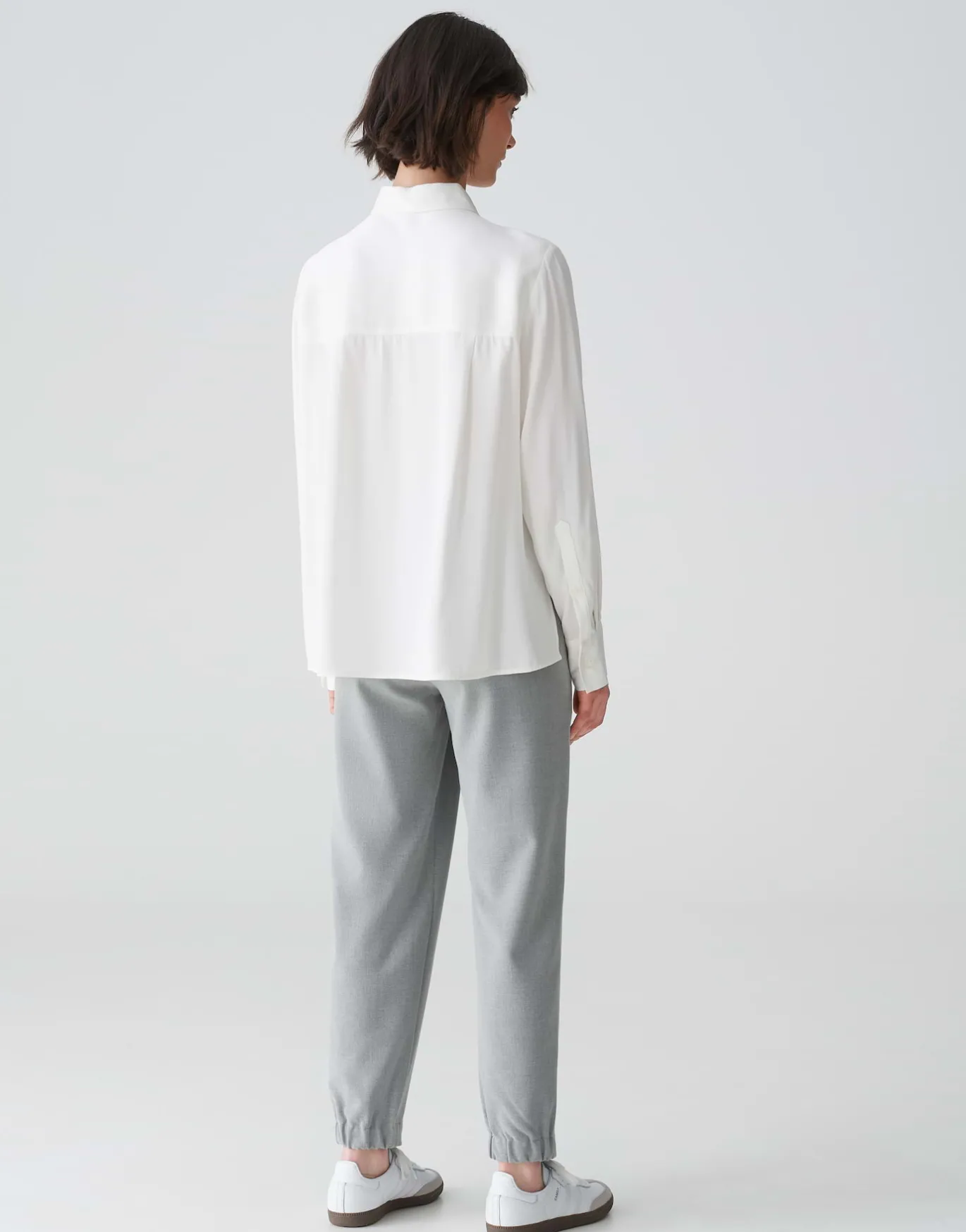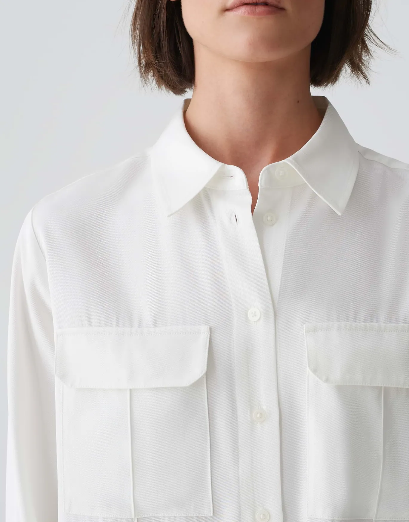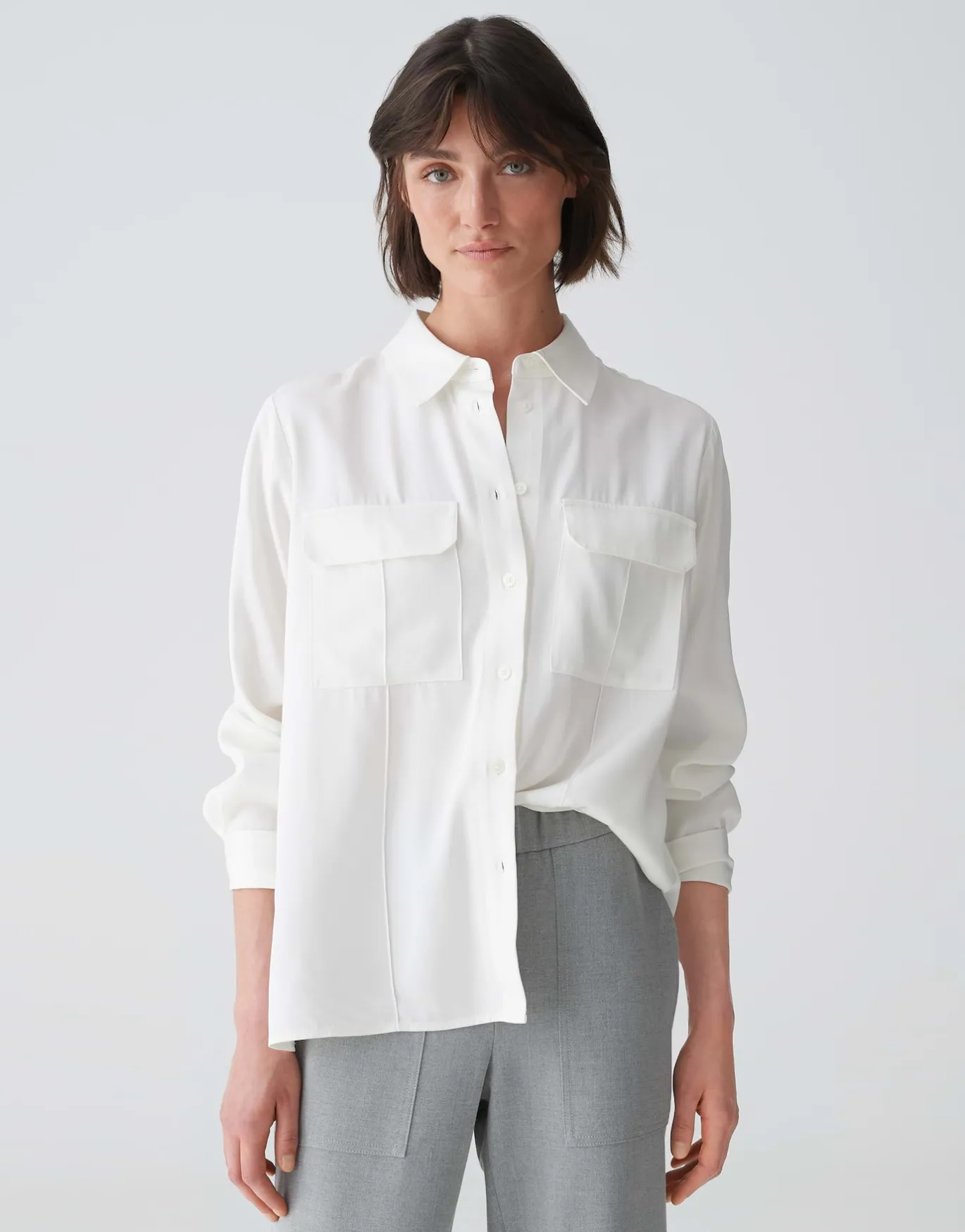 Die weite Hemdbluse begeistert mit einer modernen Passform und einer edlen schimmernden Oberfläche mit einer dezenten Struktur – ideal für besondere Anlässe.