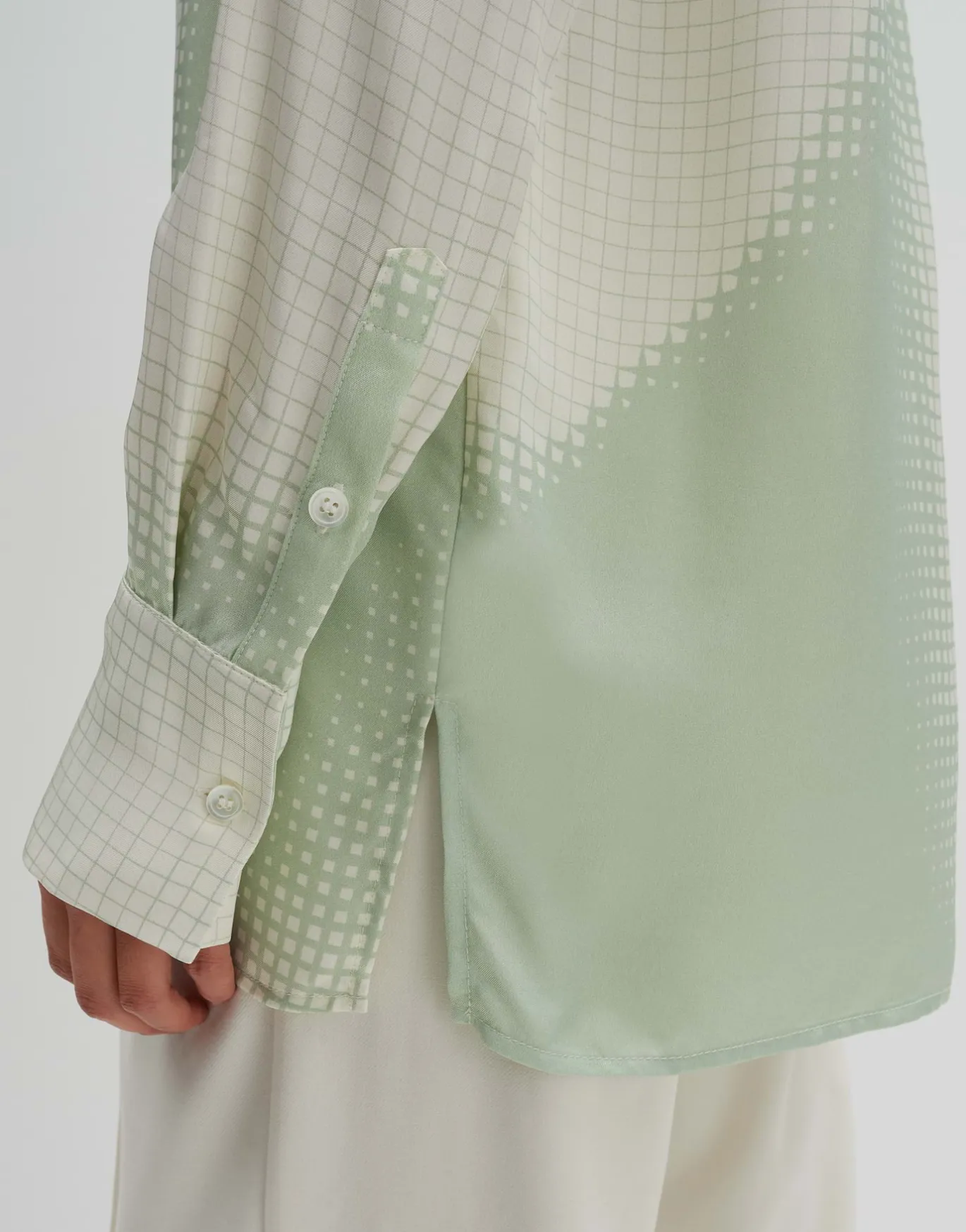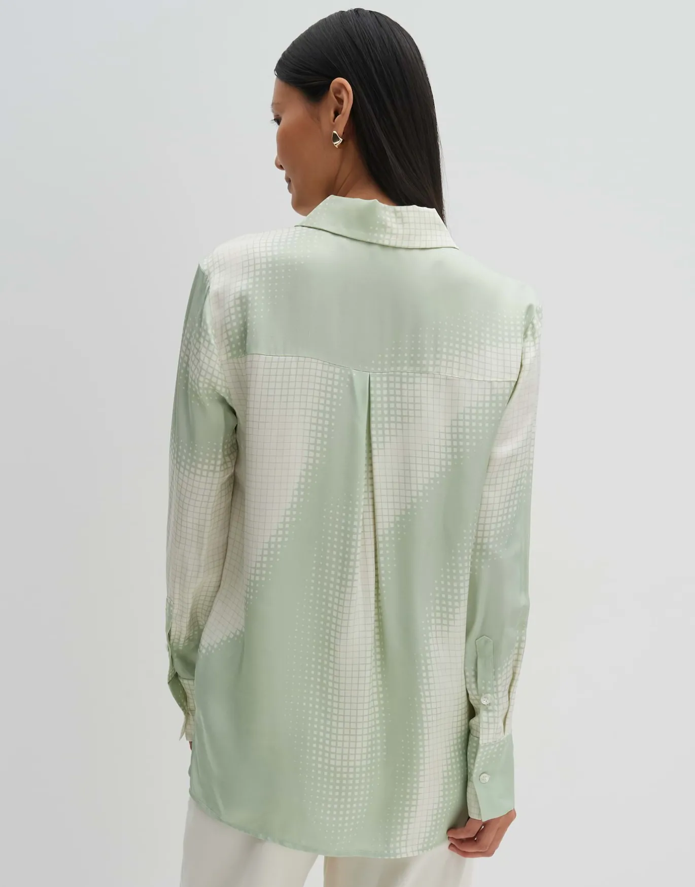 Die Satinbluse im lässigen Oversize Fit zeigt einen graphischen Druck mit leichtem Farbverlauf und sorgt so für einen tollen Eyecatcher.