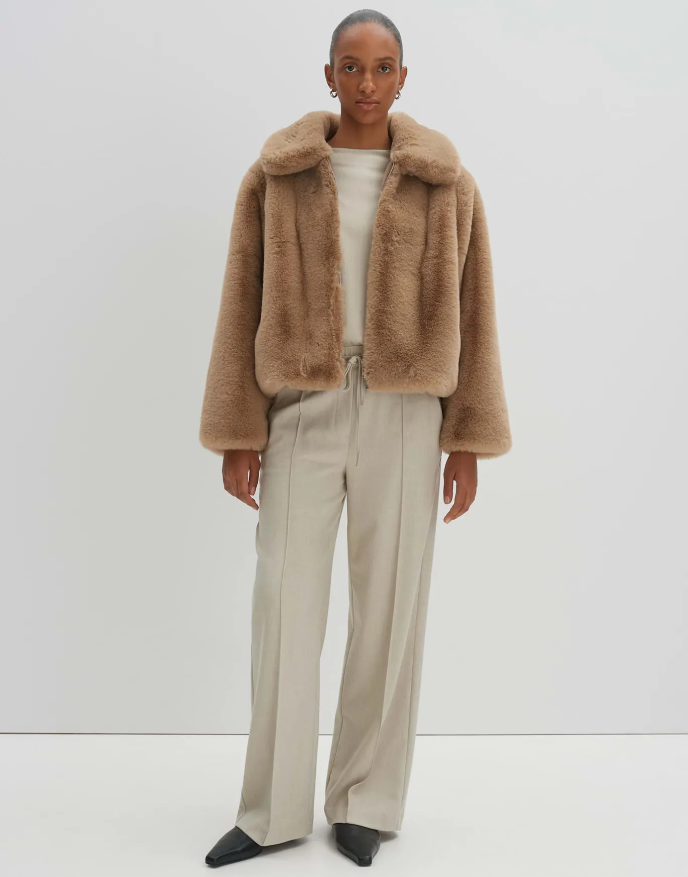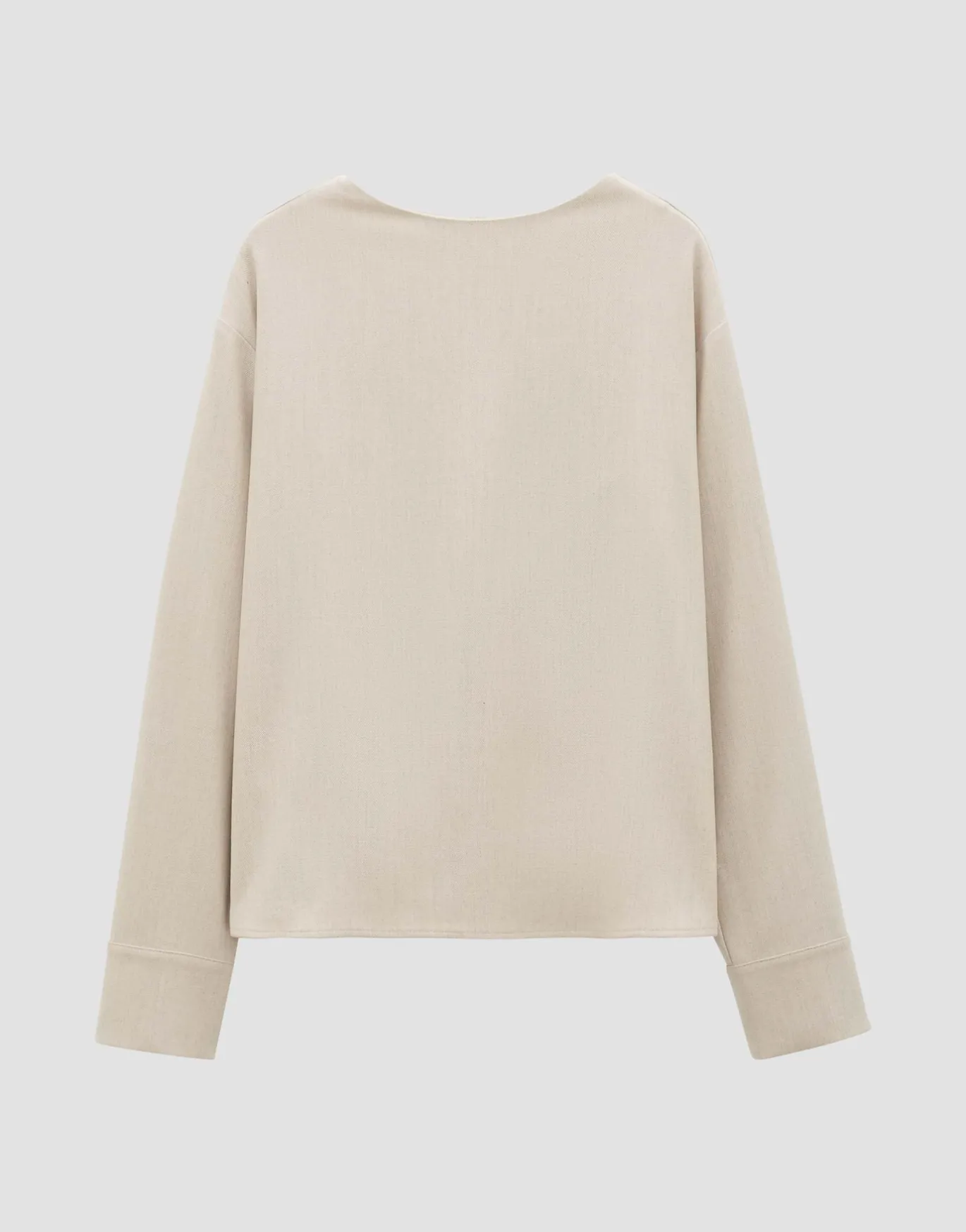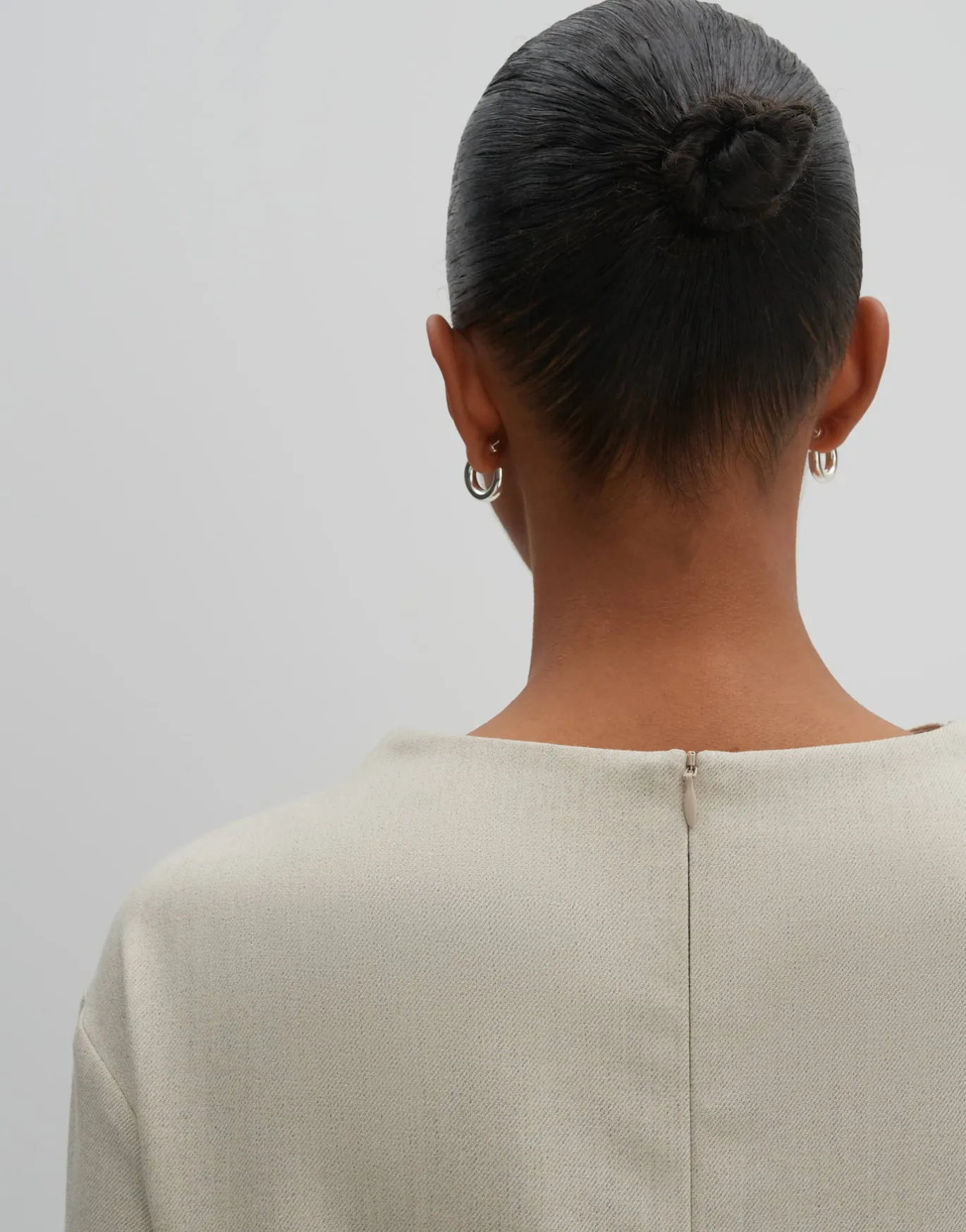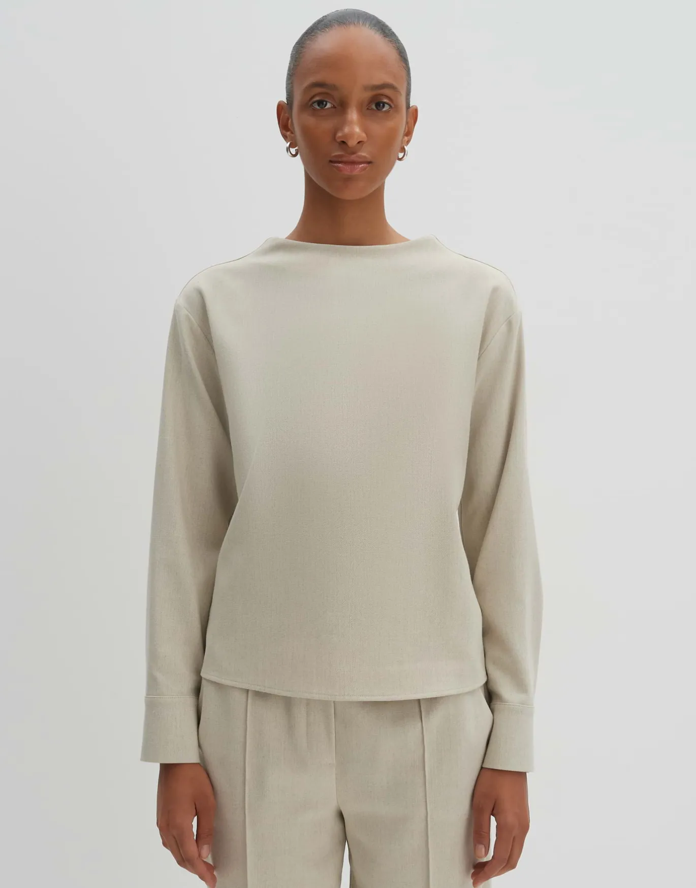 Die Bluse ist schlicht gehalten und funktiniert besonders elegant im Complete Look mit der passenden Hose.