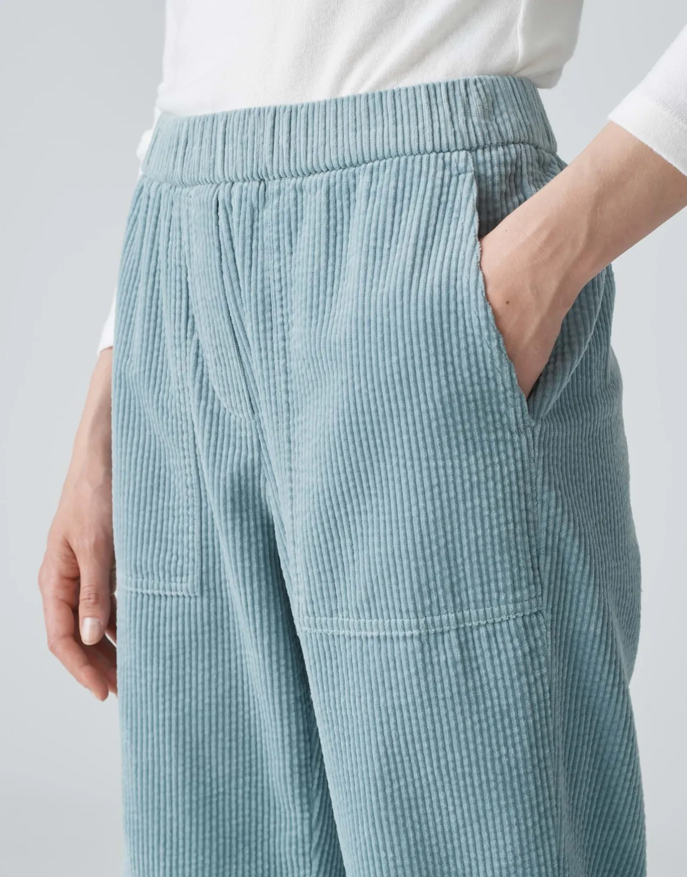 Diese Jogpants aus weichem Cord zeichnet sich durch seine komfortable und dennoch alltagstaugliche Passform aus, die besonders im Complete Look mit dem passenden Overshirt glänzt.