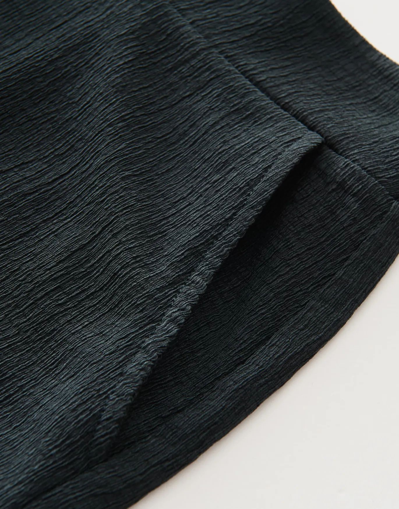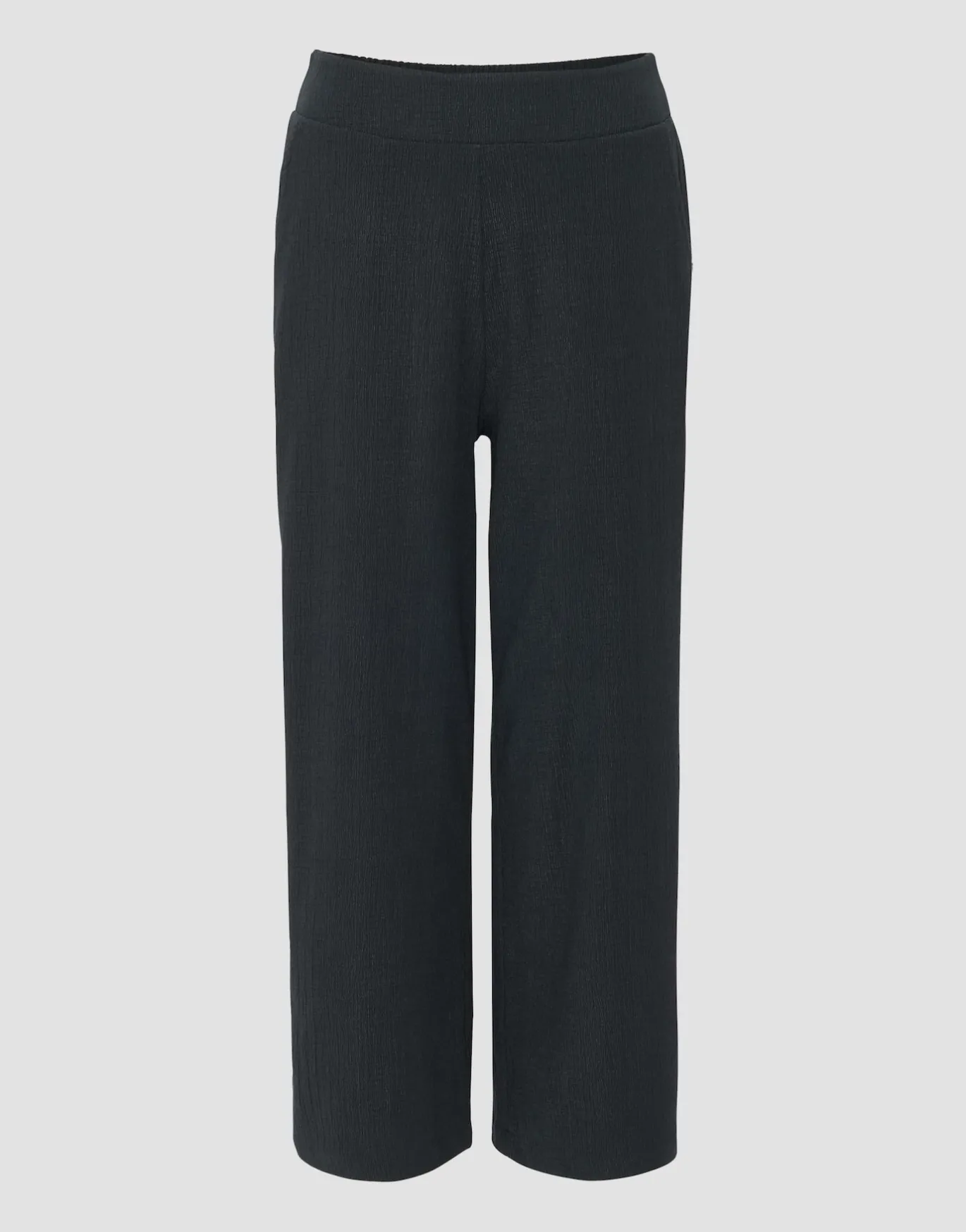 Die Culotte aus einer strukturierten Jerseyware ist in klassischer Hosenrock Silhouette gehalten. Der schlichte Look setzt den Fokus auf die dynamische Oberfläche.