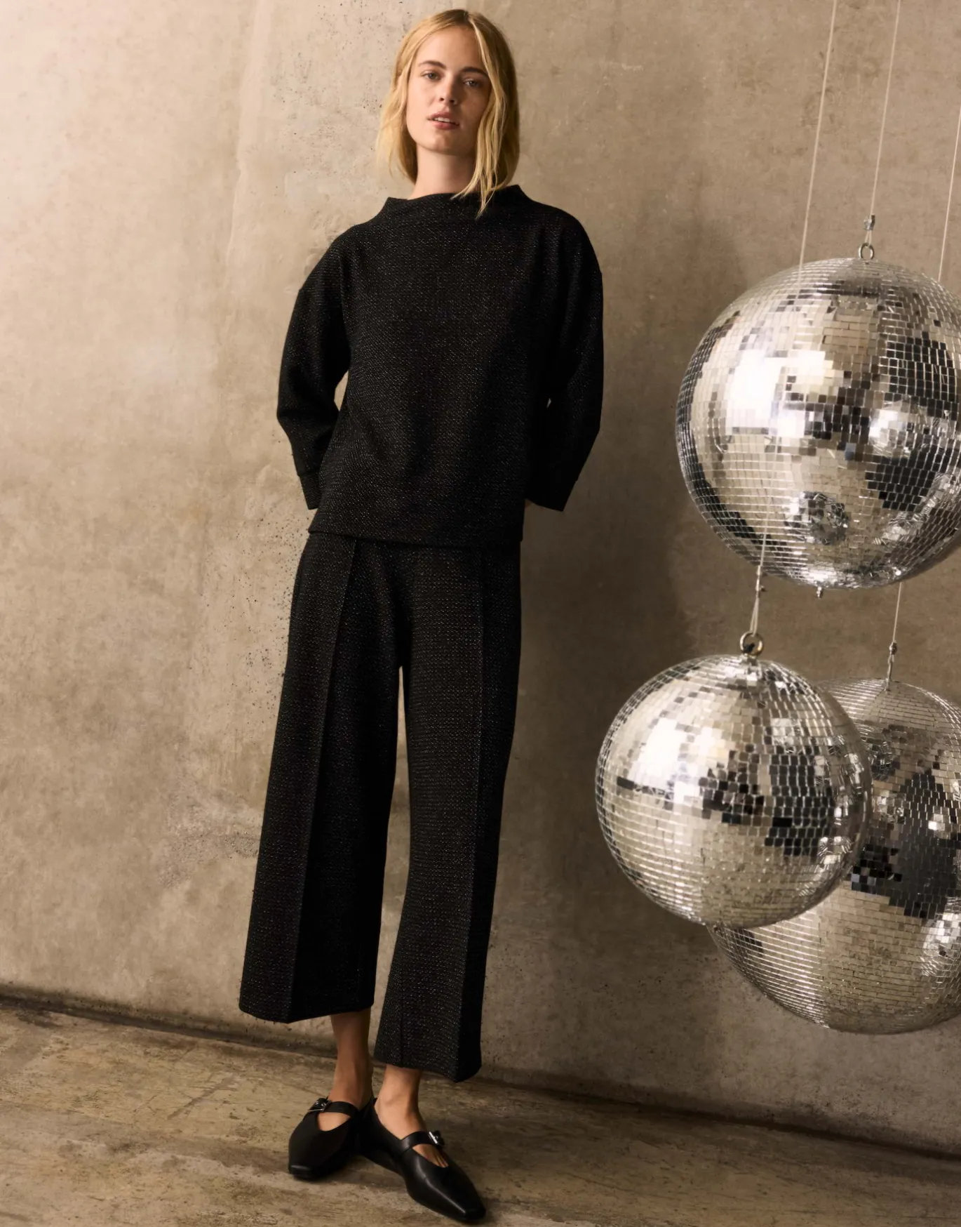 Unsere bewerte Culotte strahlt in festlicher Eleganz und kreiert mit dem passenden Pullover im Set einen modernen Festtagslook.