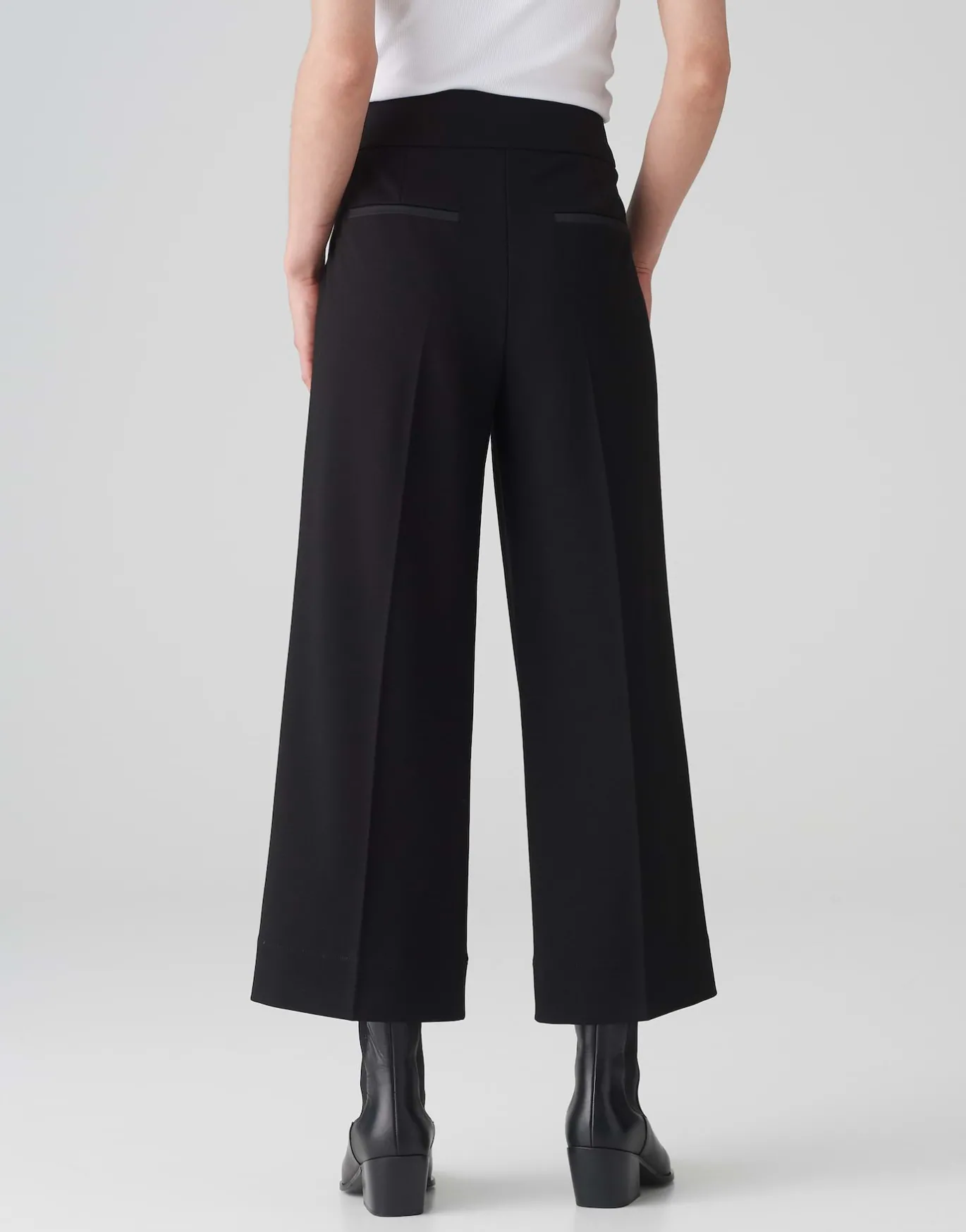 Die Culotte erhält durch den satinierten Galonstreifen und Details ein festliches Update, und darf in keiner Festtagsgarderobe fehlen.