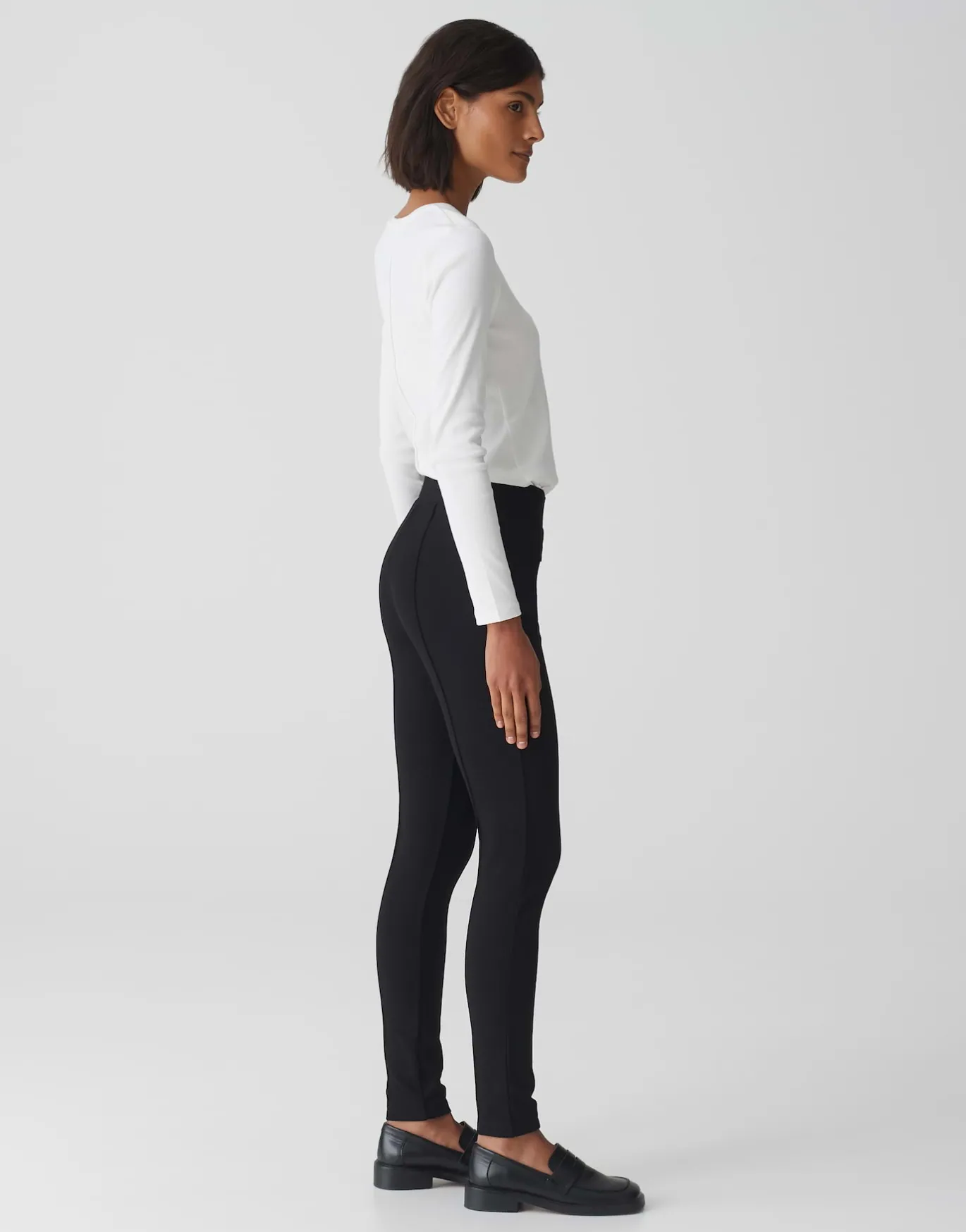 Diese Leggings aus einem nachhaltigen ECOVERO™-Viskose-Mix besitzt eine eng anliegende Passform. Die angenehme Haptik und der elastische Gummibund sorgen für ein super komfortables Tragegefühl. Die körperbetonte Passform eignet sich besonders gut für den Style im modernen Layering Look. Die seitlichen Eingrifftaschen der Leggings lassen sich durch Zipper schließen. Vertikale Nähte in der Front und auf der Rückseite verleihen dem schlichten Look zarte Details.