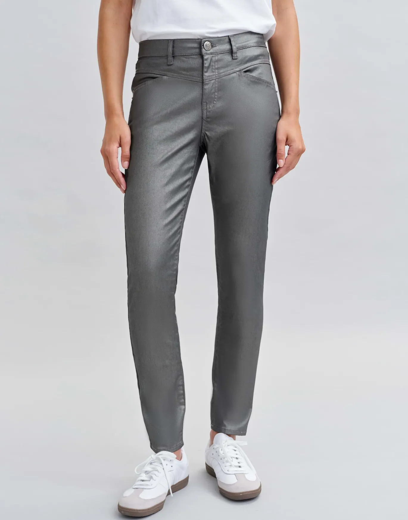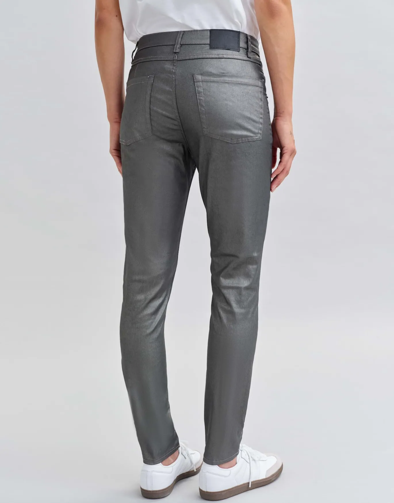 Die Slim Jeans mit der beschichteten Oberfläche kreiert einen eleganten Look ohne dabei an Komfort zu verlieren, Dank des angenehmen Stretch-Anteils.