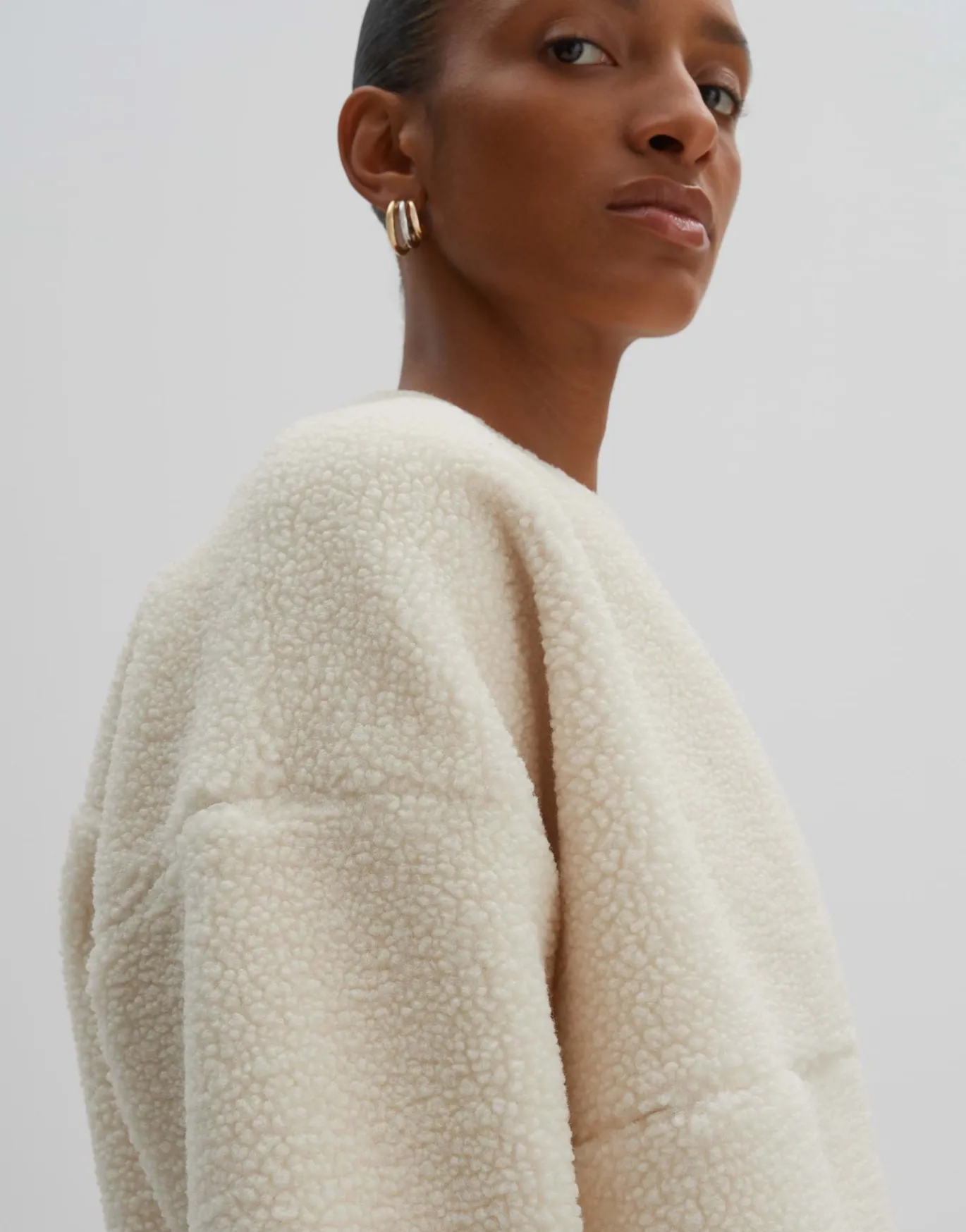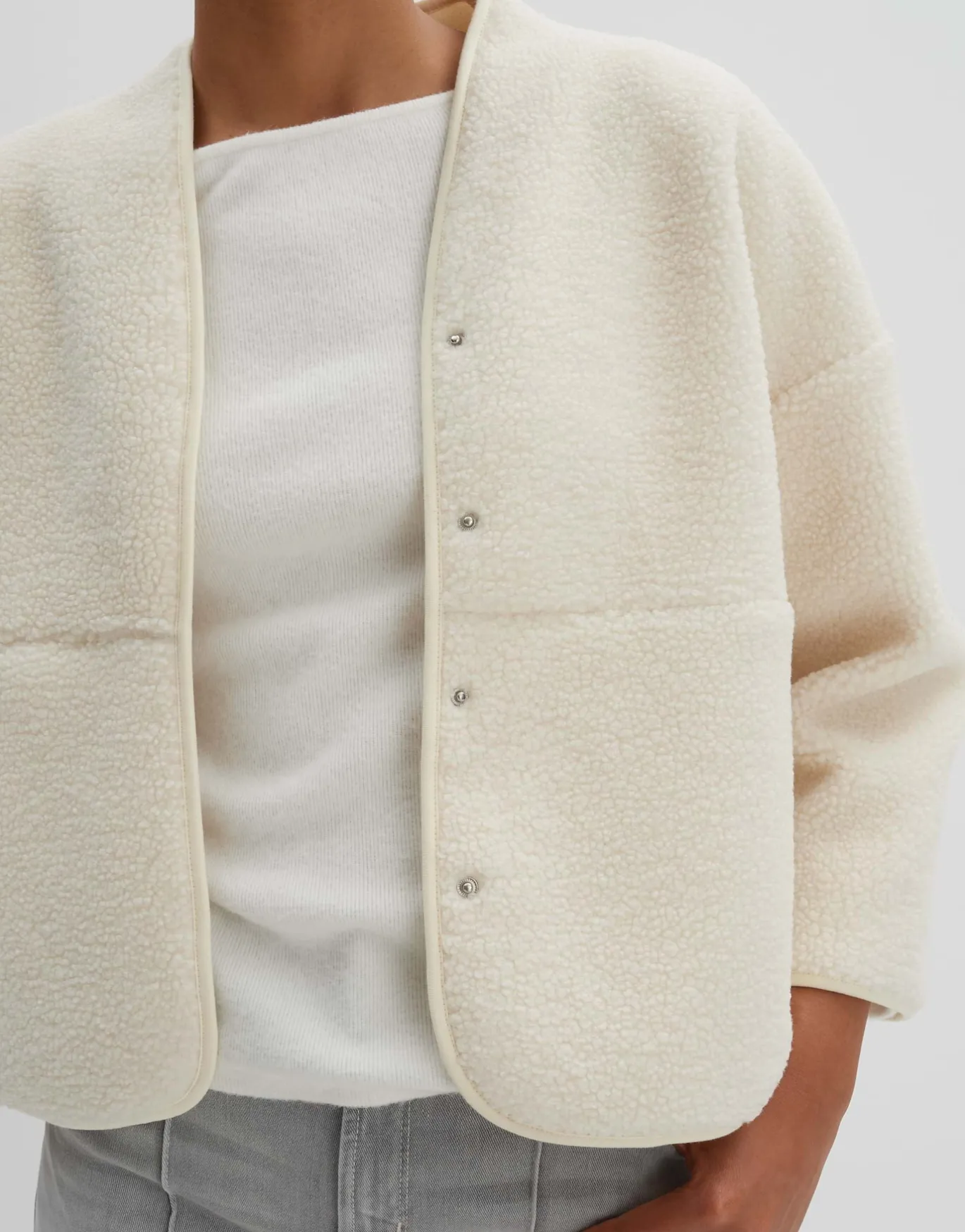 Die Jacke in authentischer Lammfell Optik kann zugeknöpft oder lässig geöffnet getragen werden und sorgt für einen modischen Layering Look.