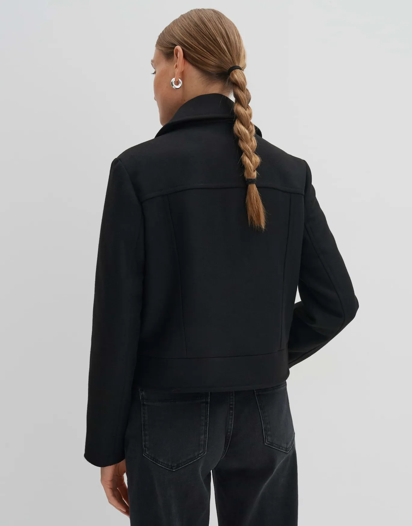 Die Wolljacke eignet sich durch das wärmelnde Material perfekt für die ersten kalten Tage im Herbst und bietet durch den asymmetrischen Verschluss ein optisches Highlight.