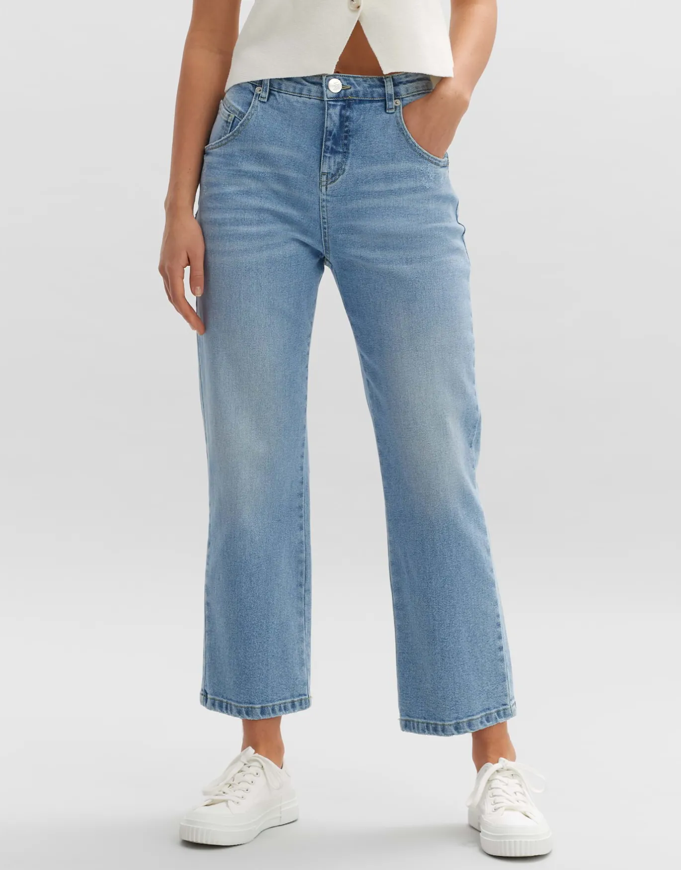 Die Boyfriend Jeans mit dem geraden, verkürzten Bein wirkt super trendy und lässig zugleich, und steht durch den Stret…
