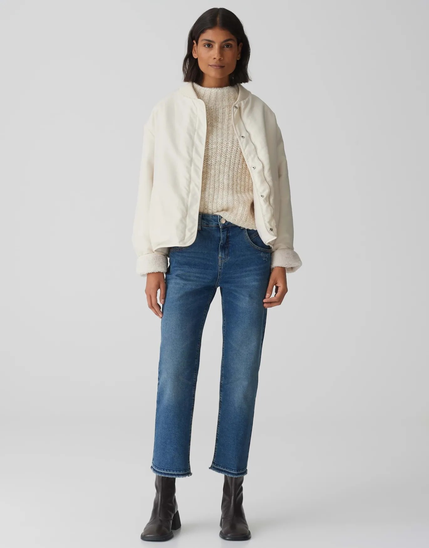 Die Boyfriend Jeans mit dem geraden, verkürzten Bein wirkt super trendy und lässig zugleich, und steht durch den Stretch-Anteil für maximalen Tragekomfort.