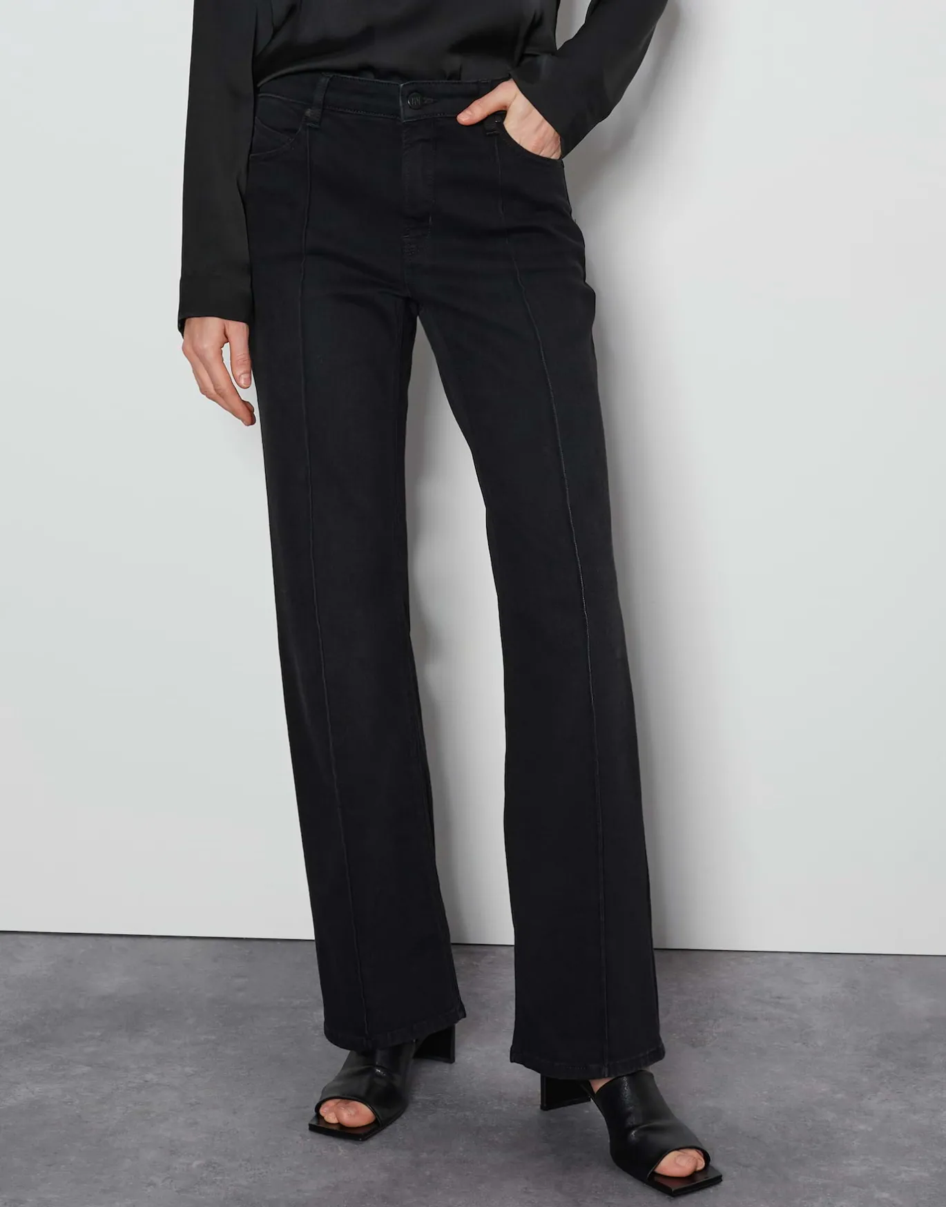 Damen OPUS Jeans^Long Flared Jeans Carie Line Schwarz Online Bestellen