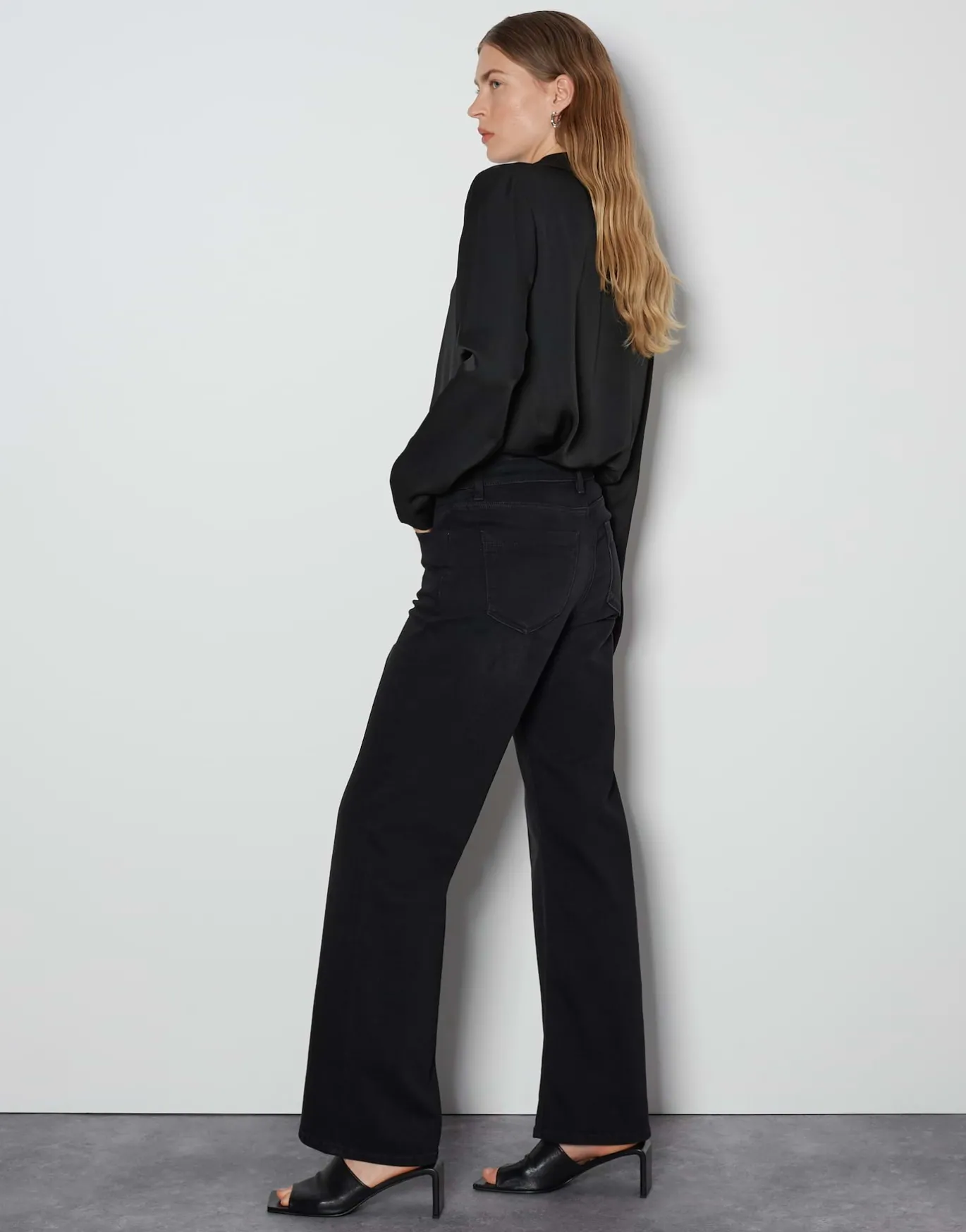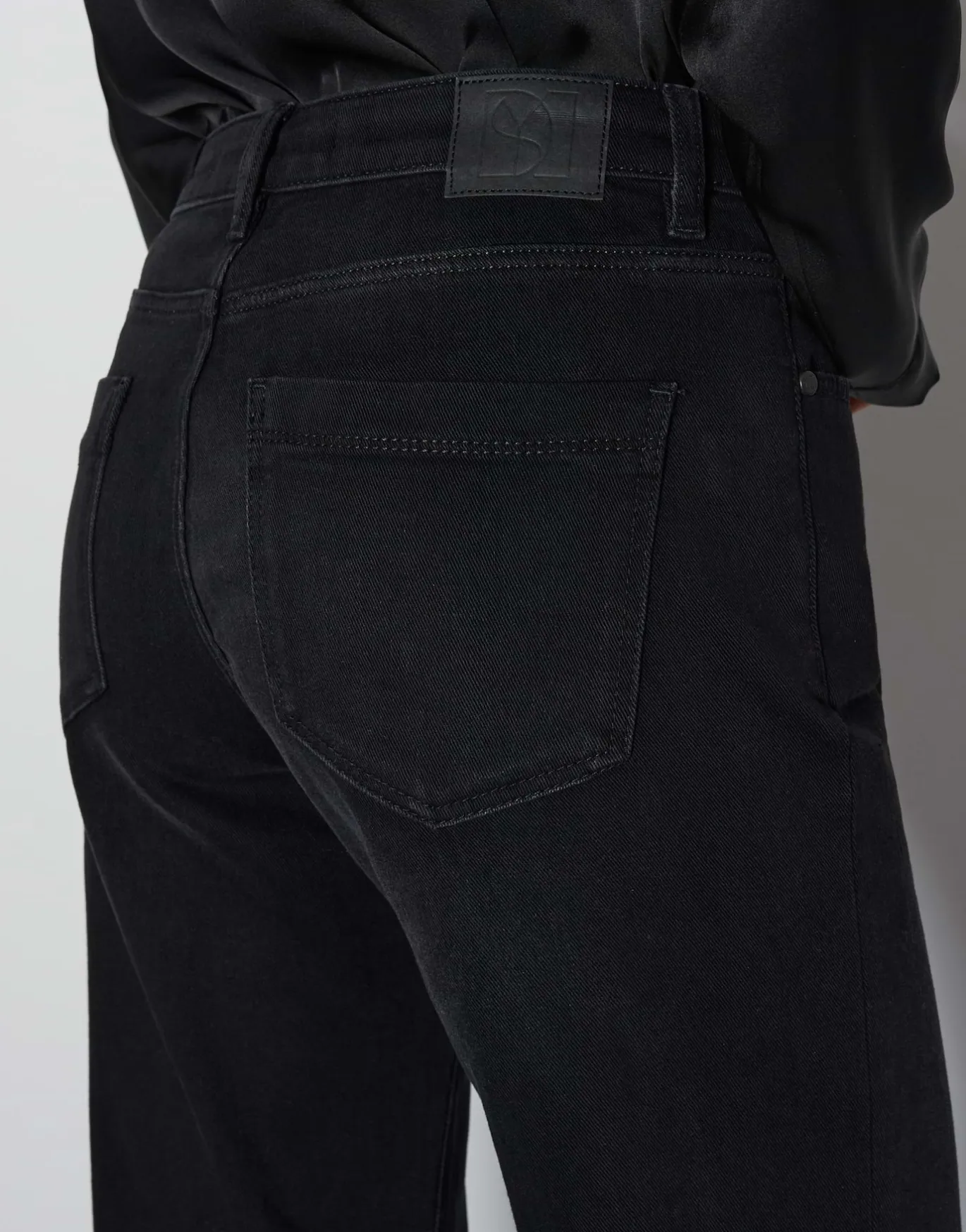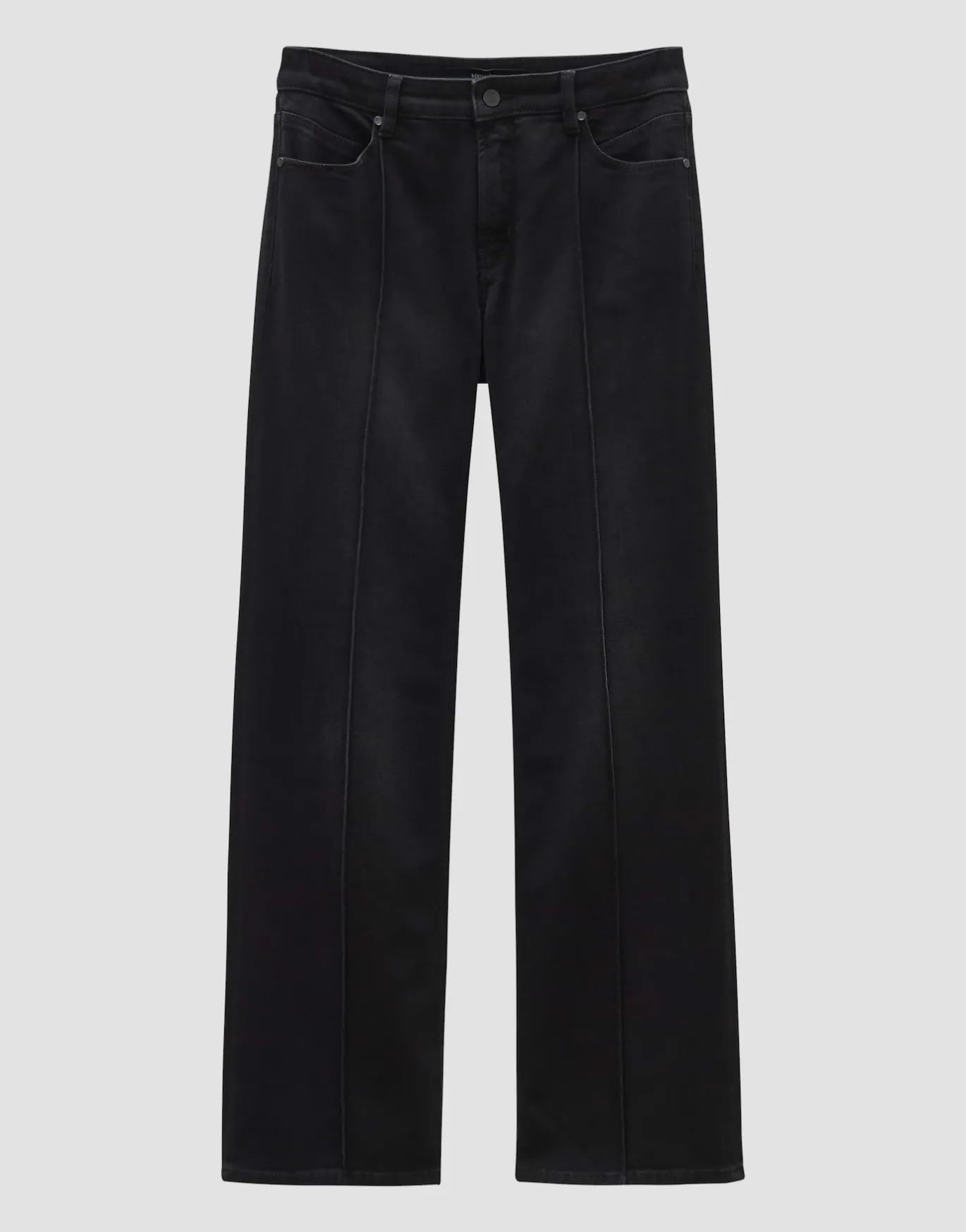 Diese dunkle Jeans zeigt sich mit dem ausgestellten Bein und der abgesteppten Biese von ihrer eleganten und femininen Seite.