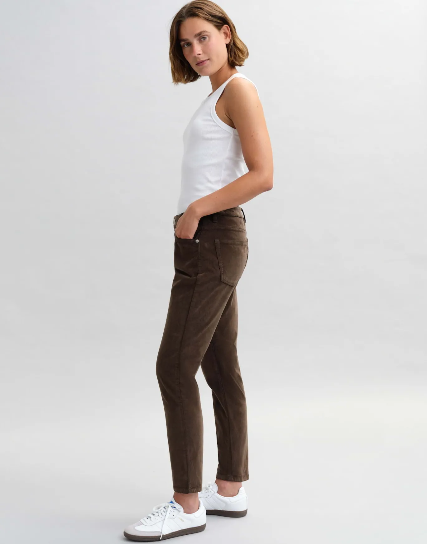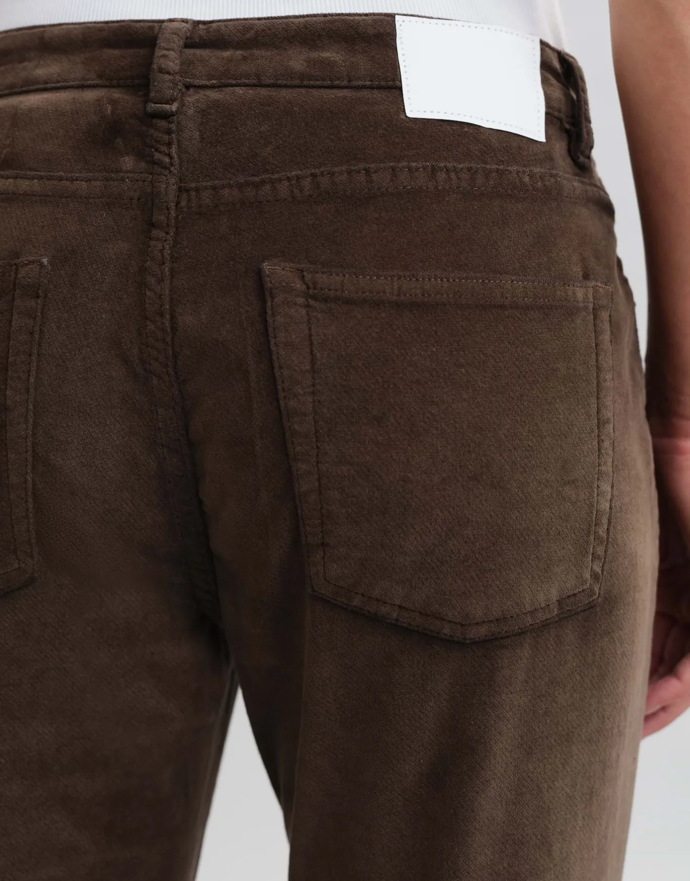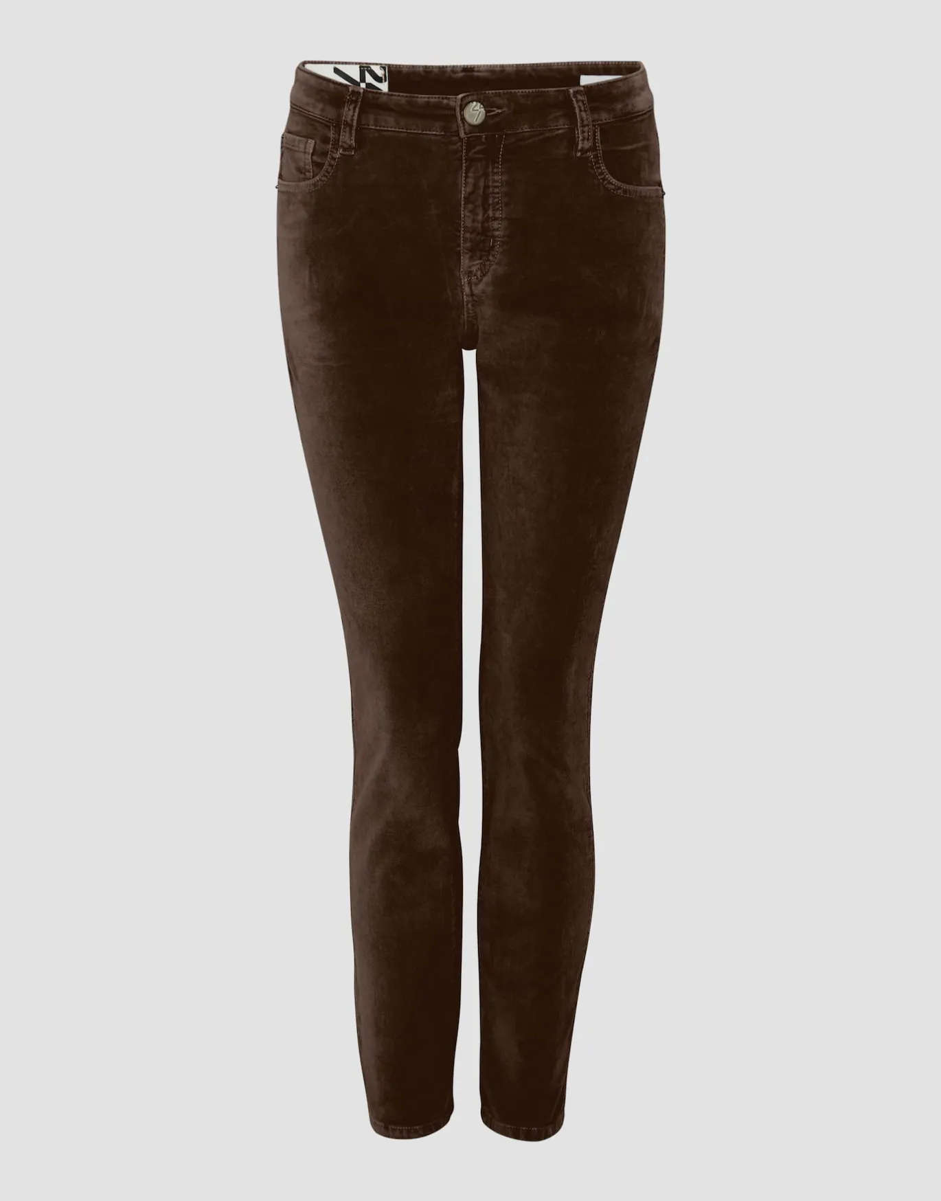 Die schmale Hose kommt durch die samtige Oberfläche mit einem extra weichem Tragekomfort daher und kreiert einen legeren Herbstlook.