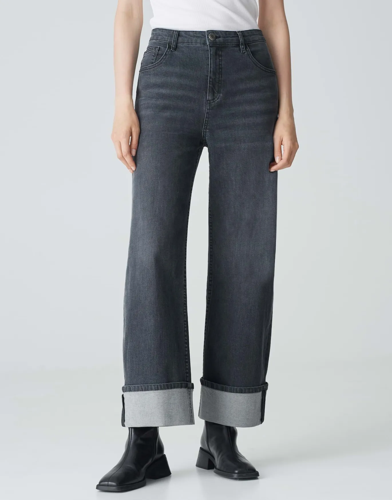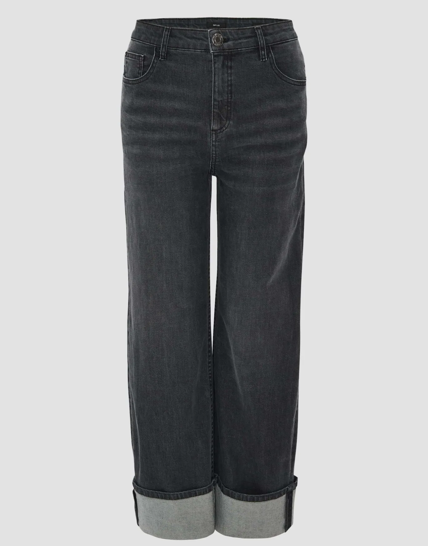 Die Wide Leg Jeans legt den Fokus auf den breiten Aufschlag am Saum und verleiht jedem Outfit eine trendige Note.