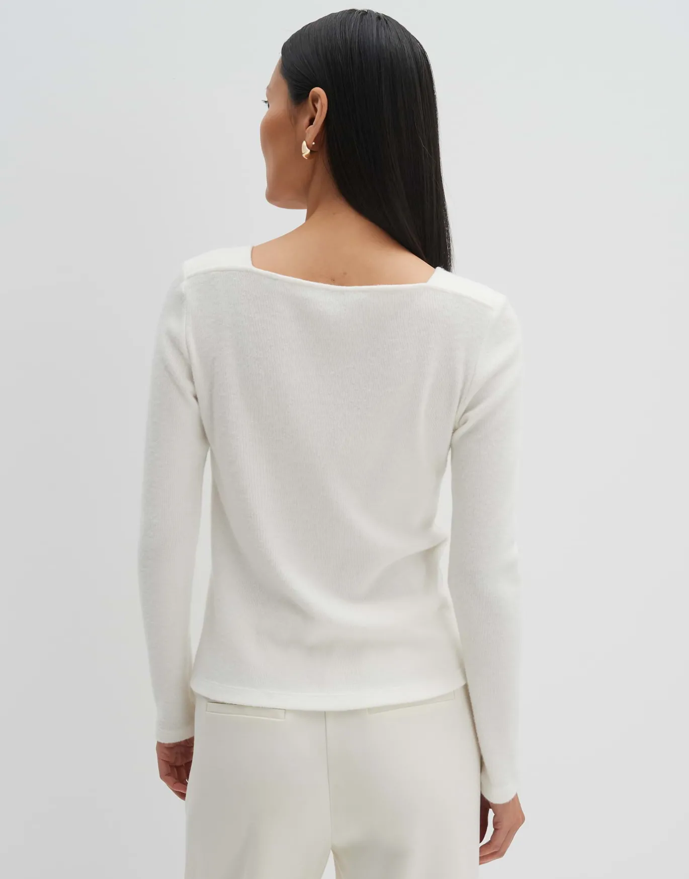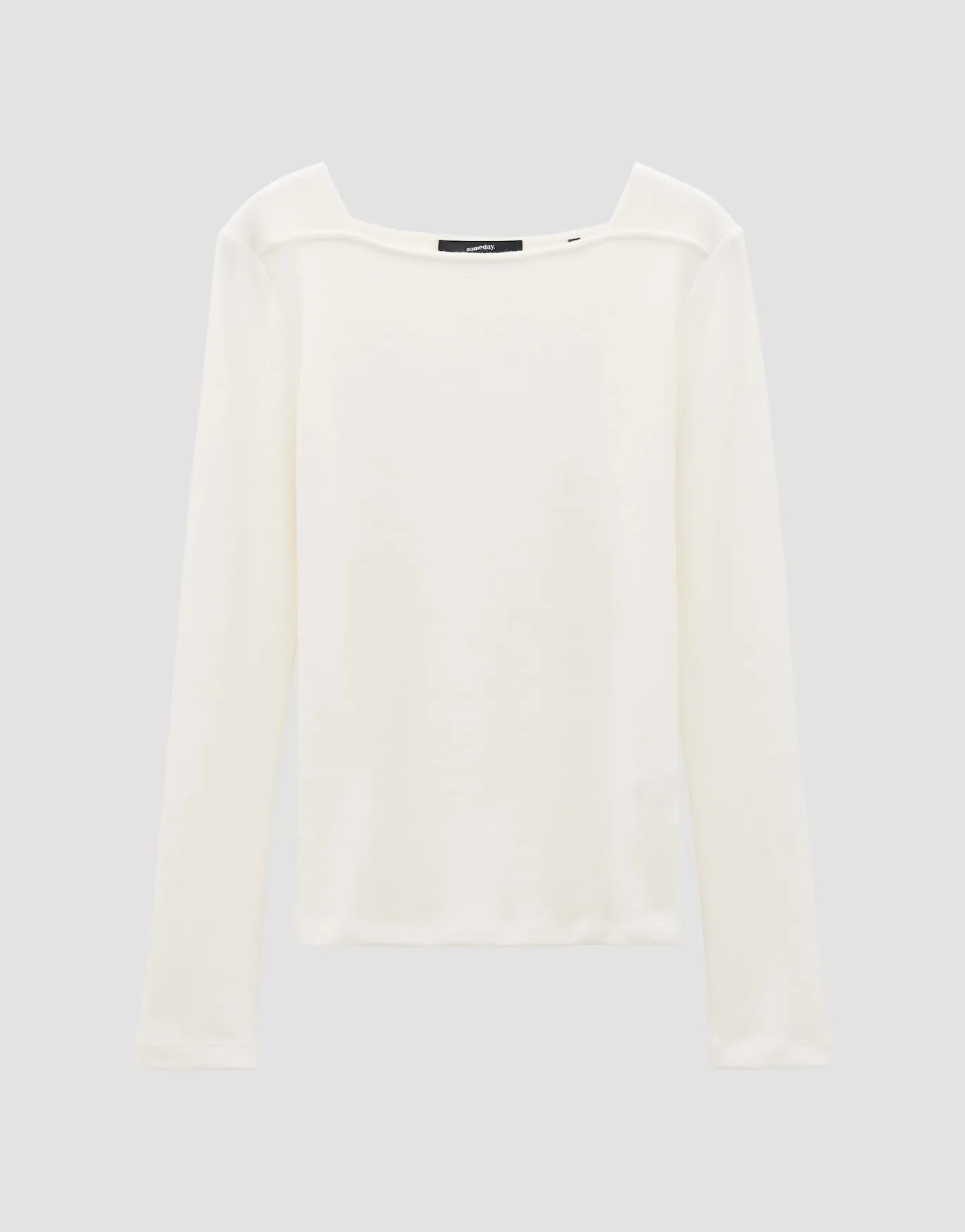 Das gerippte Jerseyshirt ist extrem weich und sorgt mit dem Karree-Ausschnitt und der schmalen Passform für eine schmeichelnde Silhouette.