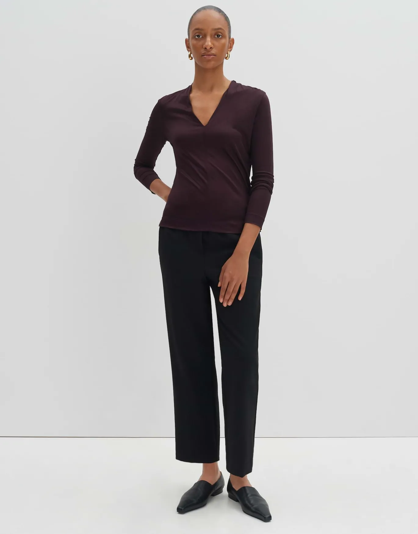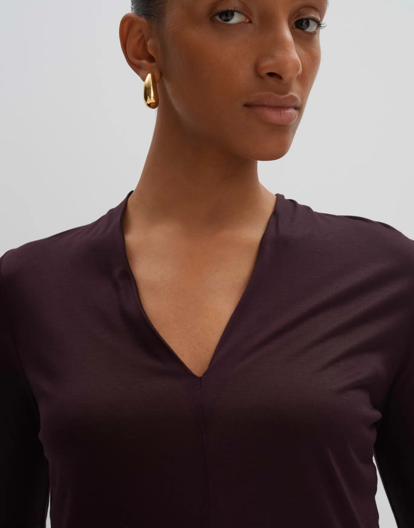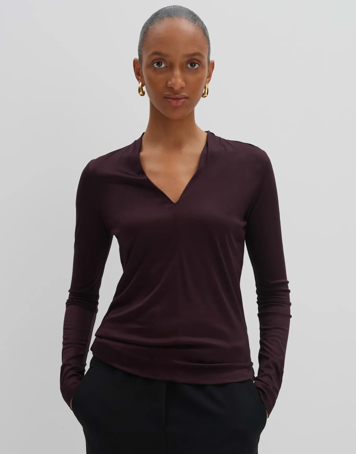 Das leichte, dünne V-Shirt eignet sich mit der schmalen Silhouette perfekt zum Layern.