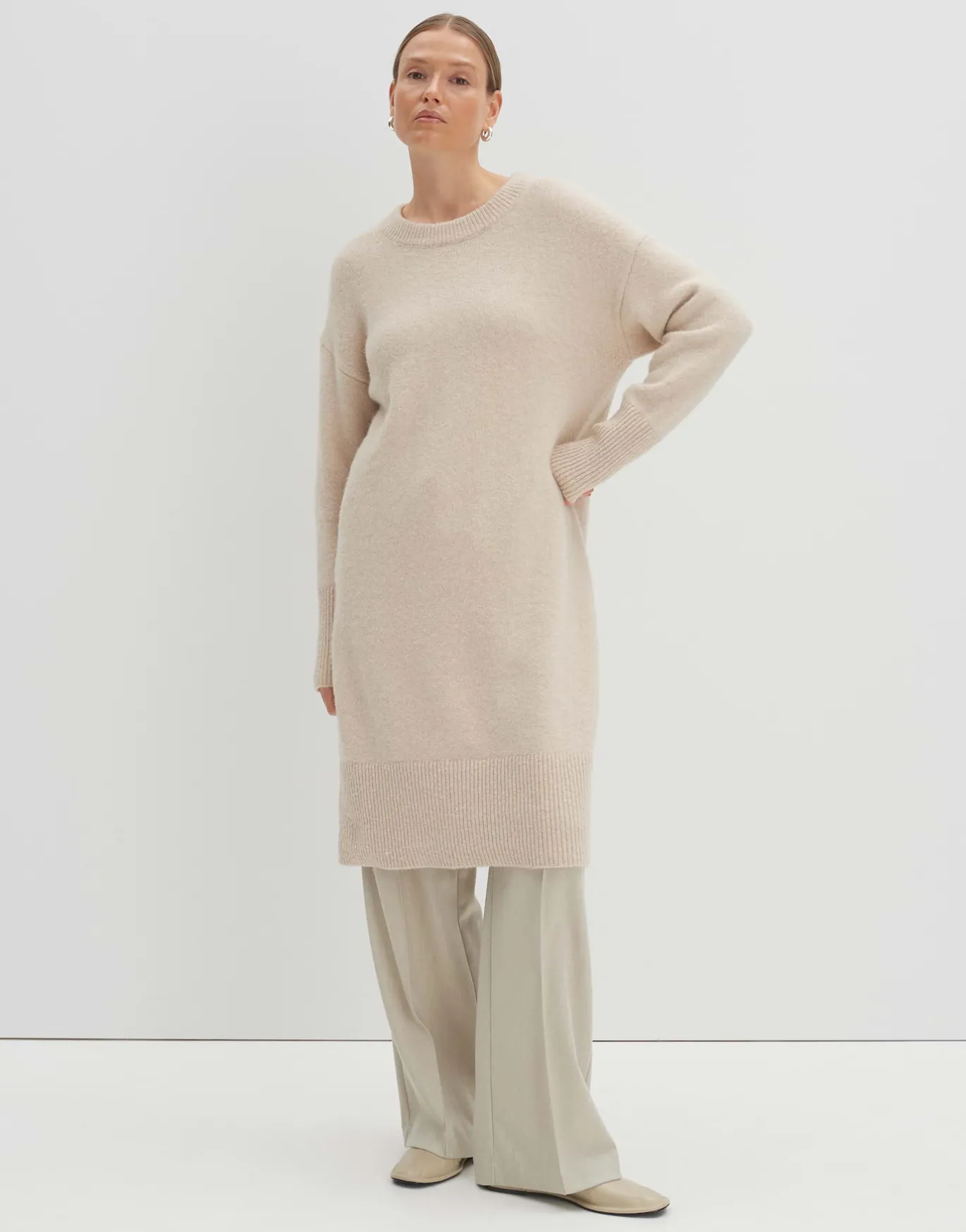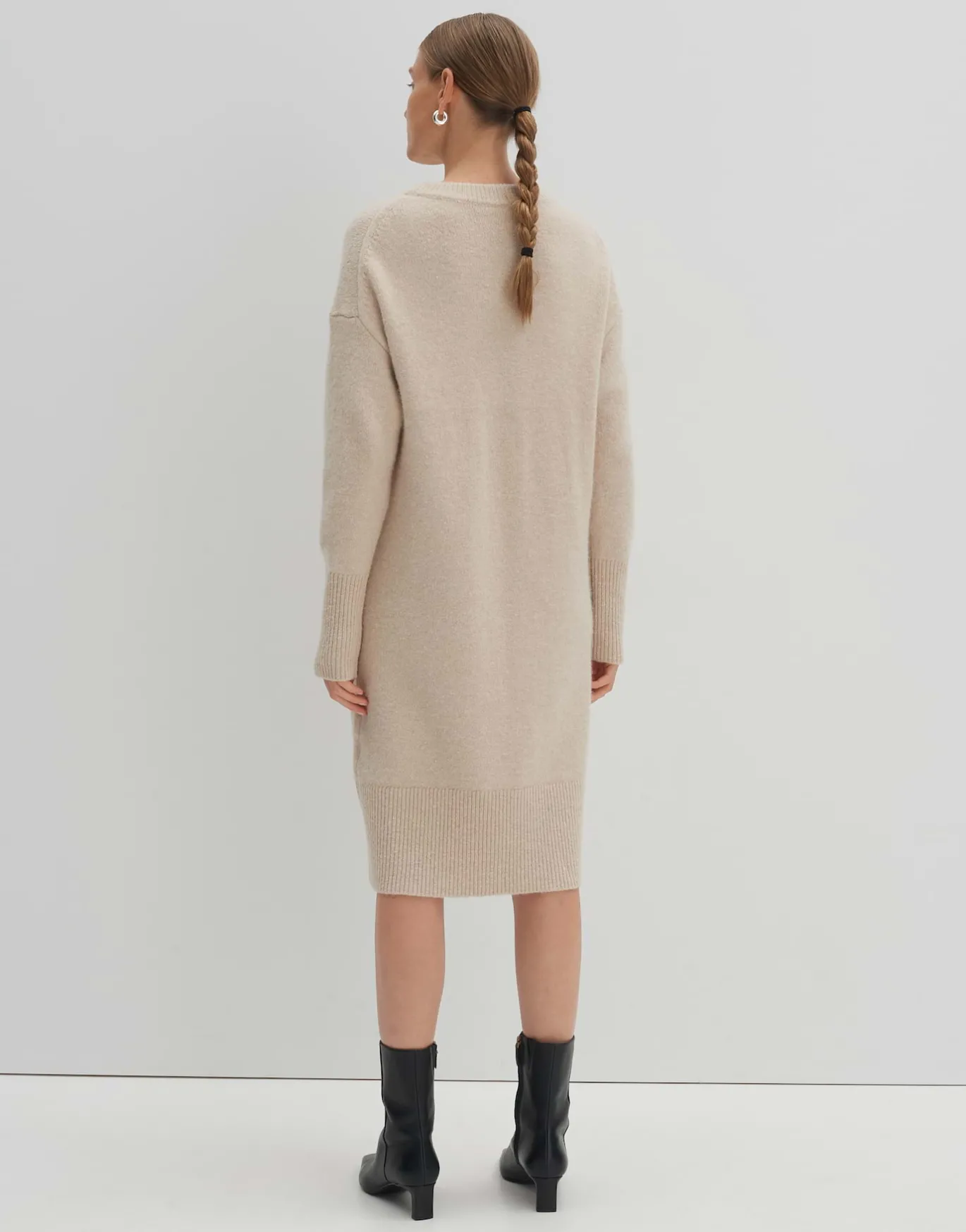 Das Strickkleid verfügt über eine leichte Wollmischung und wärmt angenehm ohne aufwendiges Layering.