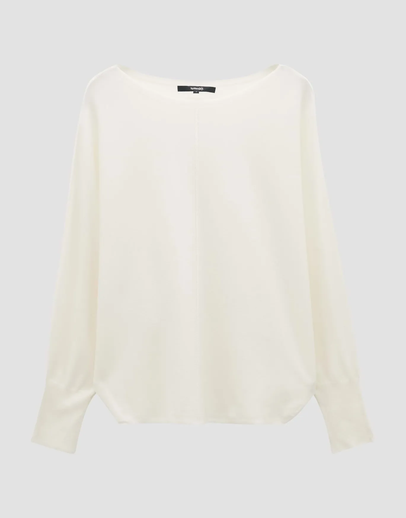 Dieser weich fallende Strickpullover ist ein schmeichelnder Jackenersatz im Sommer und im Winter ein kuscheliger Überzieher.
