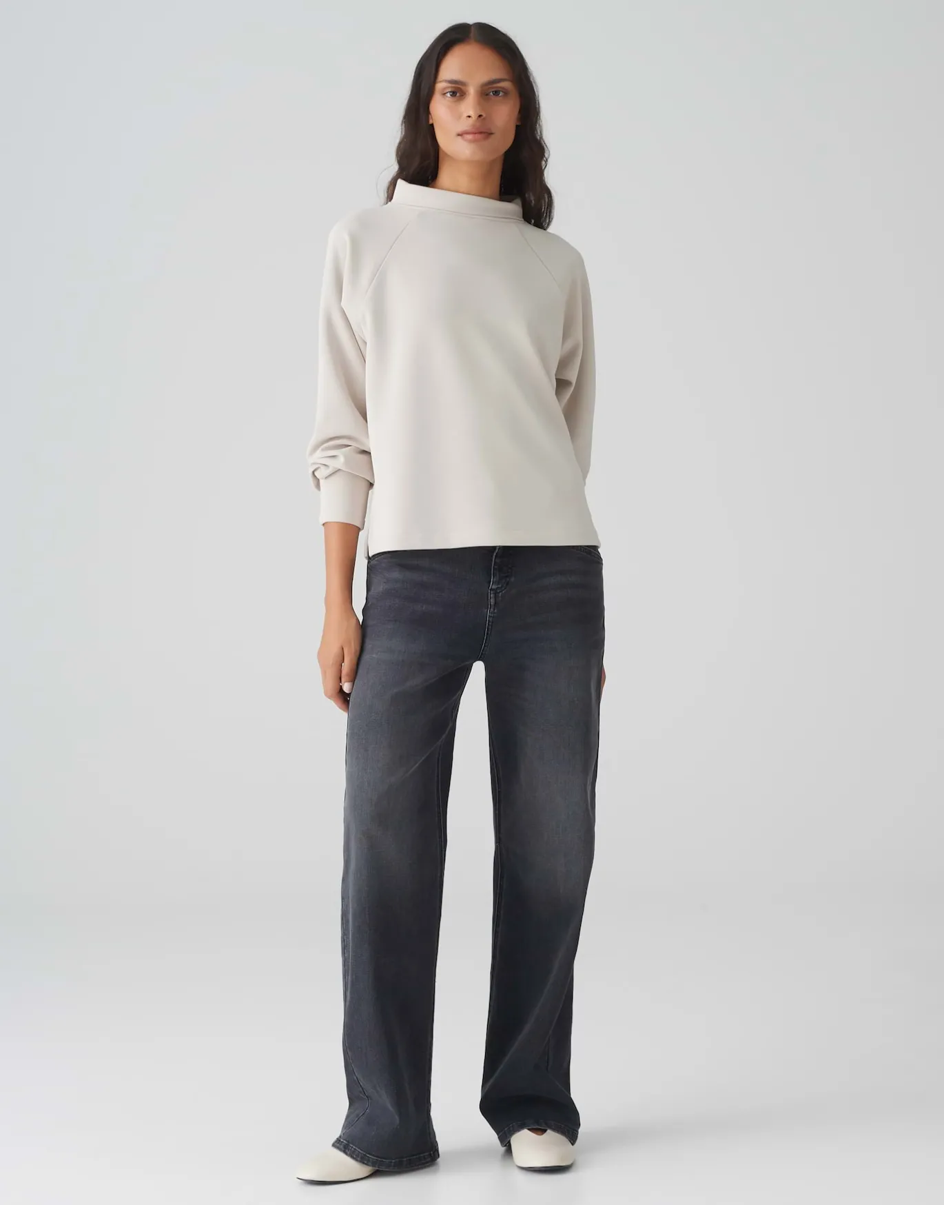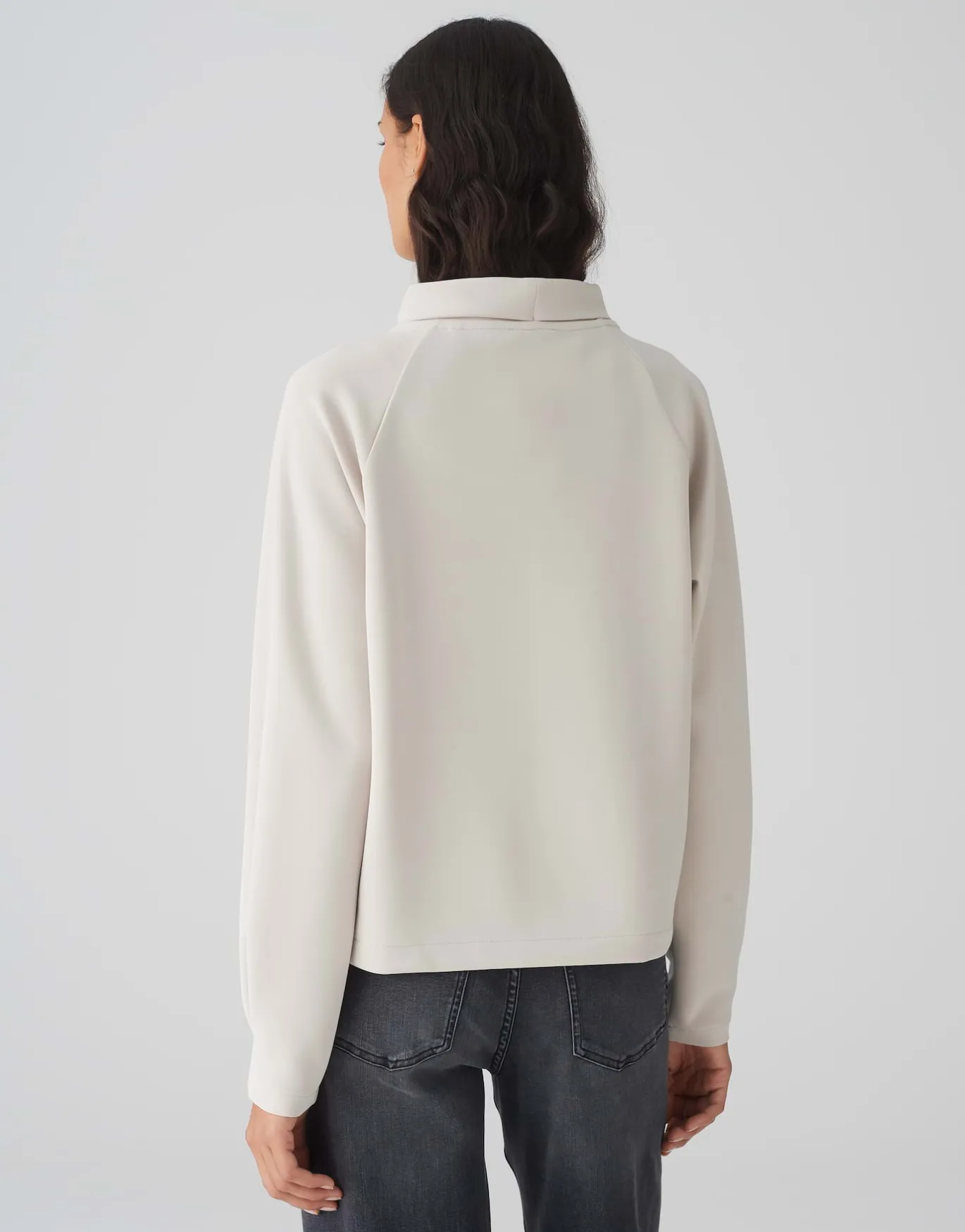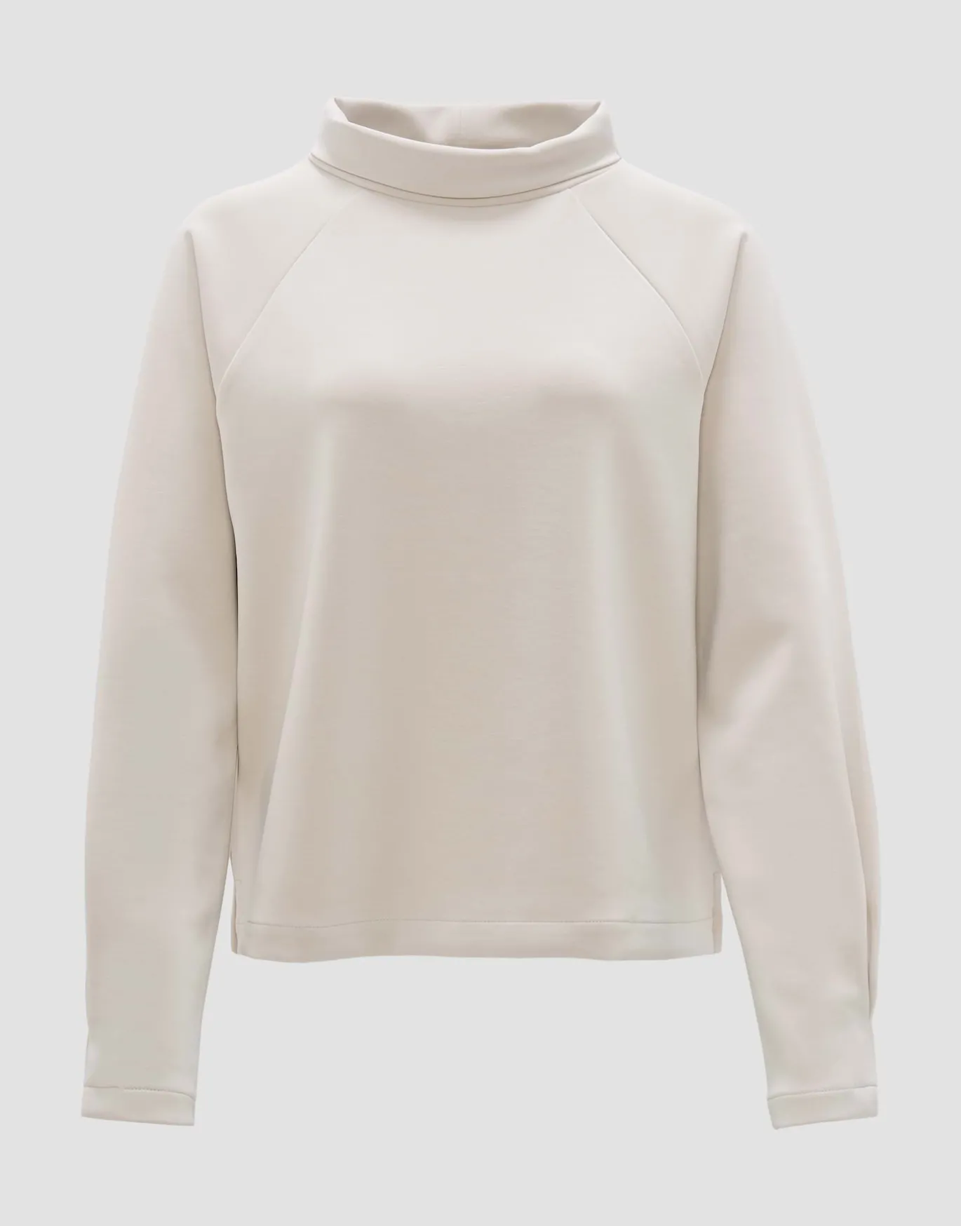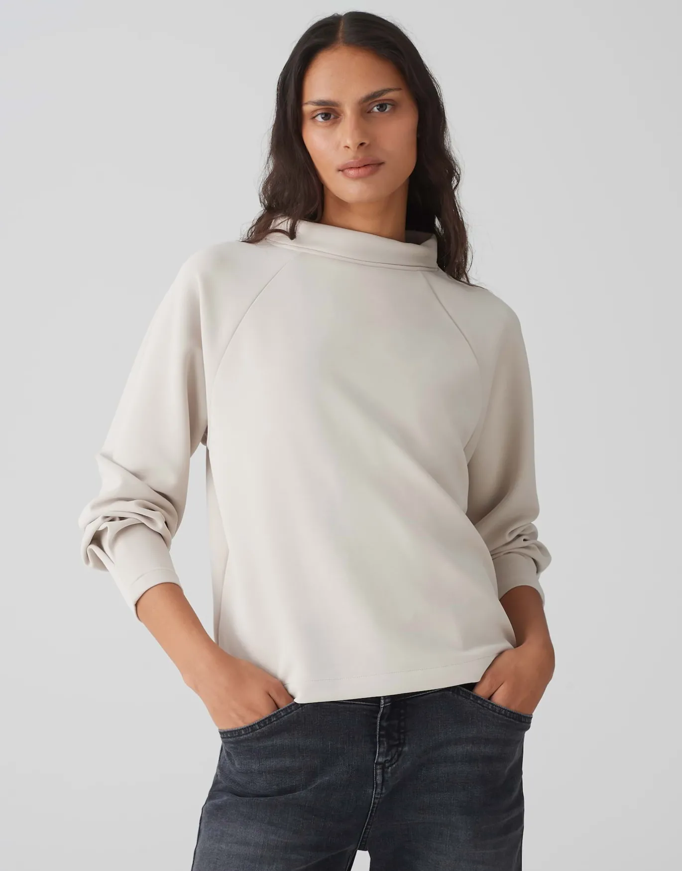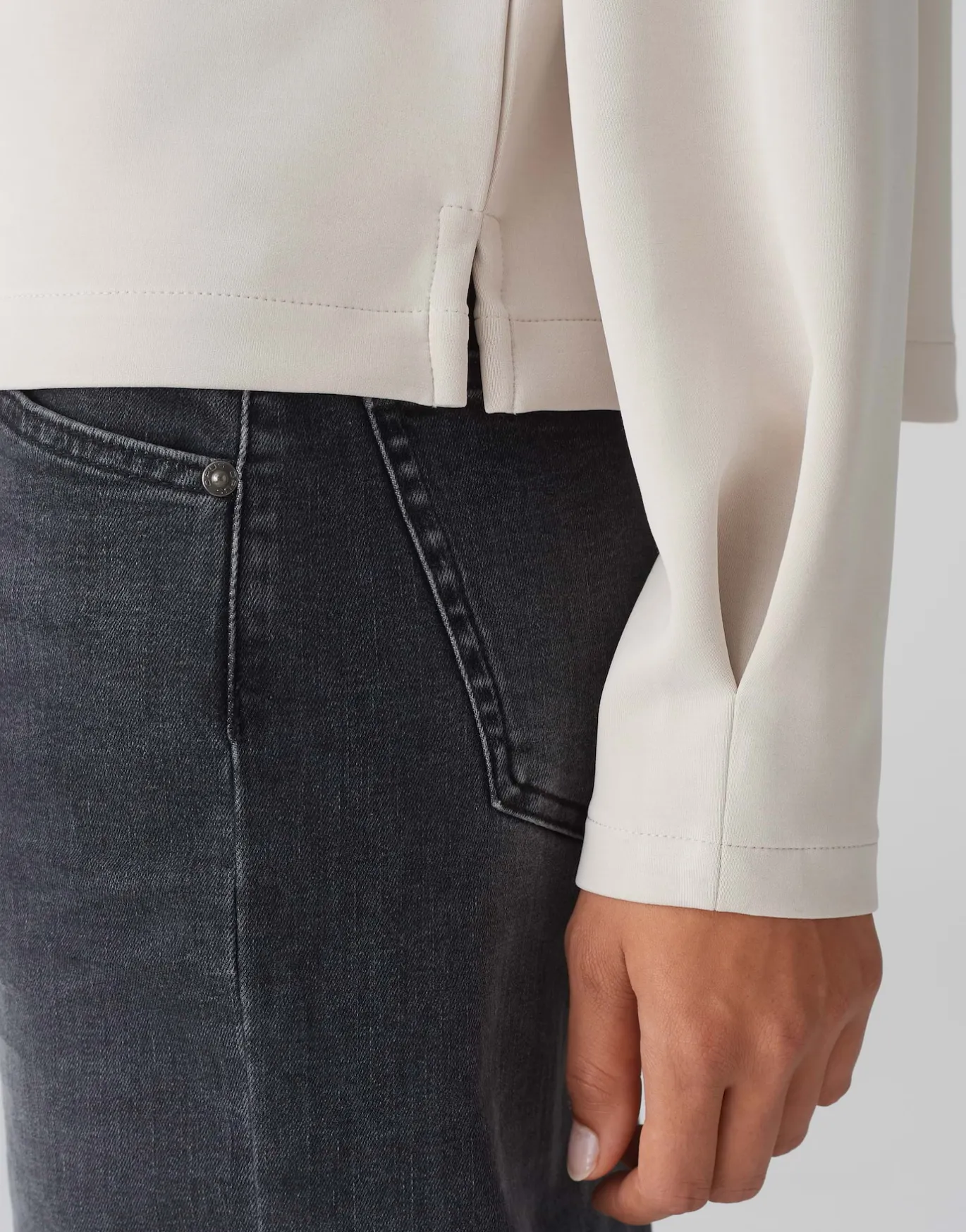 Der lässig geschnittene Sweater besitzt durch den matten Glanz in der Oberfläche und der besonderen Ärmellösung eine elegante Note.