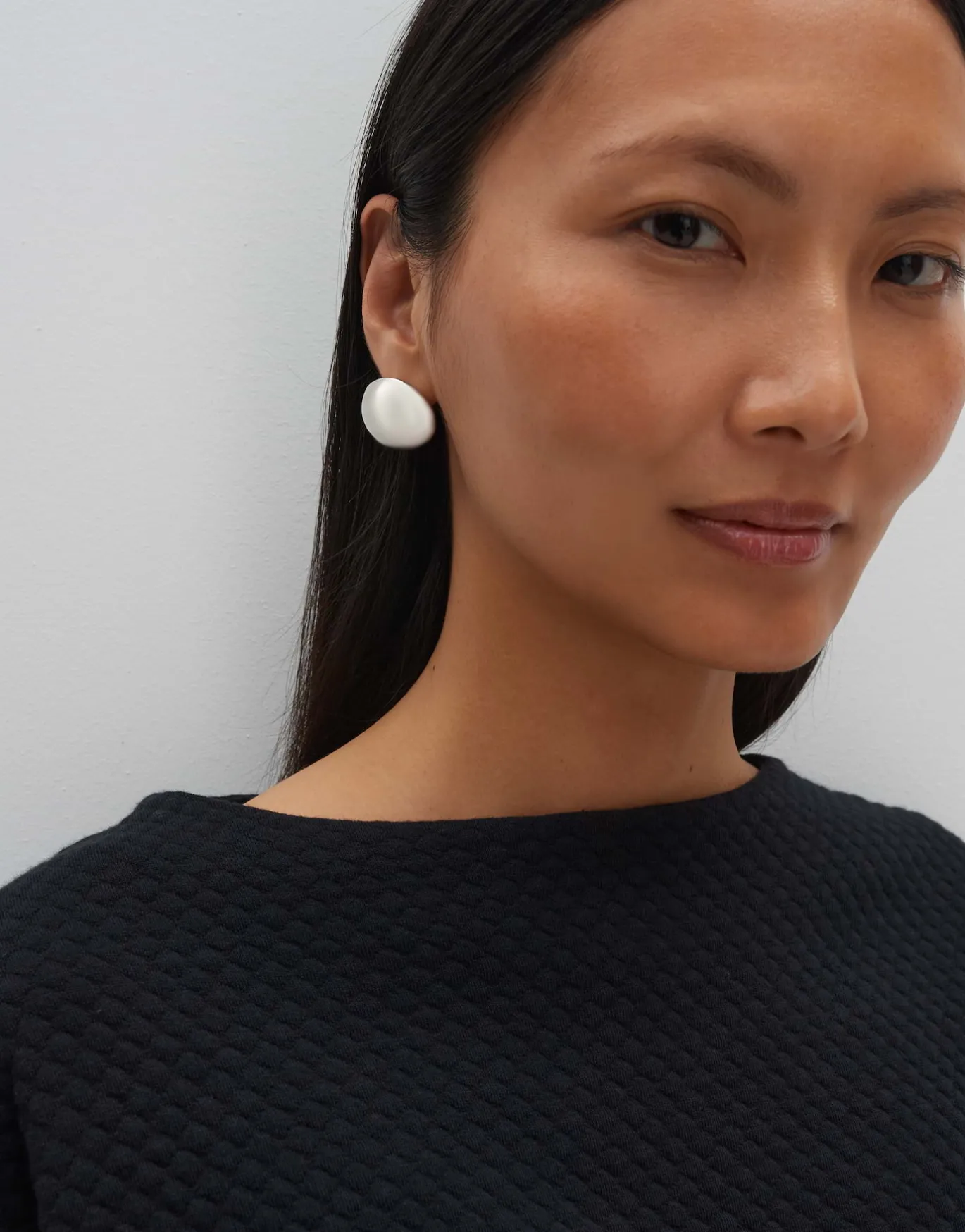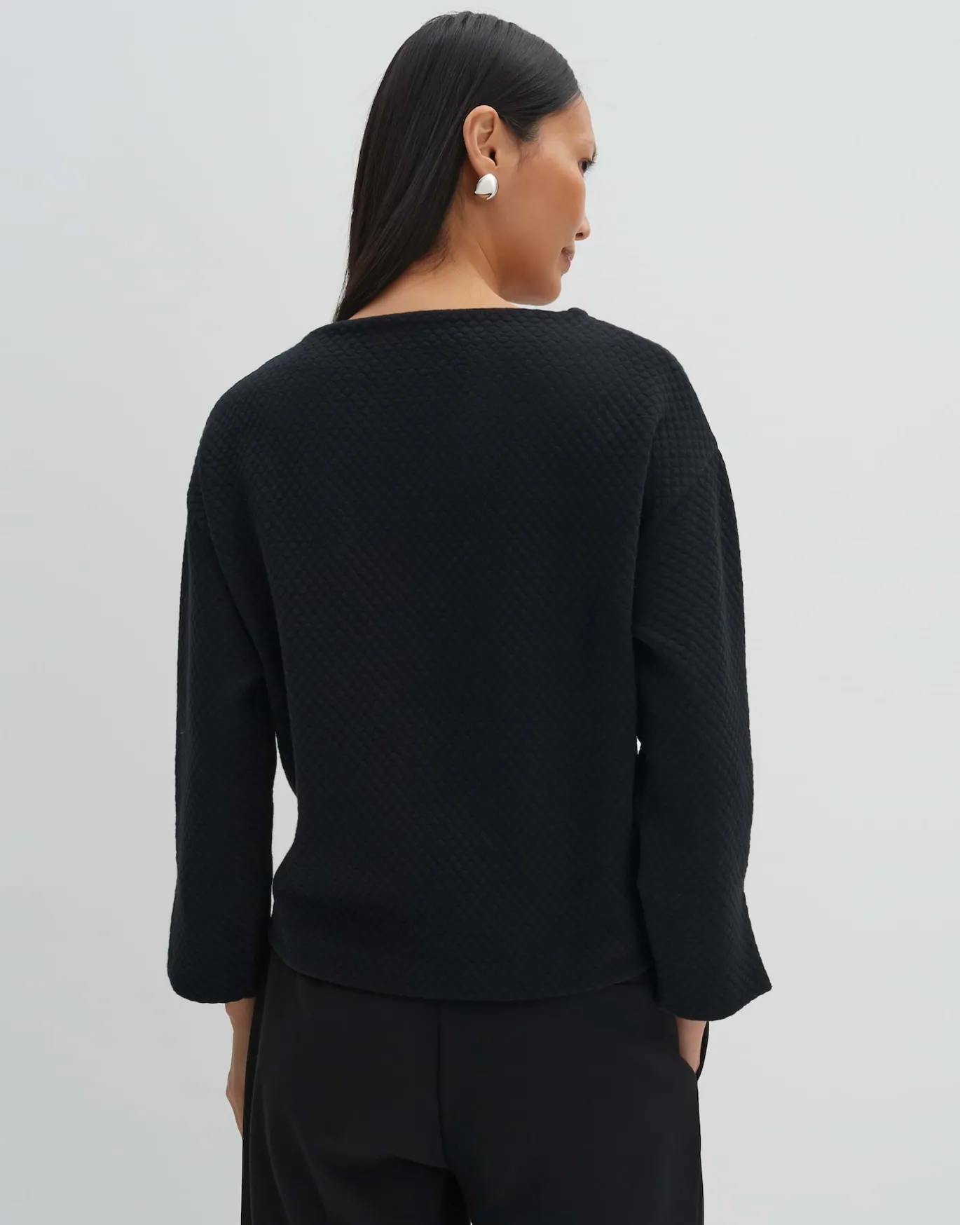 Der Sweater besticht mit dreidimensionaler Punkte Struktur, die mit der moderenen Formgebung harmoniert.