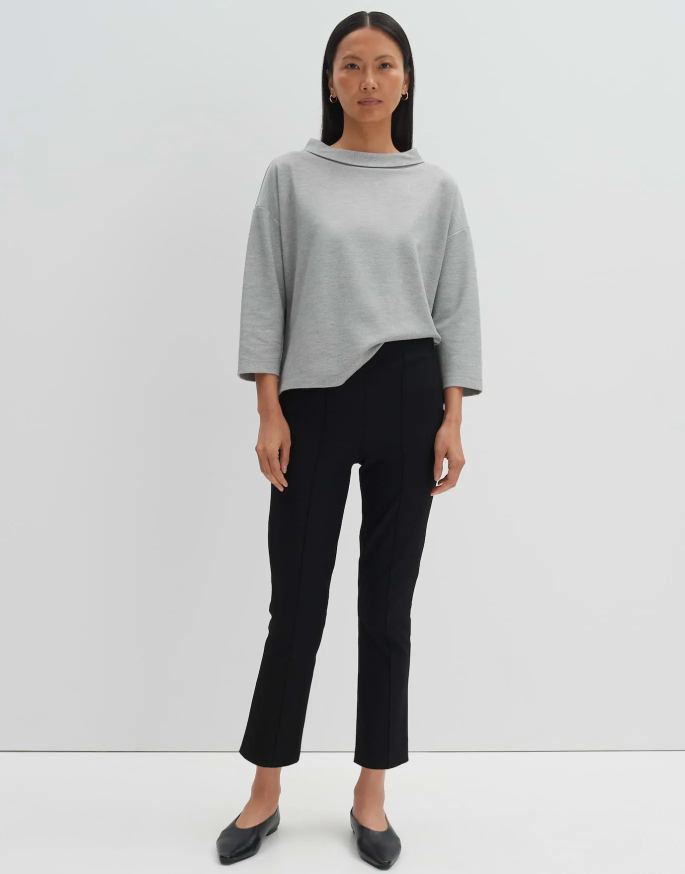 Der Sweater ist puristisch und modern gehalten und setzt den Fokus auf die lässige Passform mit dem elegantem Kragen.