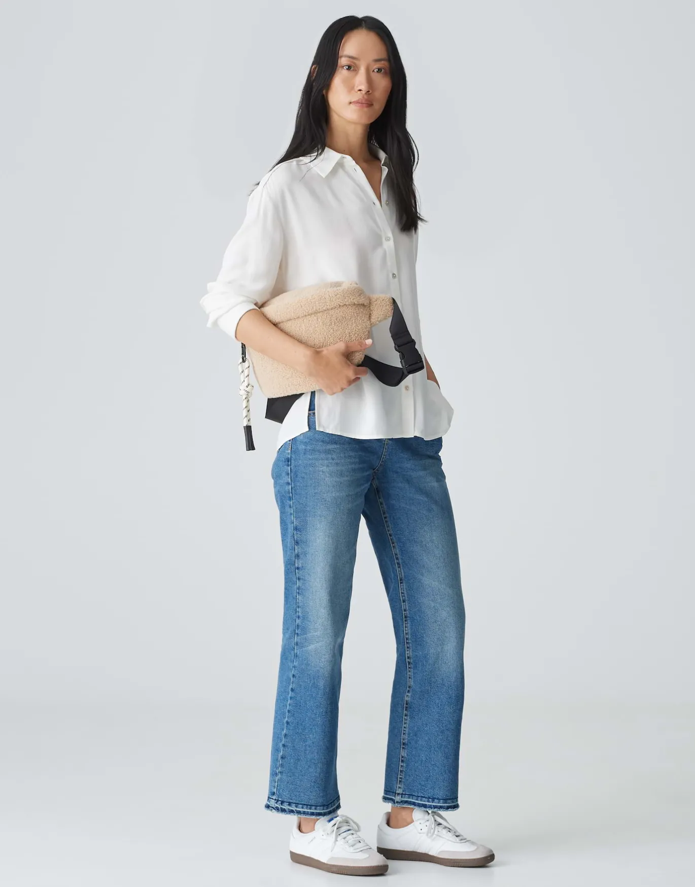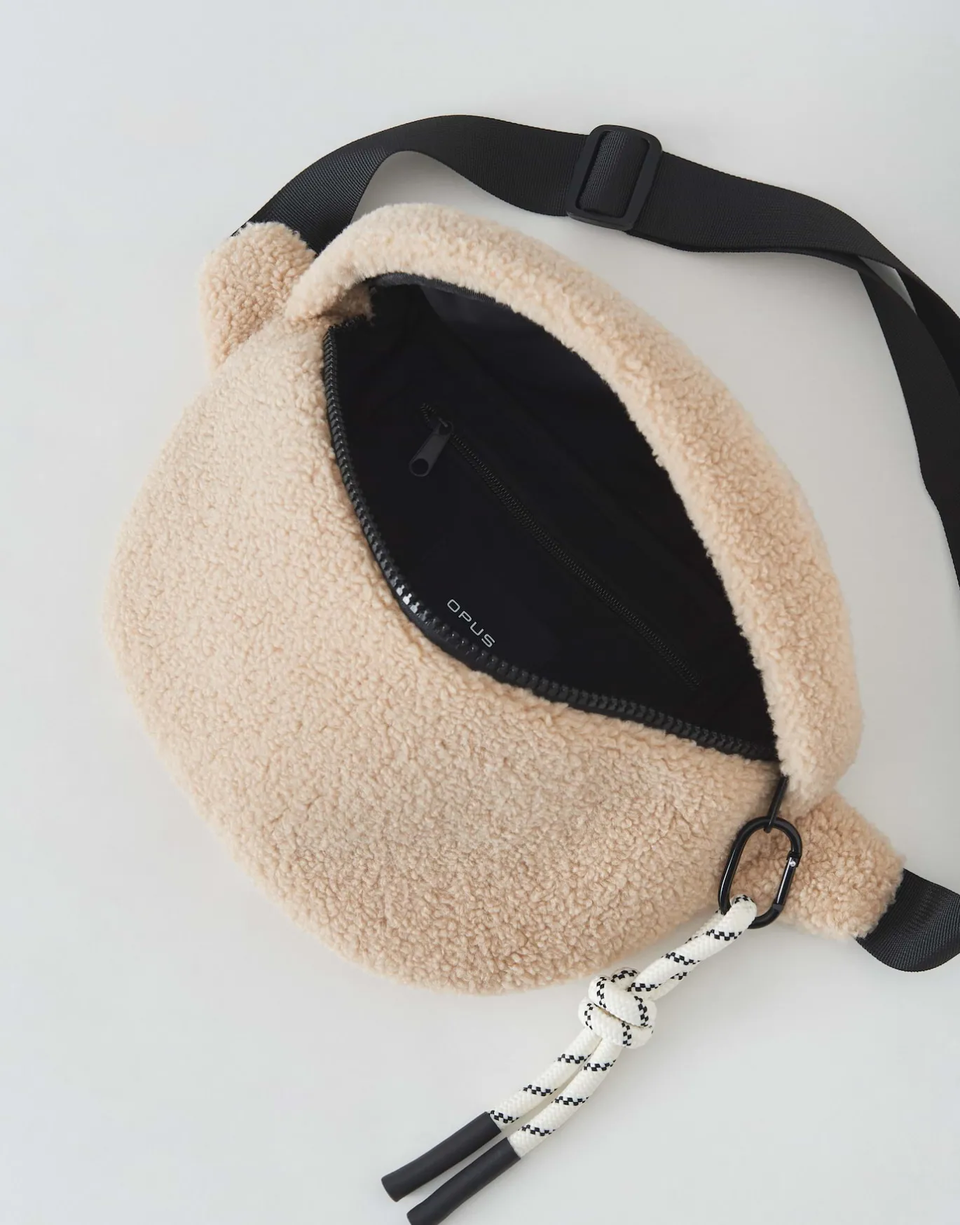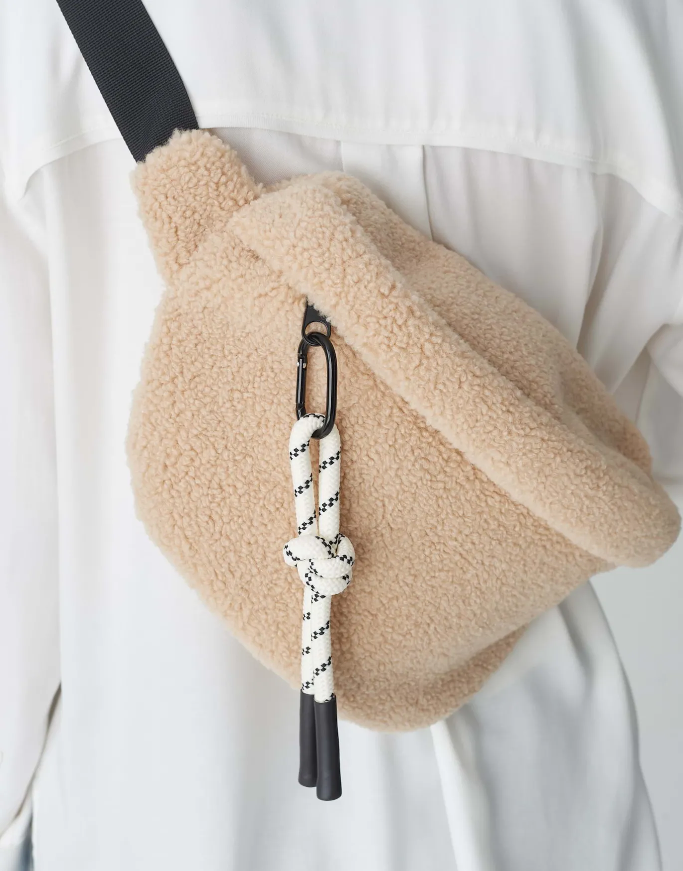 Die Gürteltasche aus einer kuscheligen Teddyware verfügt über ein modisches Detail, welches abnehmbar ist. Der Gurt i…