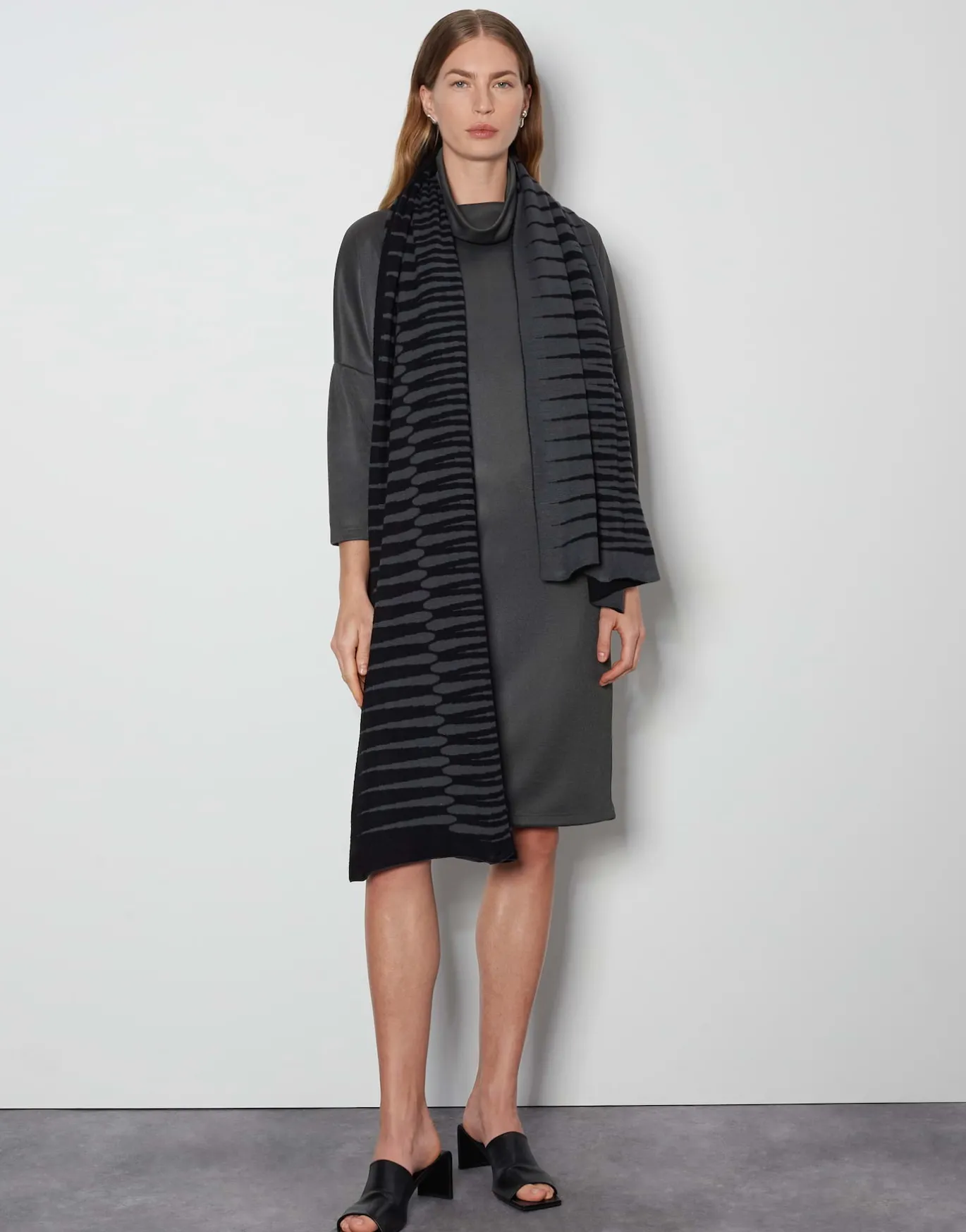 Dieser weiche Schal sorgt mit dem dynamischen Jacquard für einen aufregenden Look und wärmt im Winter angenehm.