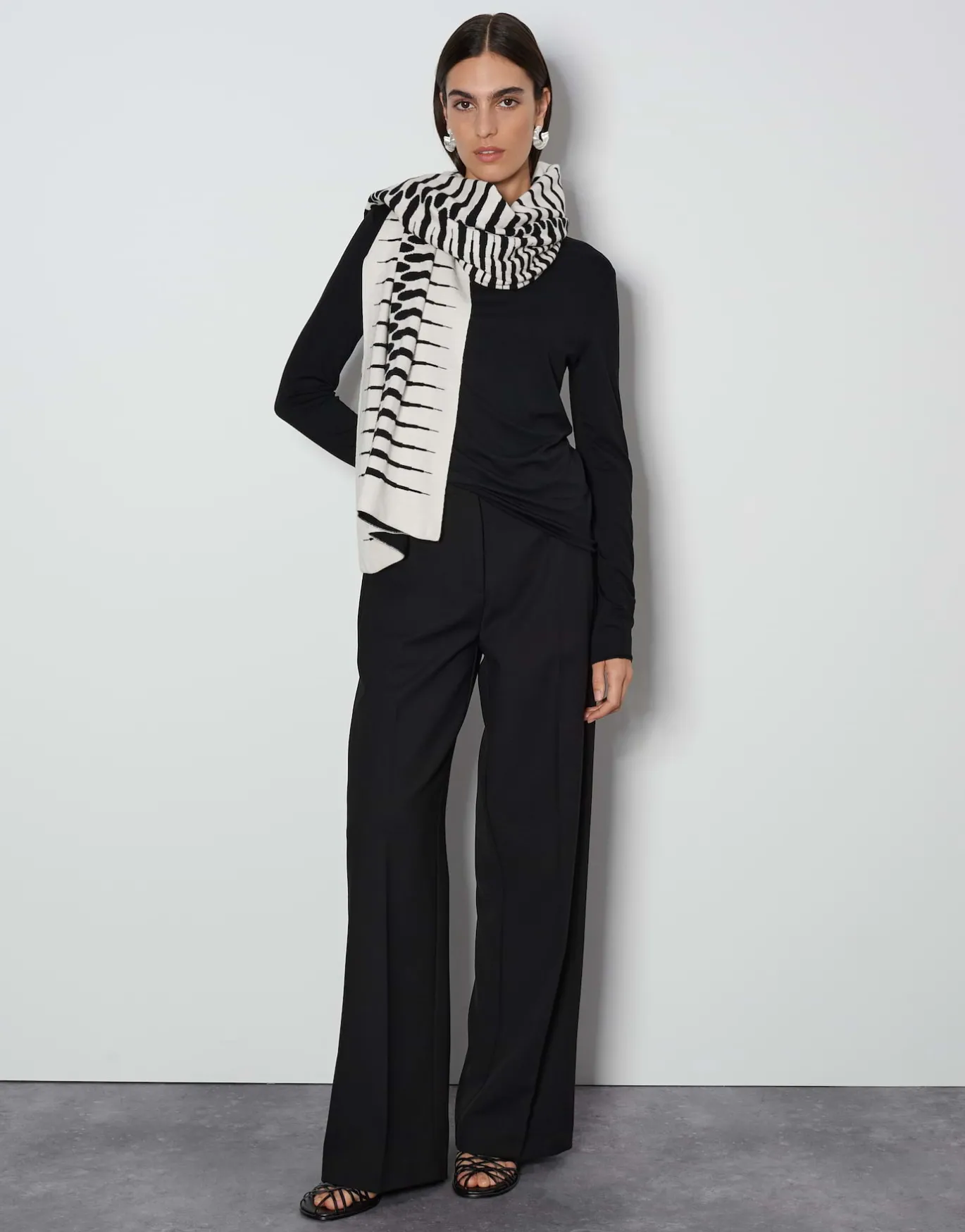 Dieser weiche Schal sorgt mit dem dynamischen Jacquard für einen aufregenden Look und wärmt im Winter angenehm.