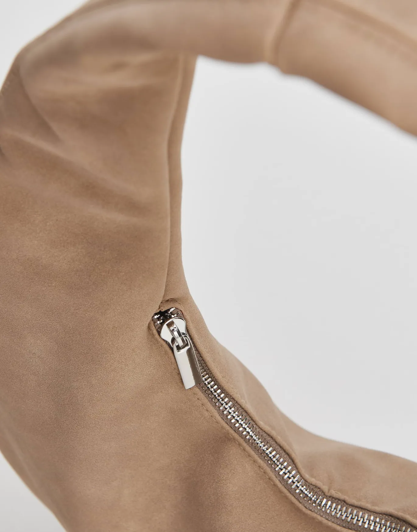 Der Shopper in Veloursleder Optik ist zeitlos und luxuriös und bietet durch den Reißverschluss eine sichere Verstaumöglichkeit der persönlichen Dinge.