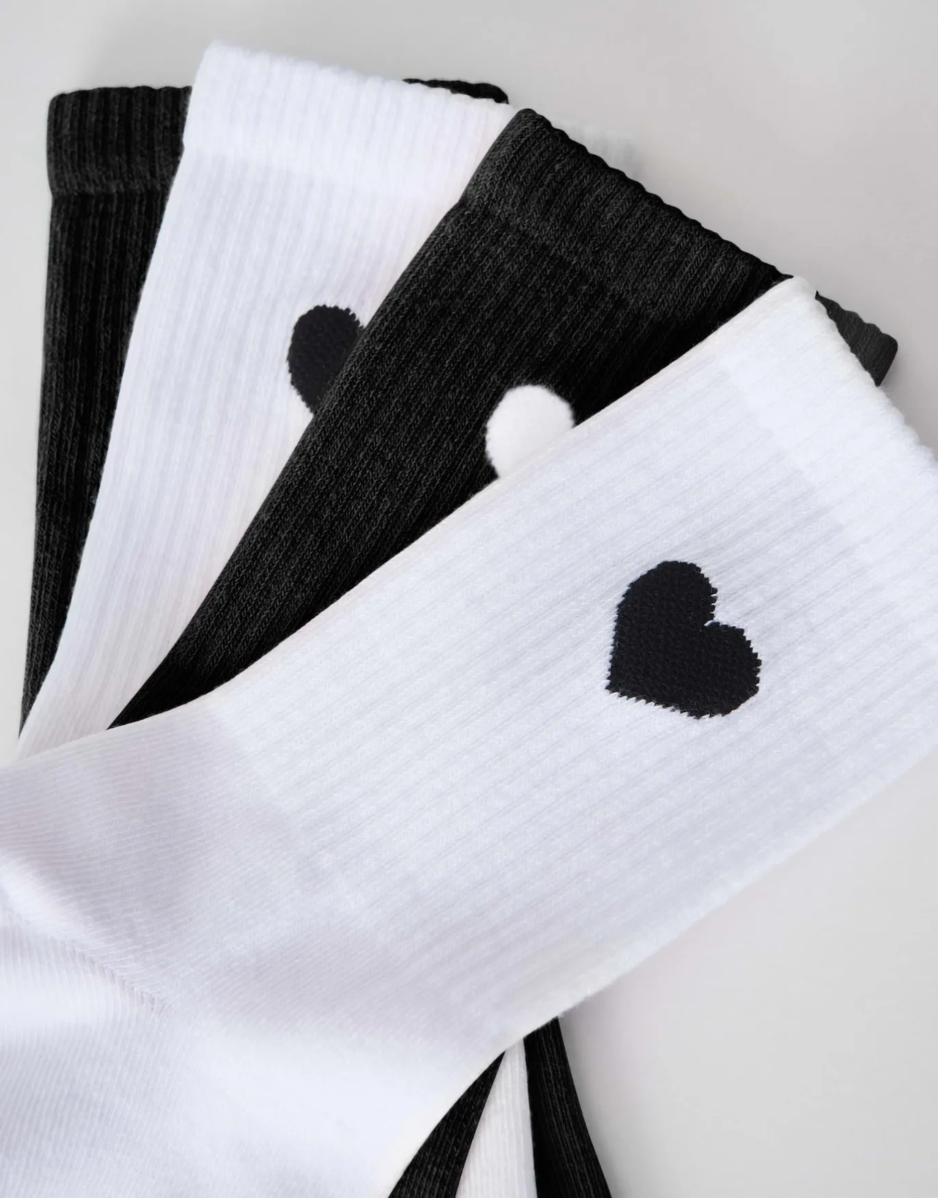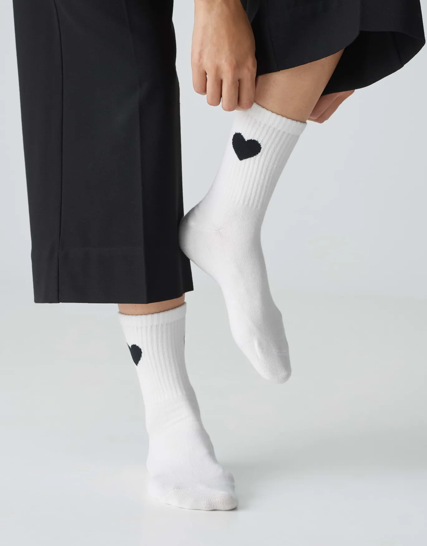 Die Socken kommen in einem coolen Retro Look daher und sind mit einer liebevollen Herzstickerei versehen. Der modische Tennis Look verleiht jedem Outfit einen sportiven Touch.