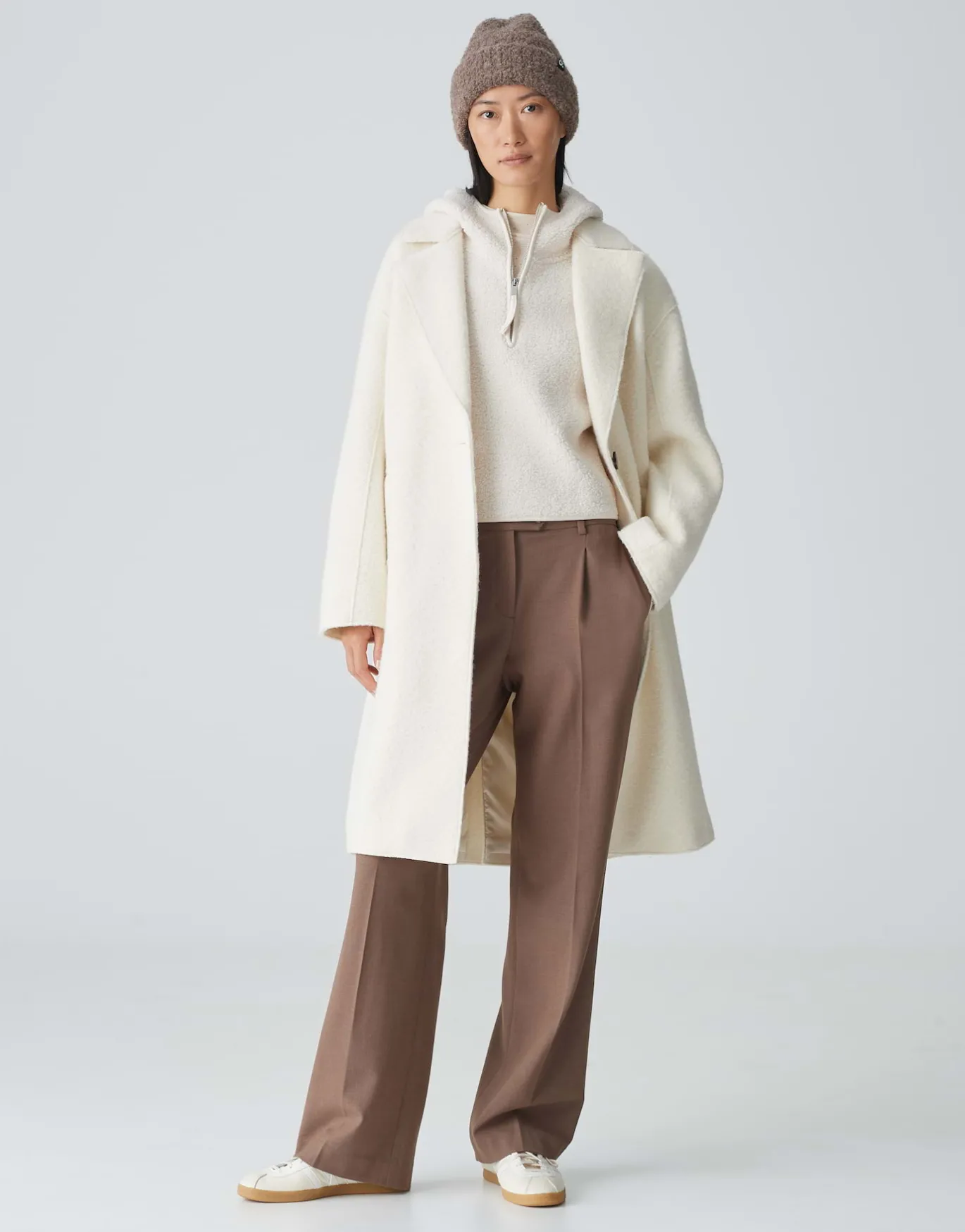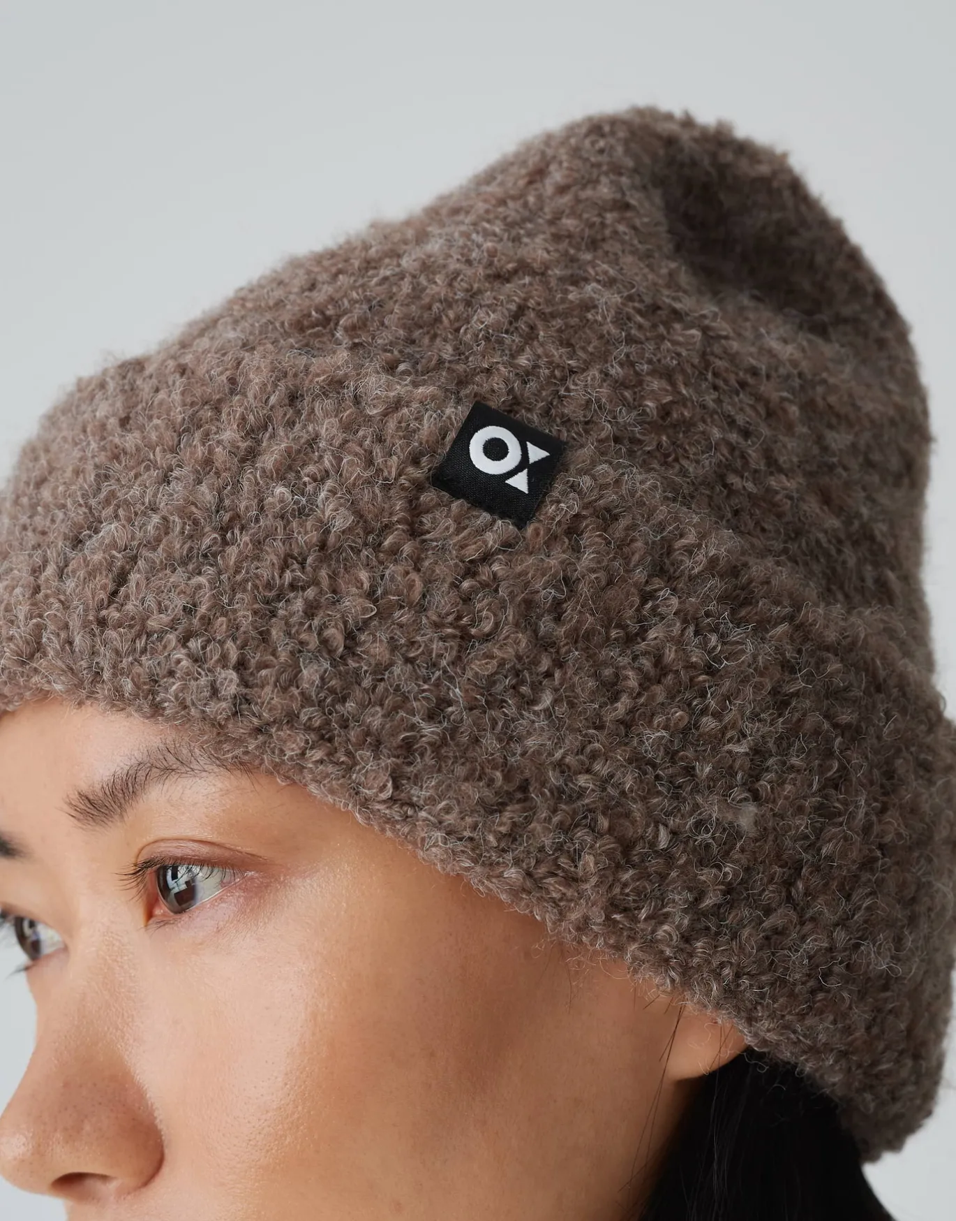 Die klassische Strickmütze erhält ihr modsiches Update durch die kuschelig weiche Teddy-Boulcé-Oberfläche und ist der perfekte Begleiter für kalte Tage.