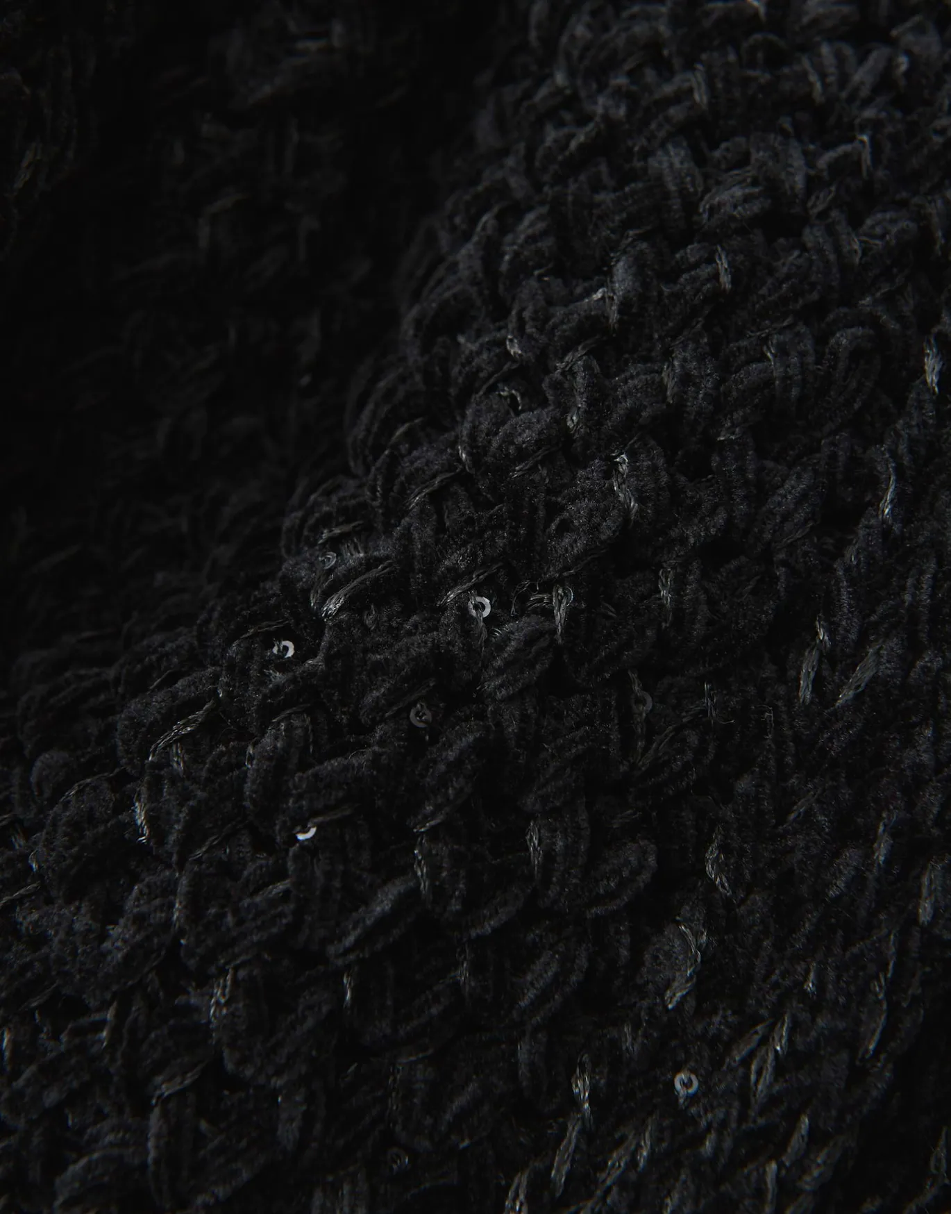 Der Schal mit dezenten Glitzer Details lässt sich super einfach in die Looks integrieren und sorgt mit der weichen Chenille Qualität für wohlige Momente.