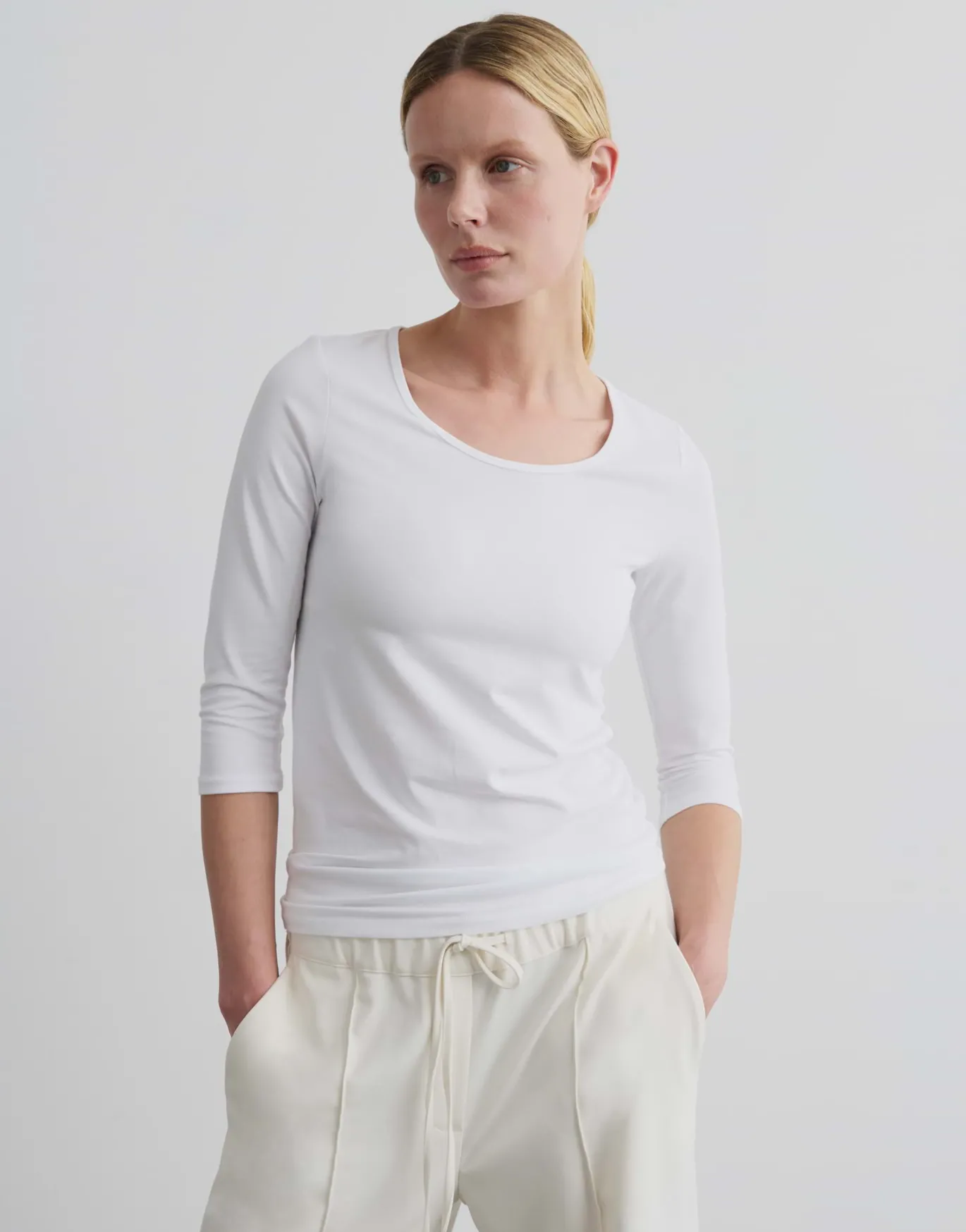 Ein vielfältiges Muss: das schlichte T-Shirt dient als praktische Grundlage für einen modischen und entspannten Look.