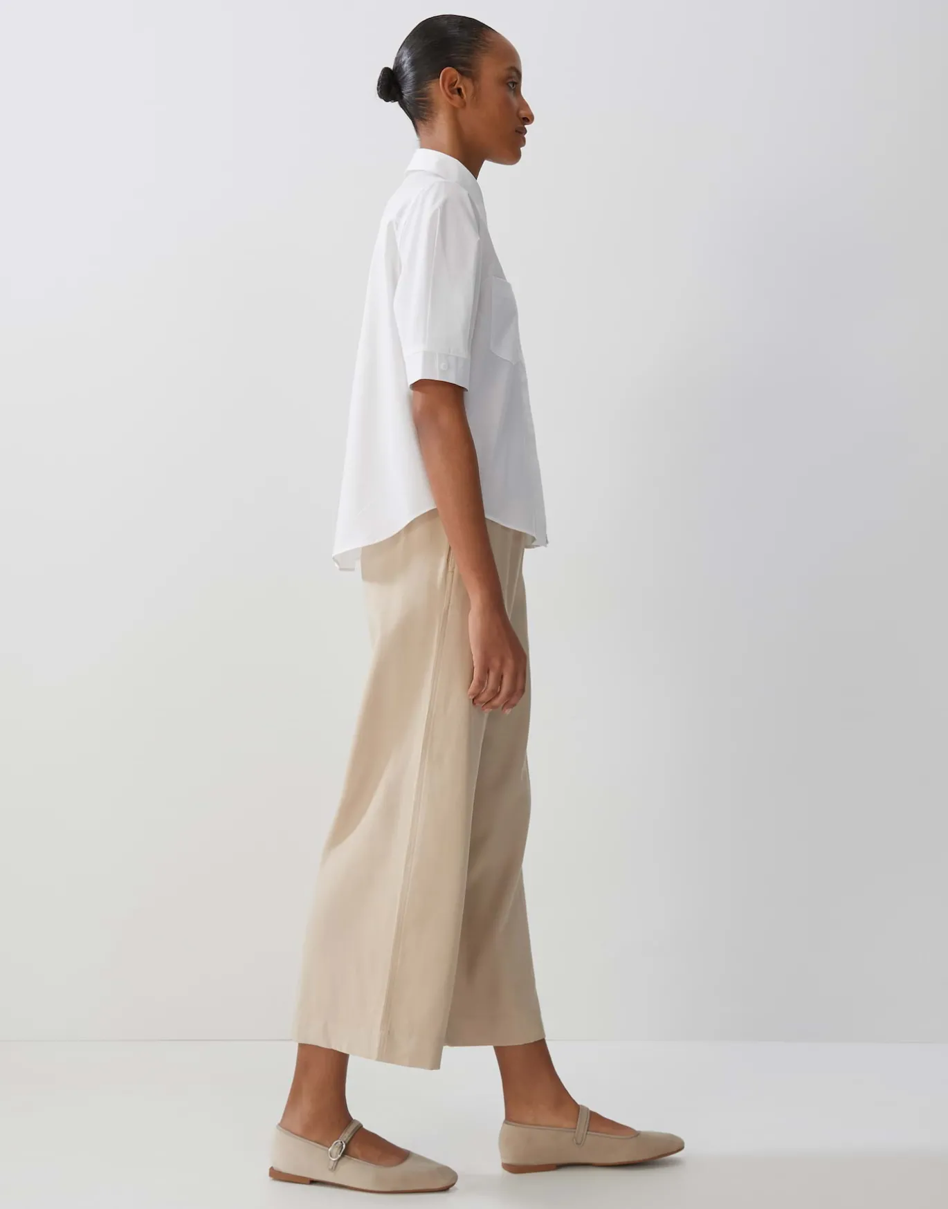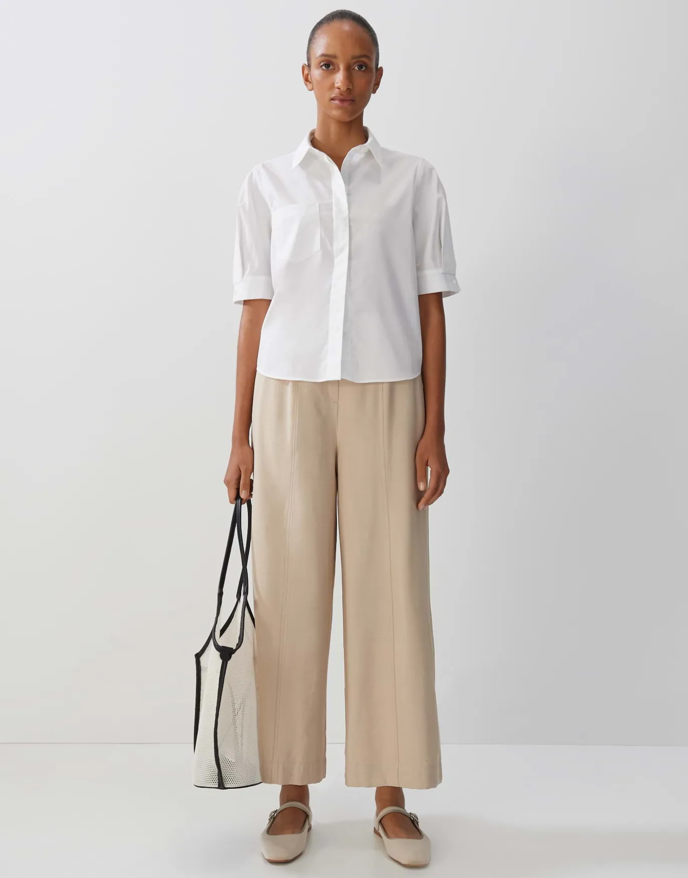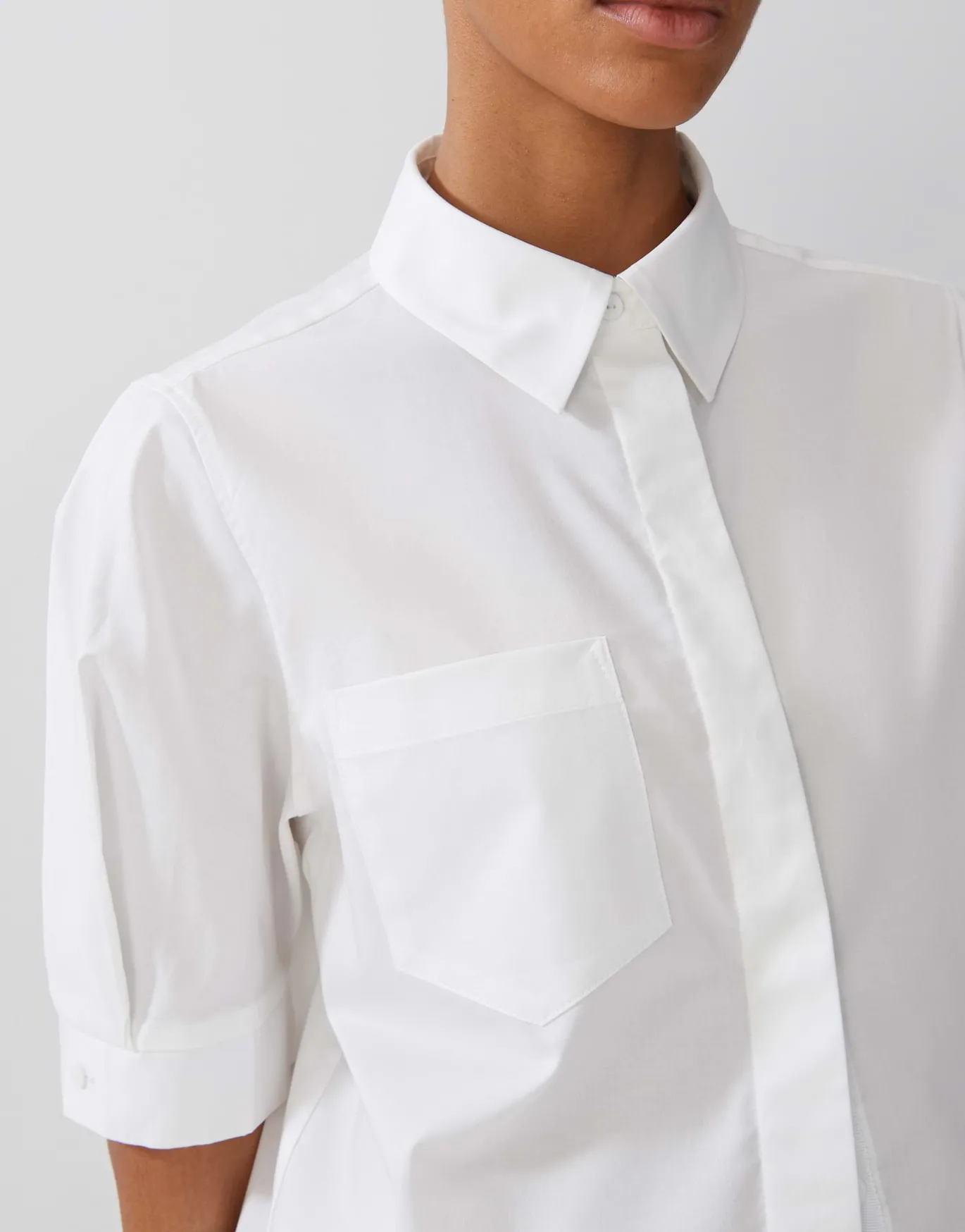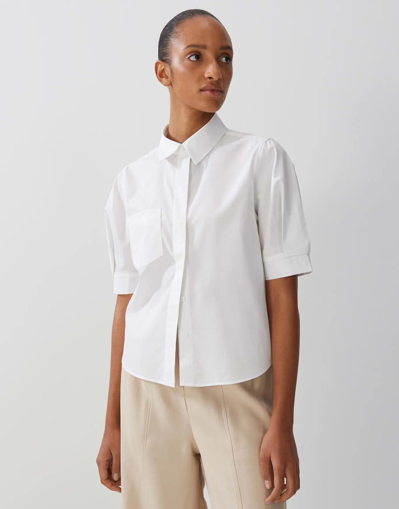 Die Hemdbluse bricht den klassischen Business Look mit einem voluminösen Armverlauf für einen tollen, femininen Touch.
