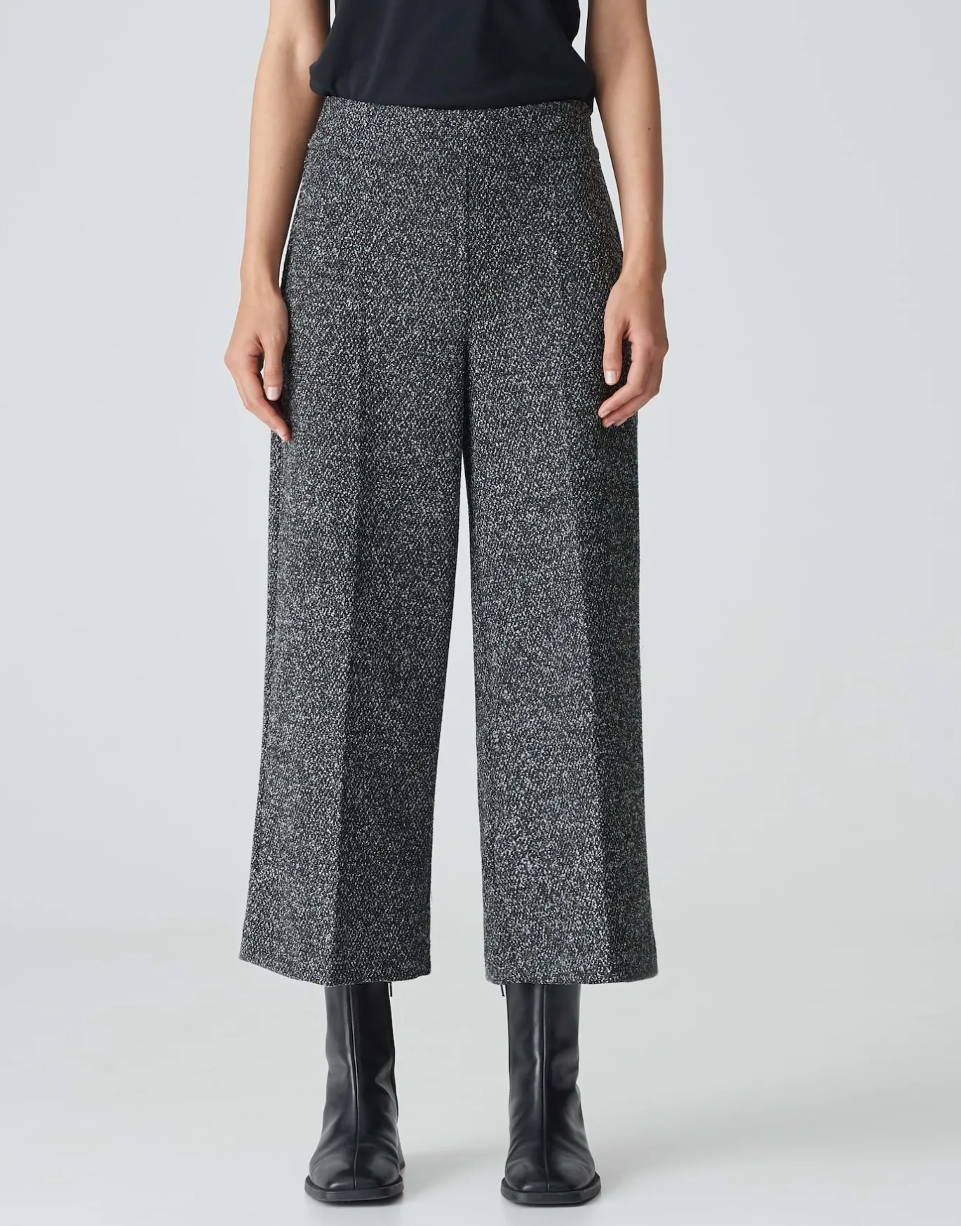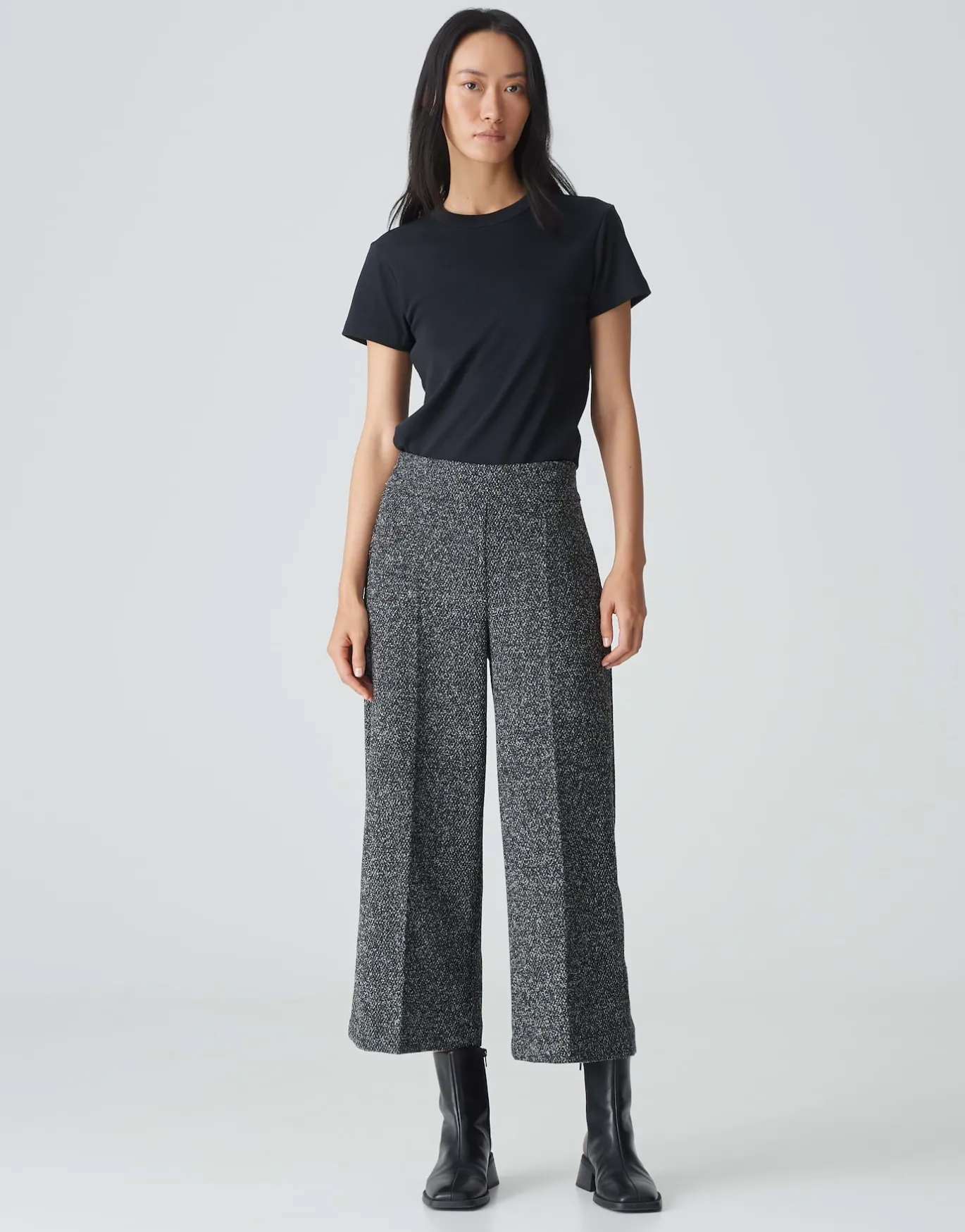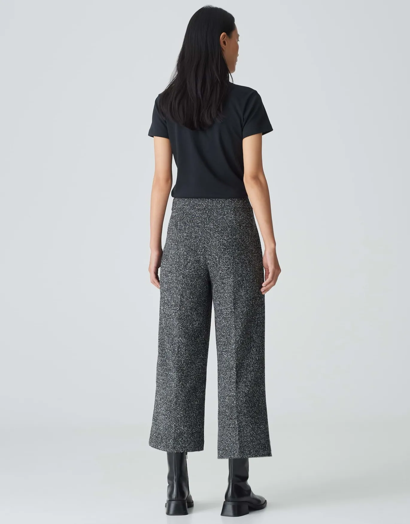 Die Culotte in klassischer Bouclé Optik kreiert mit der passenden Kurzjacke einen modernen Set Look.