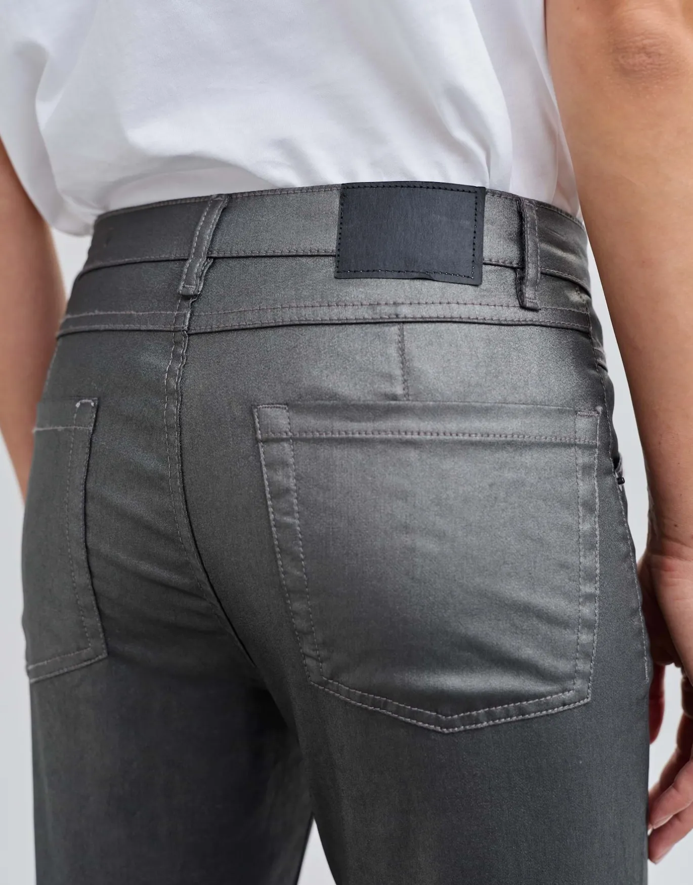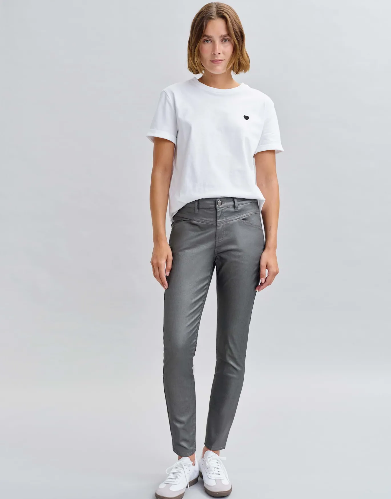 Die Slim Jeans mit der beschichteten Oberfläche kreiert einen eleganten Look ohne dabei an Komfort zu verlieren, Dank des angenehmen Stretch-Anteils.