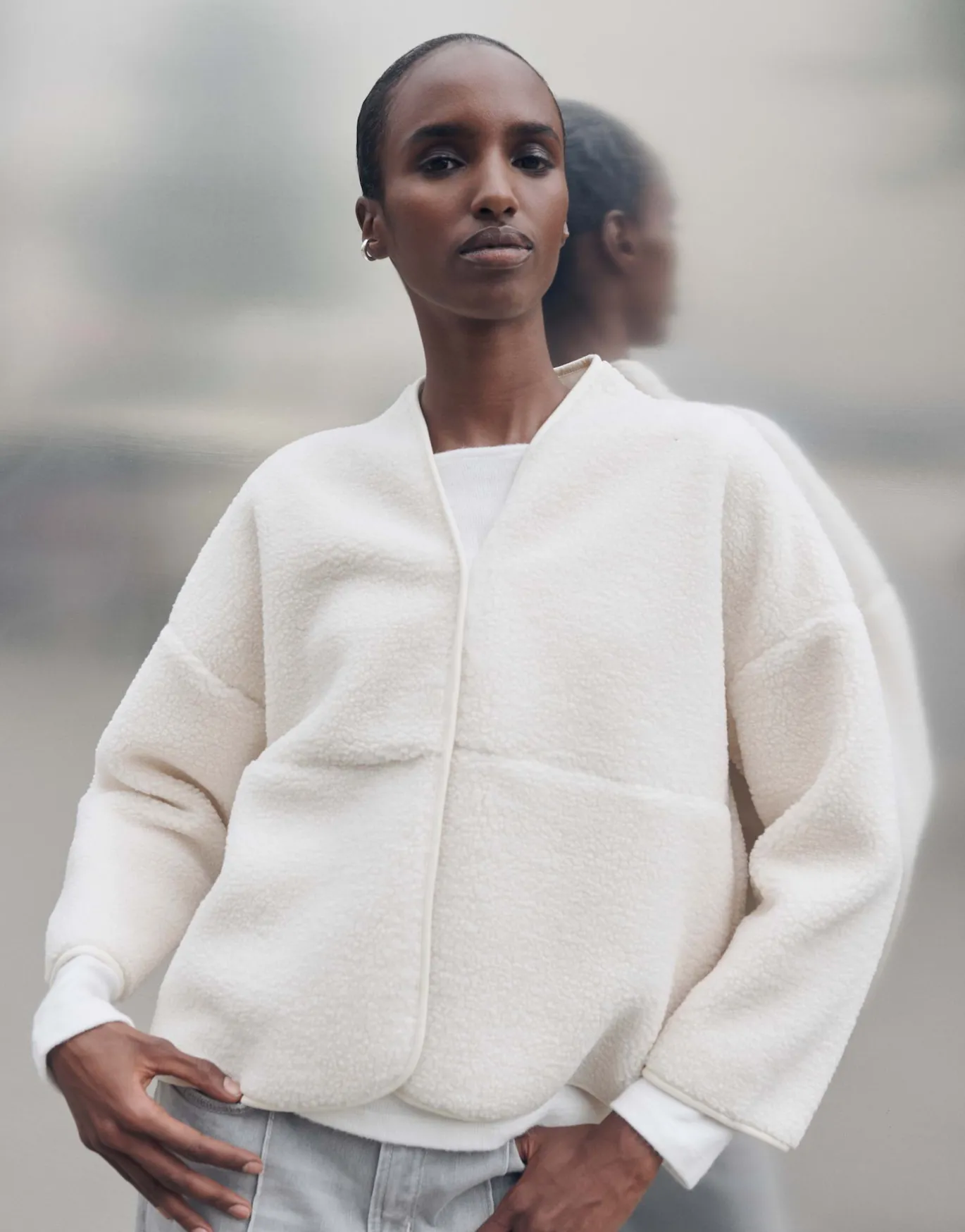 Die Jacke in authentischer Lammfell Optik kann zugeknöpft oder lässig geöffnet getragen werden und sorgt für einen modischen Layering Look.