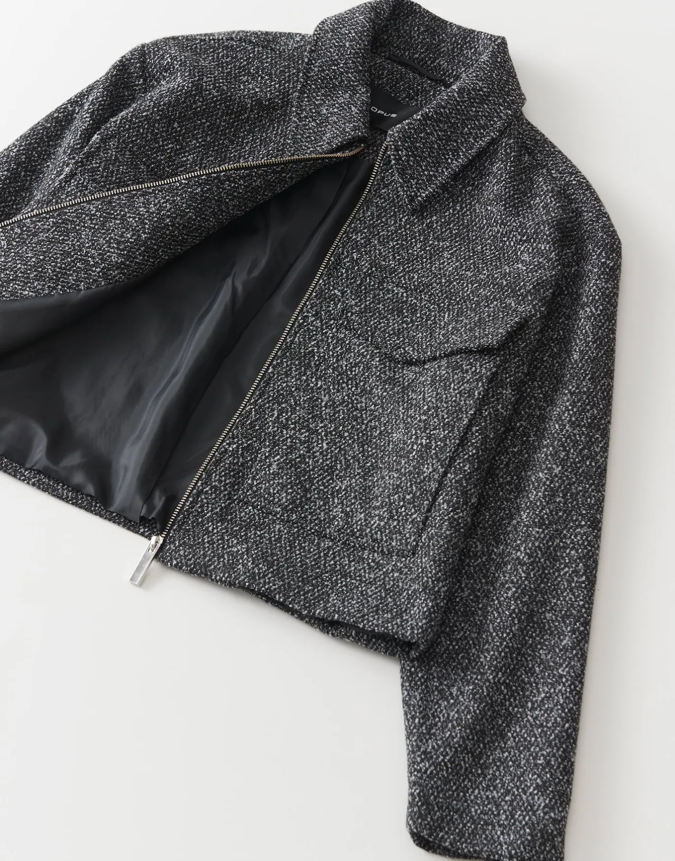 Die Kurzjacke in einer harmonischen Bouclé-Optik versprüht klassischen Flair und wird durch die aufgesetzten Pattentaschen aufgelockert – perfekt tragbar für Indoor als auch Outdoor.