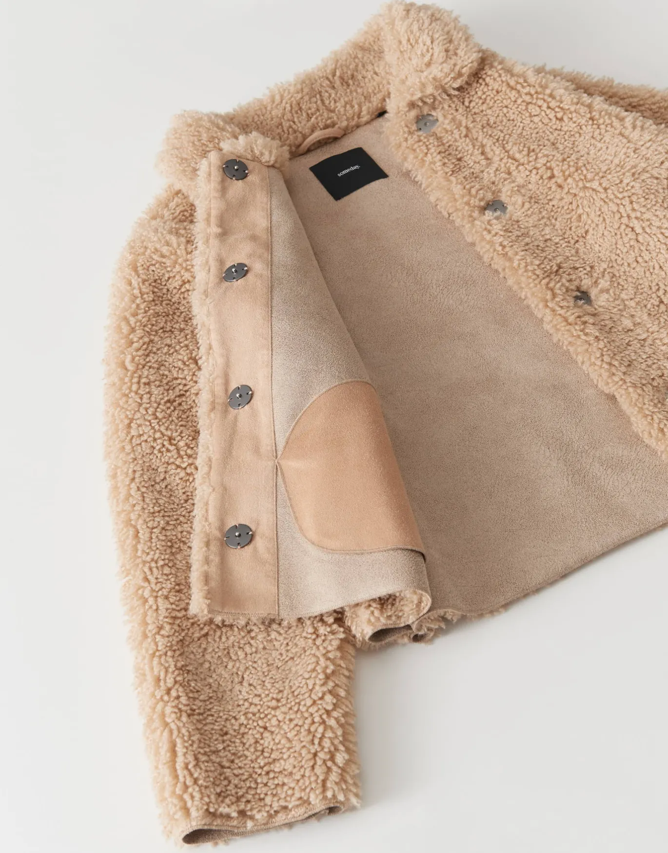Die Kurzjacke ist kuschelweich und edel zugleich und setzt auf eine gelockte Lammfell Optik.