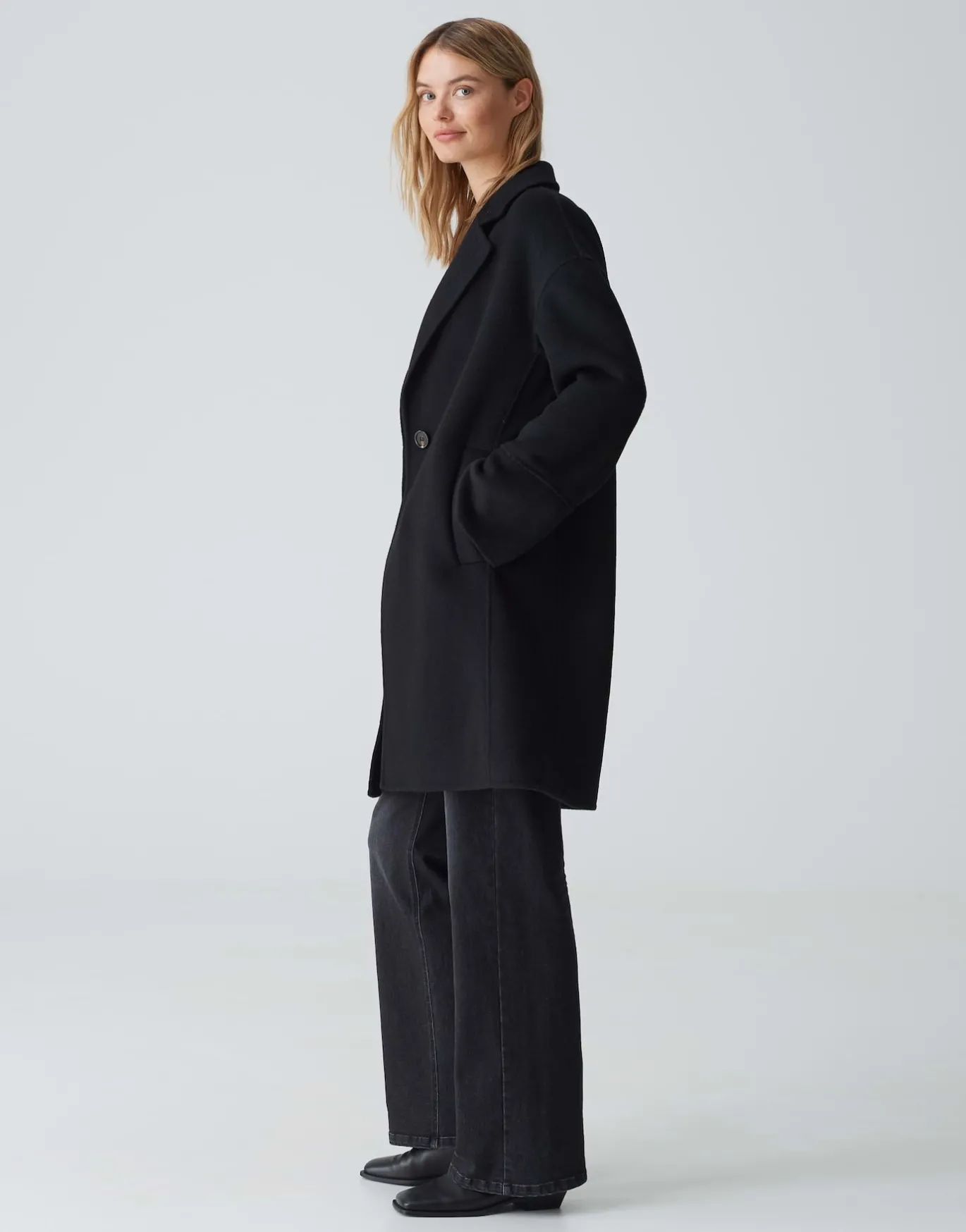 Mit diesem modischen Wollmantel kommst du gut durch die Übergangszeit. Durch seine kuschelige Textur, sowohl innen als auch außen, wärmt der Mantel an kühlen Tagen.