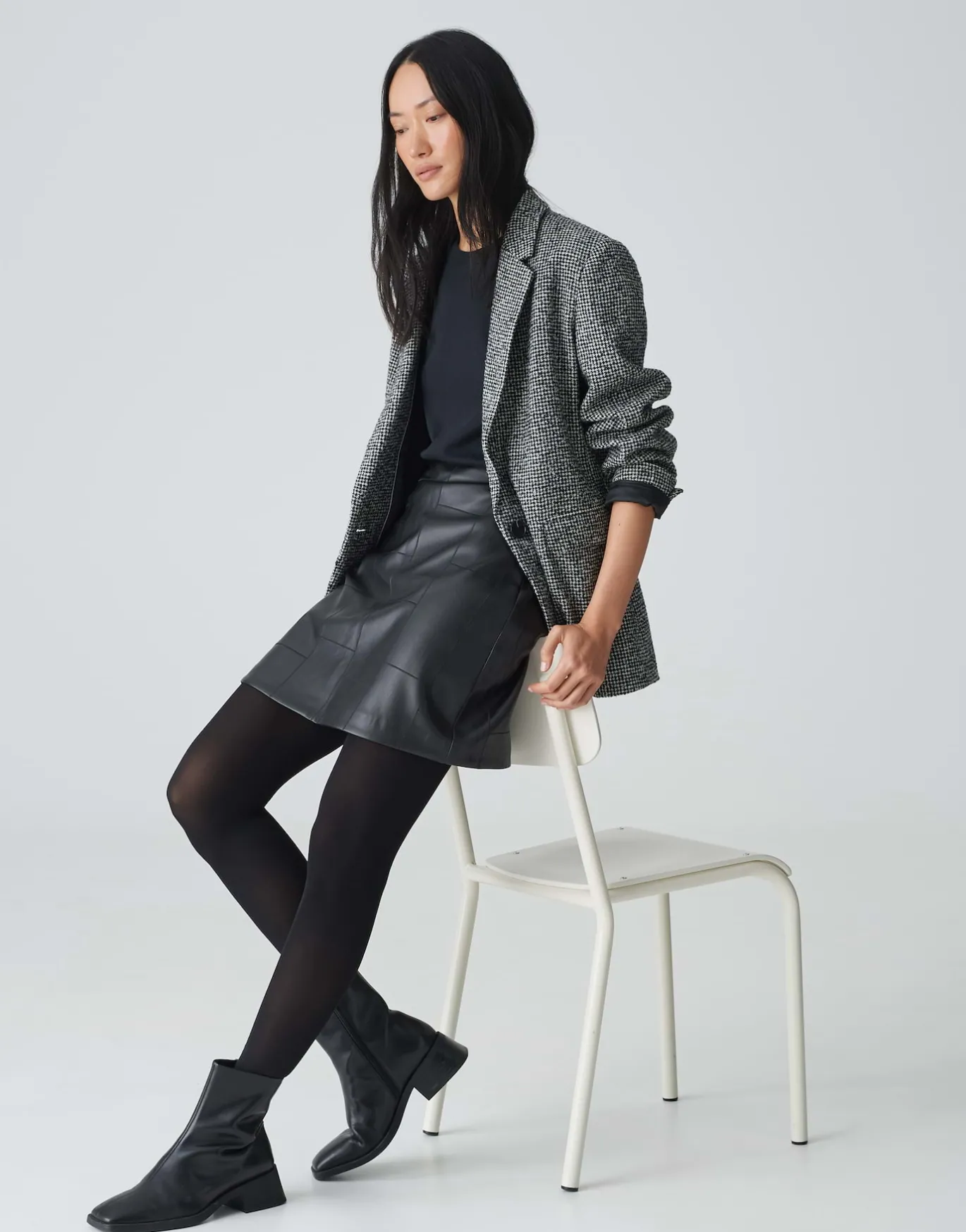 Miniröcke wie dieser erfreuen sich großer Beliebtheit. Durch die Leder Optik mit der Patchwork-Struktur in der Oberfläche erhält der Rock einen coolen und kernigen Look.