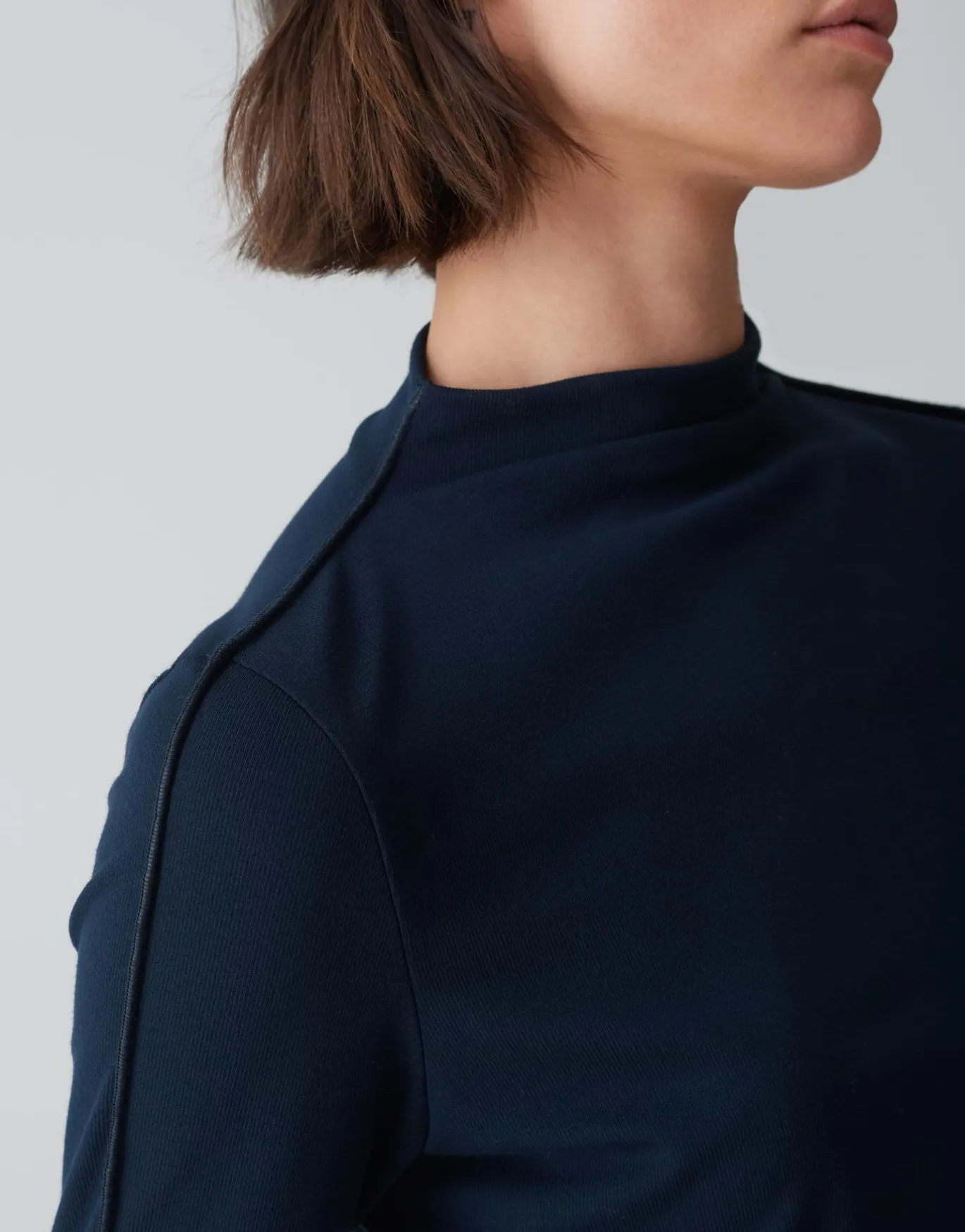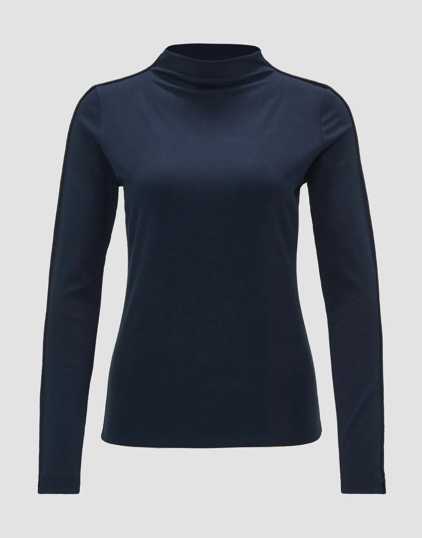 Der körpernahe Shirt beeindruckt mit einer weichen, elastischen Feinrippe und entpuppt als perfekter Unterzieher für herbstliche Lagenlooks.